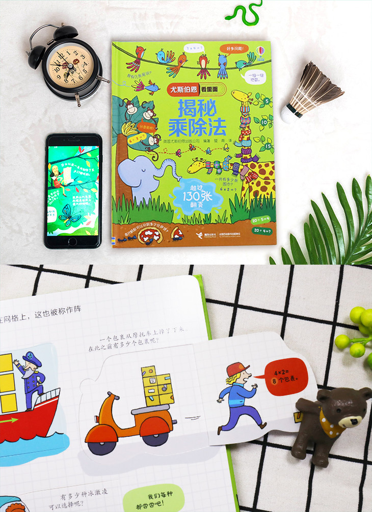 尤斯伯恩看里面的翻页、折页设计,打破了静态的图书呈现模式,让小读者在阅读中能够保持新鲜感和不断探索的兴趣,复杂的内容、深刻的内容也不再那么枯燥,而且使得书页上直观呈现的内容和翻页下的内容形成一种对比、反差,因此事物变化的时间感、历史感、变迁感也变得清晰起来,阅读也不再是一味沉浸在平面的状态里。