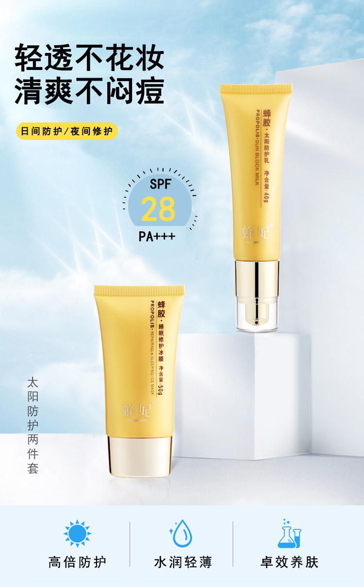 蜂妃太阳防护2件套 乳液冰膜日晒修护 男女护肤套装 官方正品