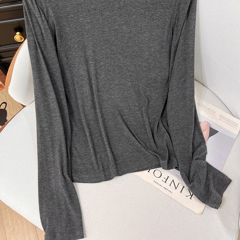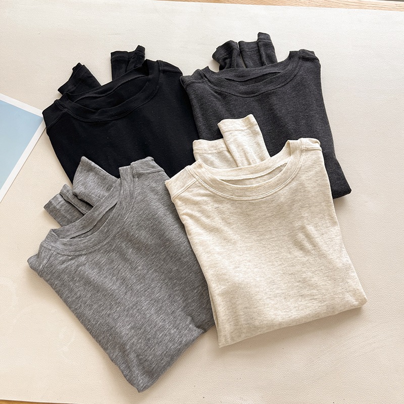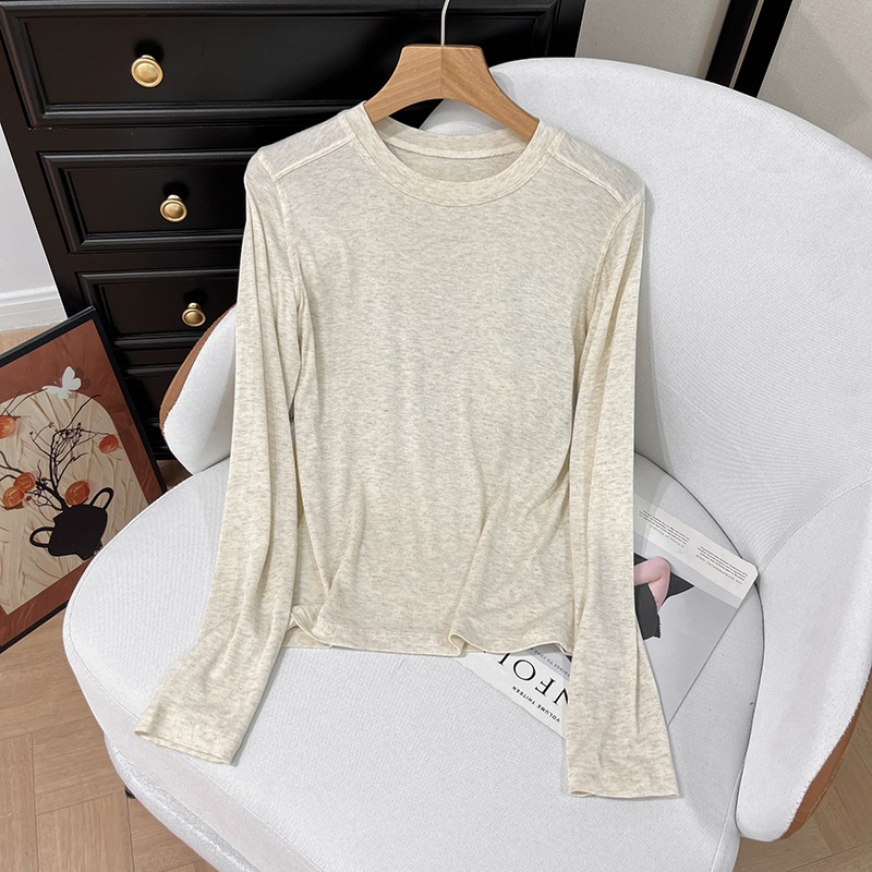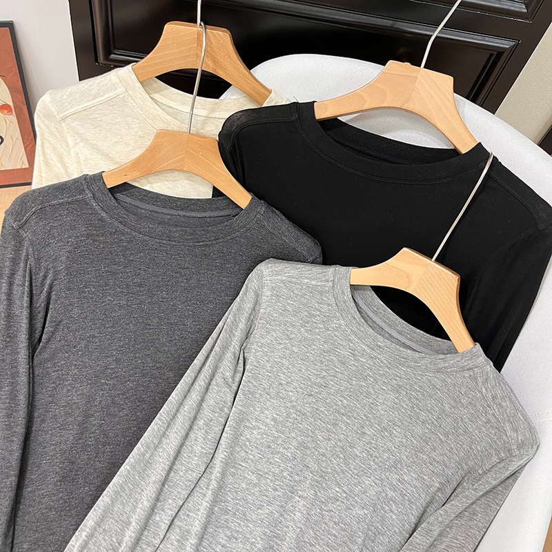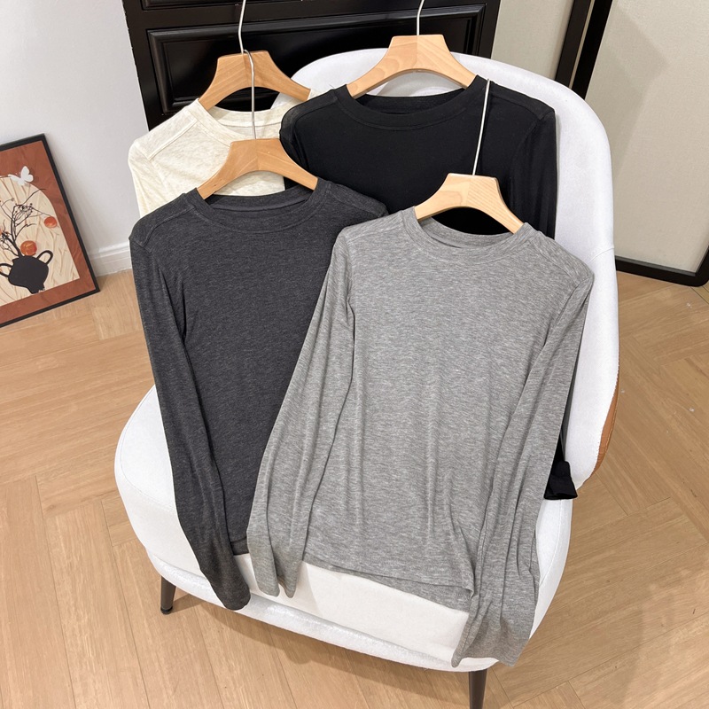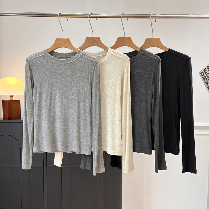 舒服到尖叫!2025山羊绒混纺秋季高弹力圆领亲肤女式长袖打底衫!