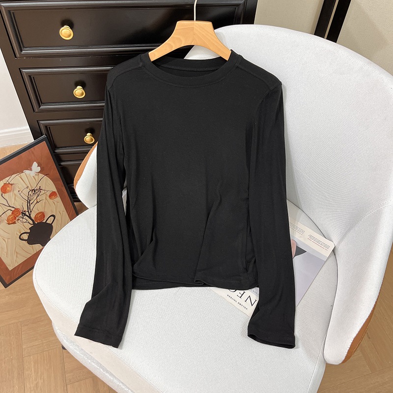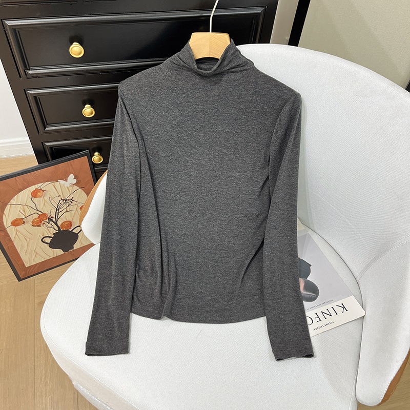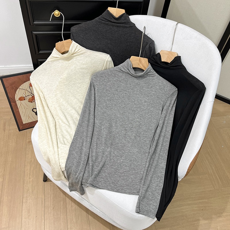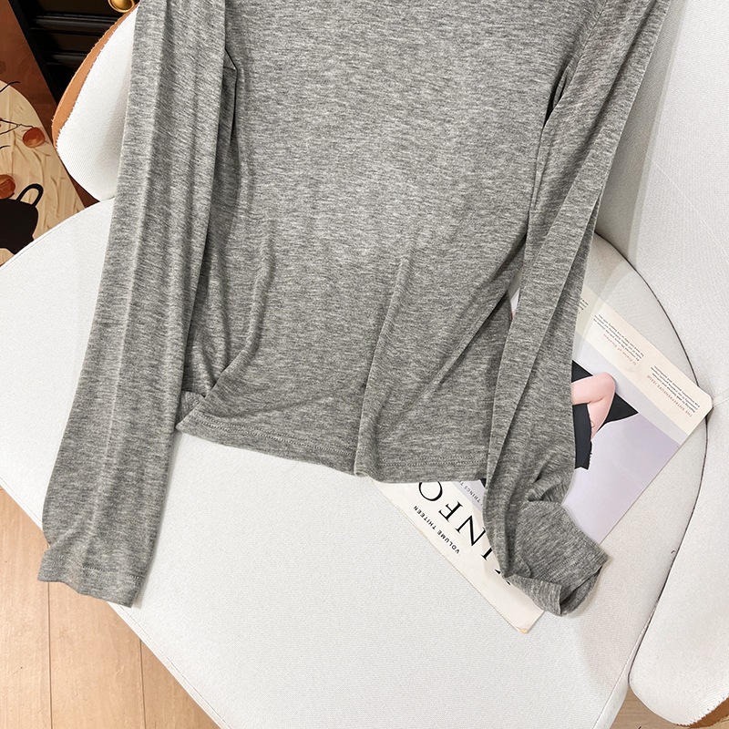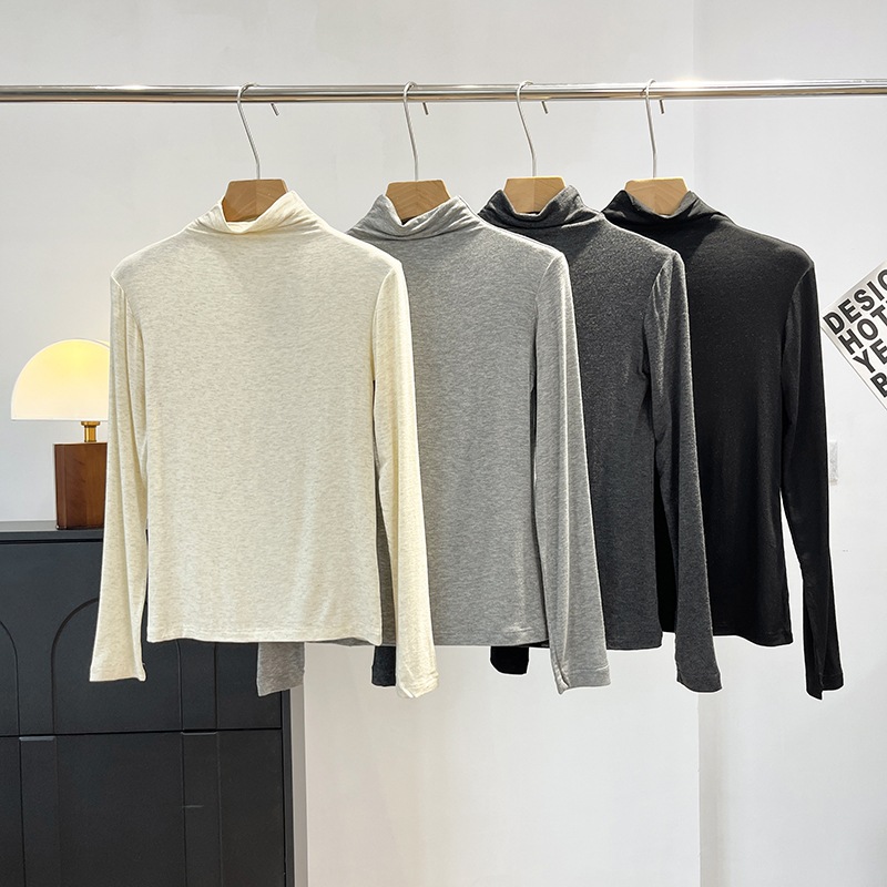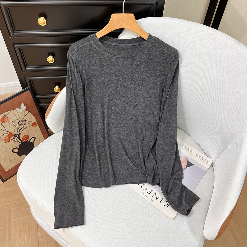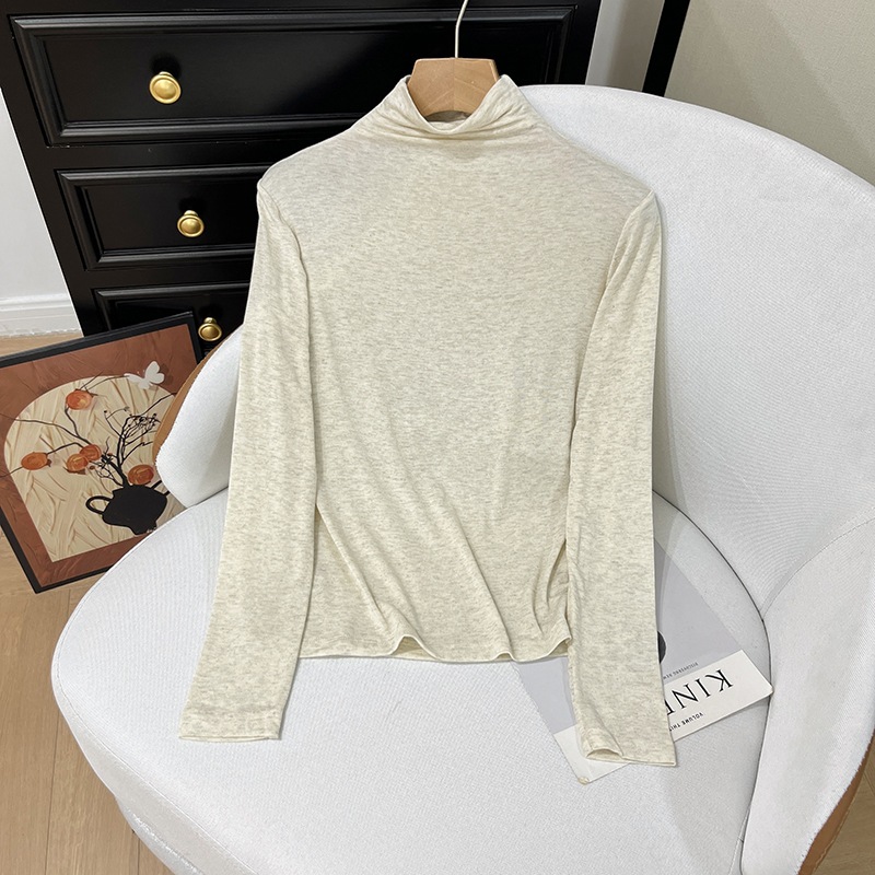 舒服到尖叫!2025山羊绒混纺秋季高弹力圆领亲肤女式长袖打底衫!