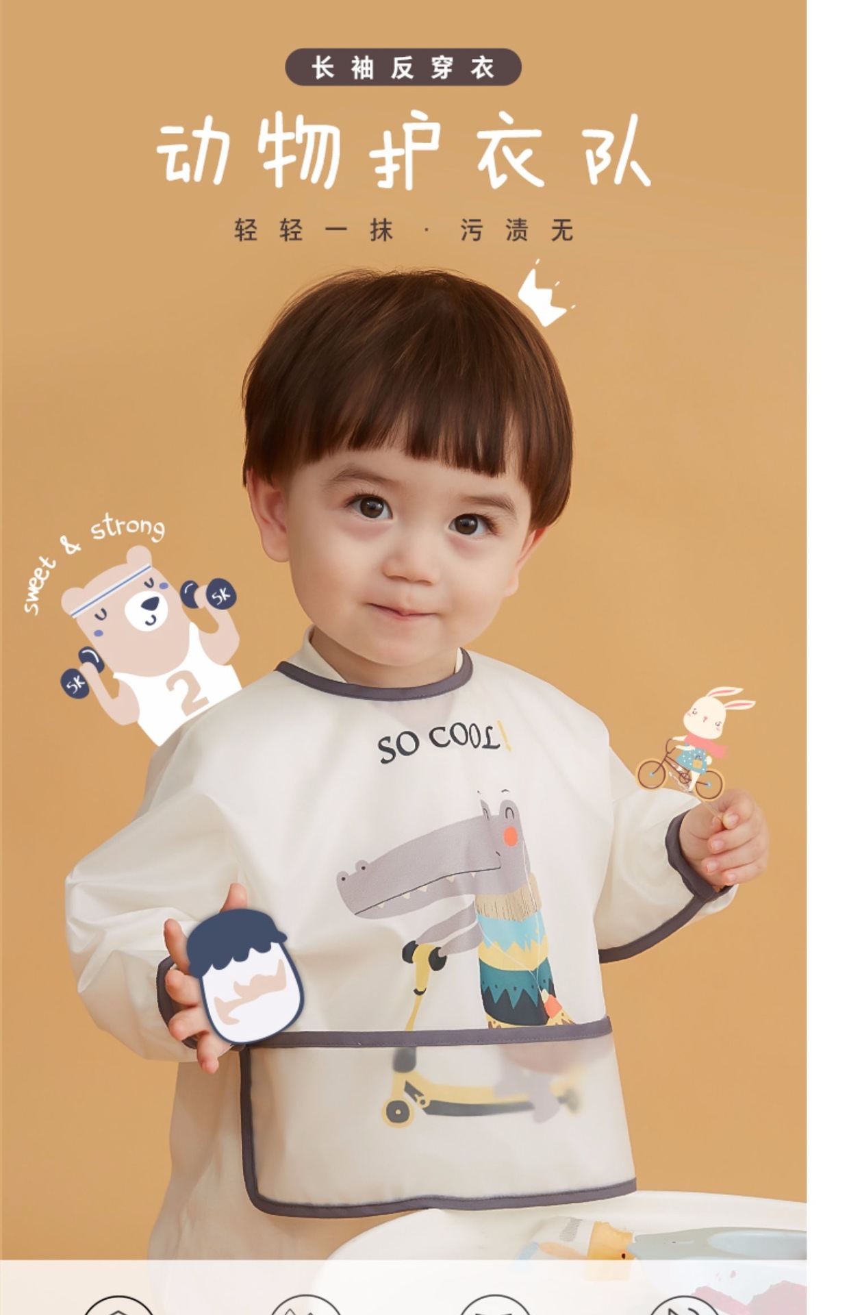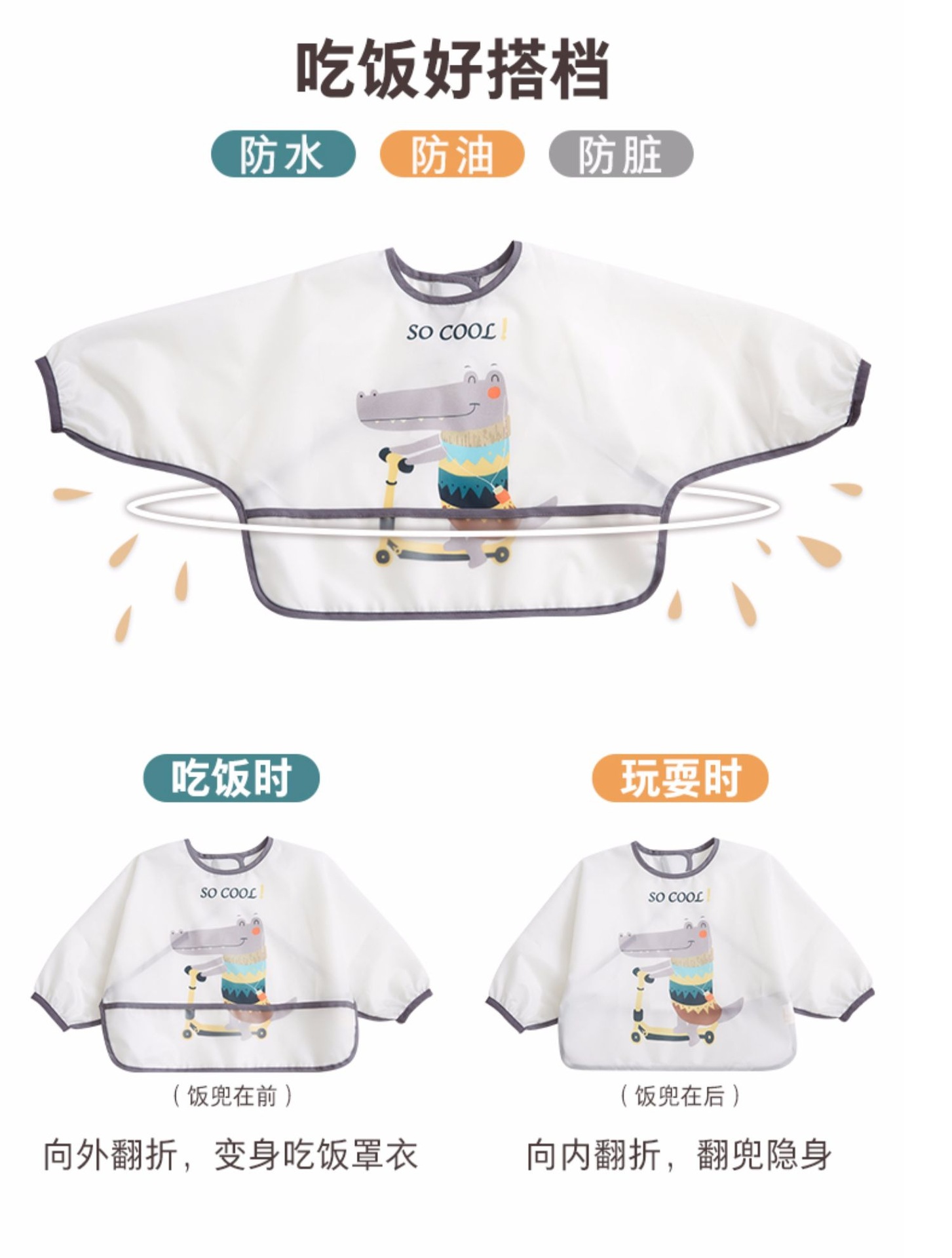 【全身防水罩衣宝宝 吃饭好搭档】反穿衣罩衣儿童反穿衣罩衫婴幼儿吃饭衣画画罩衣