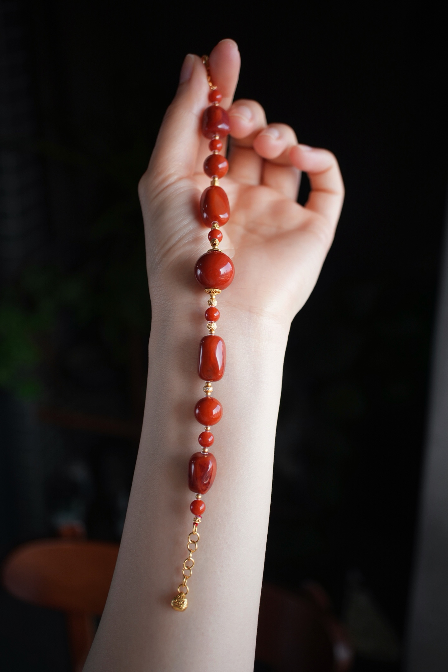 天然川料火焰红,色泽妖艳明亮,火焰纹纹理清晰,肉质细腻饱满且上手盘玩度舒适顺滑,不同形状大小的珠珠,一整个就是大珠小珠落玉盘的错落感😍。