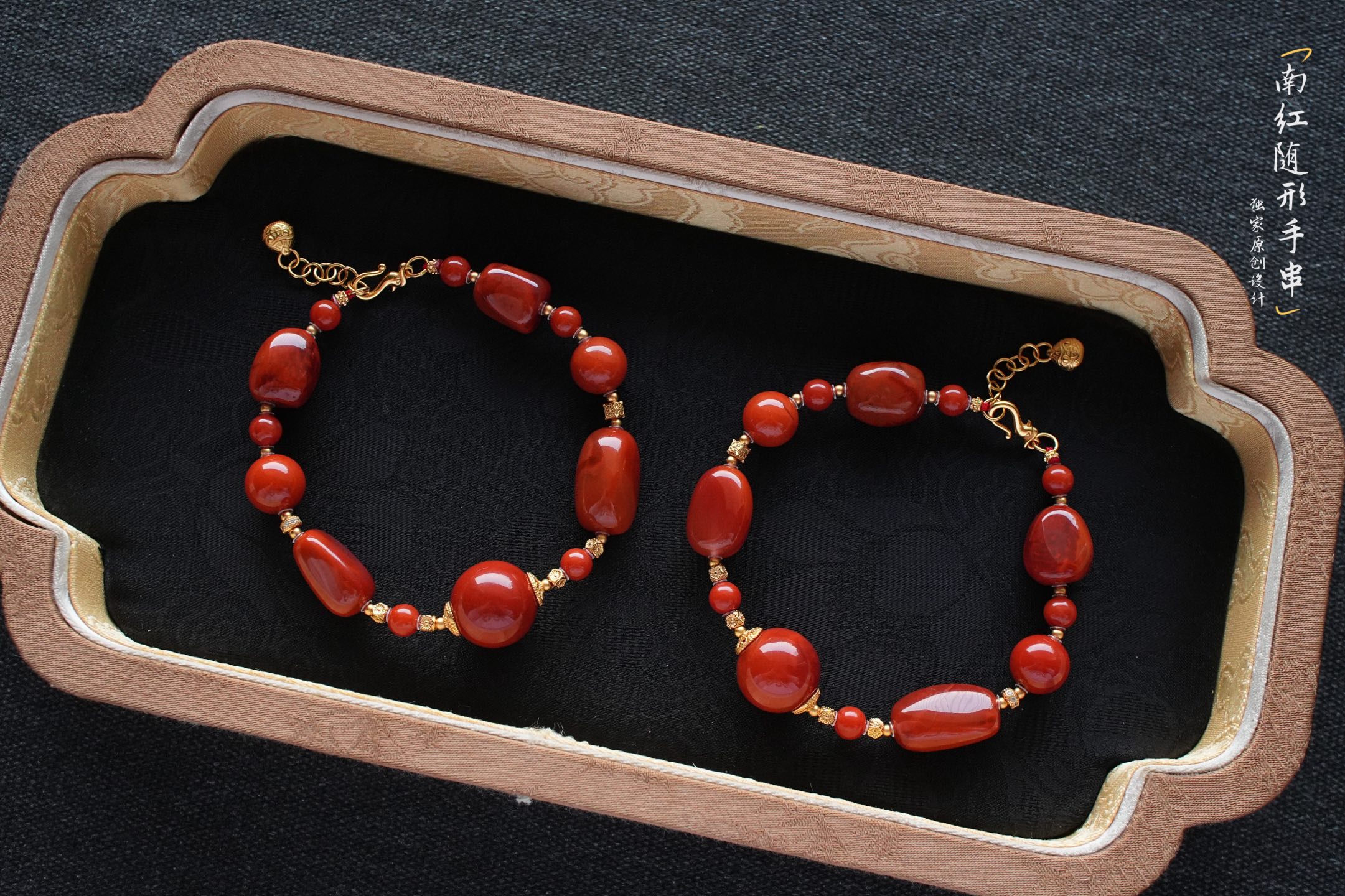 原创设计-川料火焰红南红随形手串