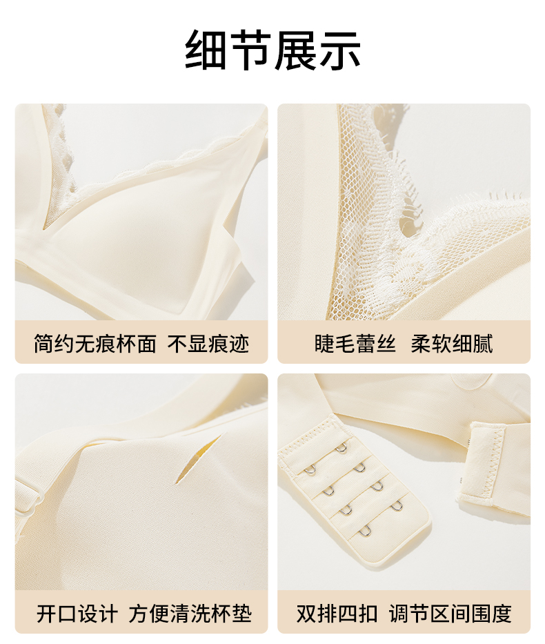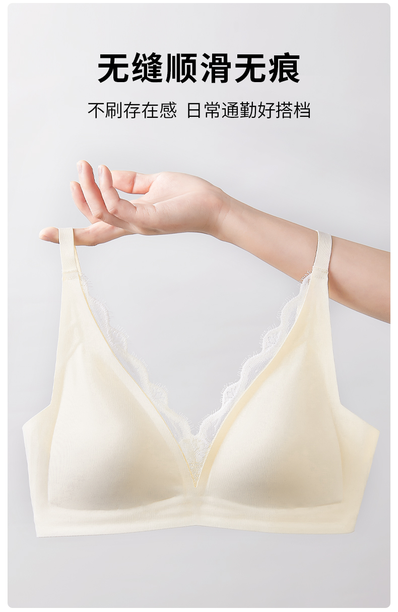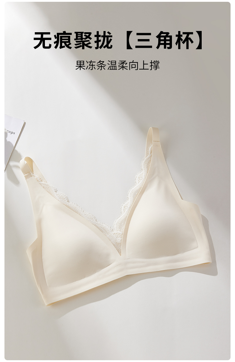 雅黛丽内衣女小胸薄款无痕透气文胸无钢圈一片式法式三角杯胸罩女