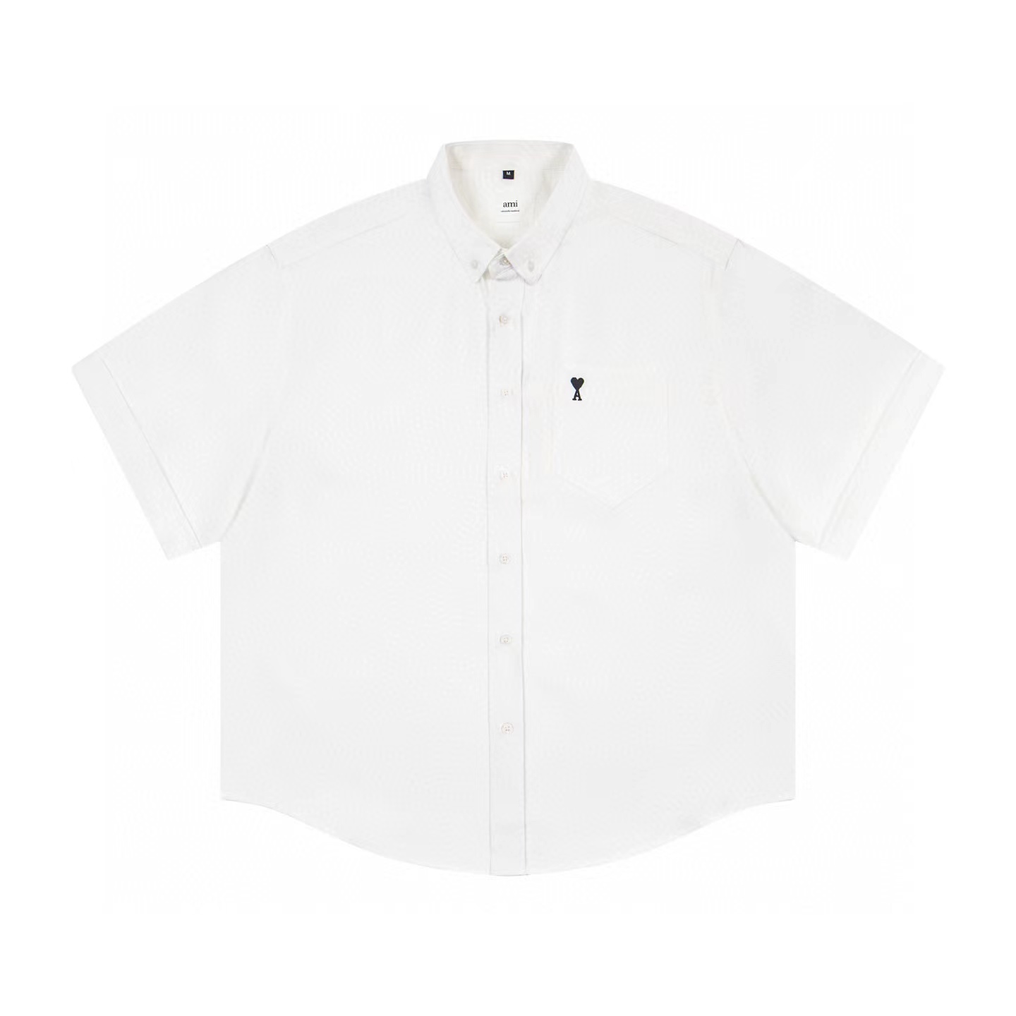 口袋小爱心刺绣单排扣翻领情侣短袖衬衫,采用客供纯棉面料材质 成衣预缩水洗 亲肤舒适 翻领开合纽扣设计 内里走线做工大厂品质 细节到位爱心logo采用进口田岛机器万针制作 抓住整件衬衫出彩的元素 精密饱满不留白 剪裁 任何身材都显瘦的友好版型 可衬衫可内搭当外套 适合情侣搭配每一季的成衣除了精裁风格的锥形长裤、利落的纽扣衬衫