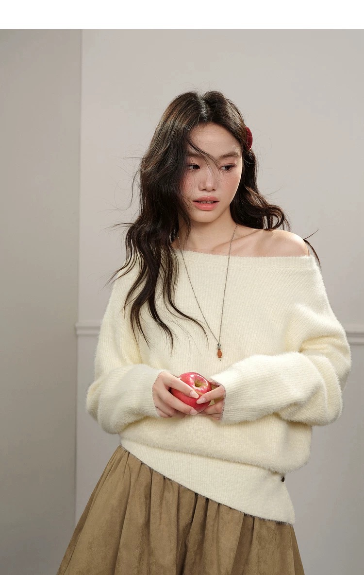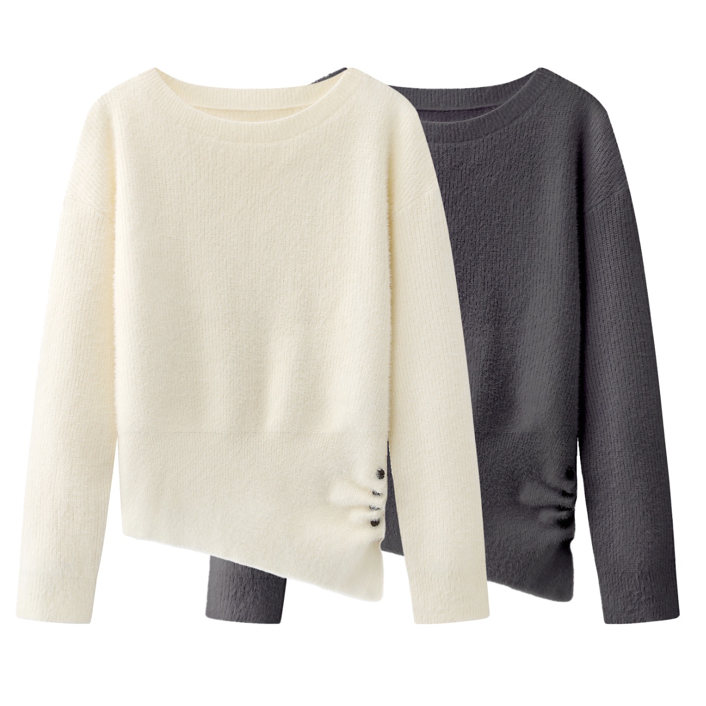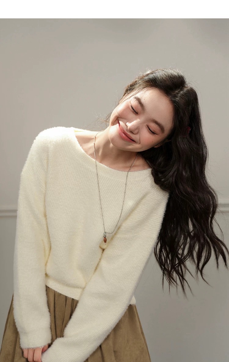 新款现杏色气质毛衣收腰长袖针织衫25秋冬季新款女装大衣内搭打底衫