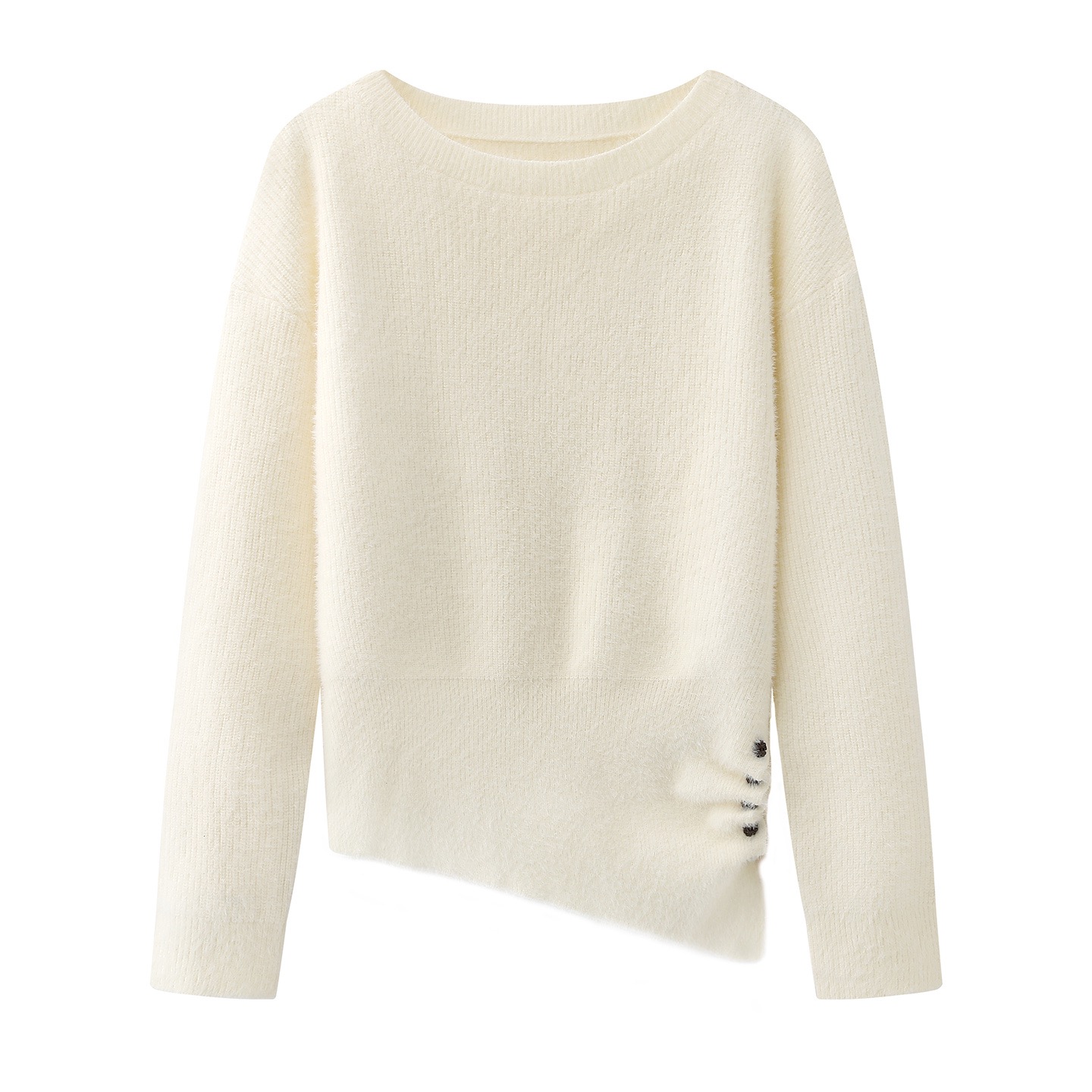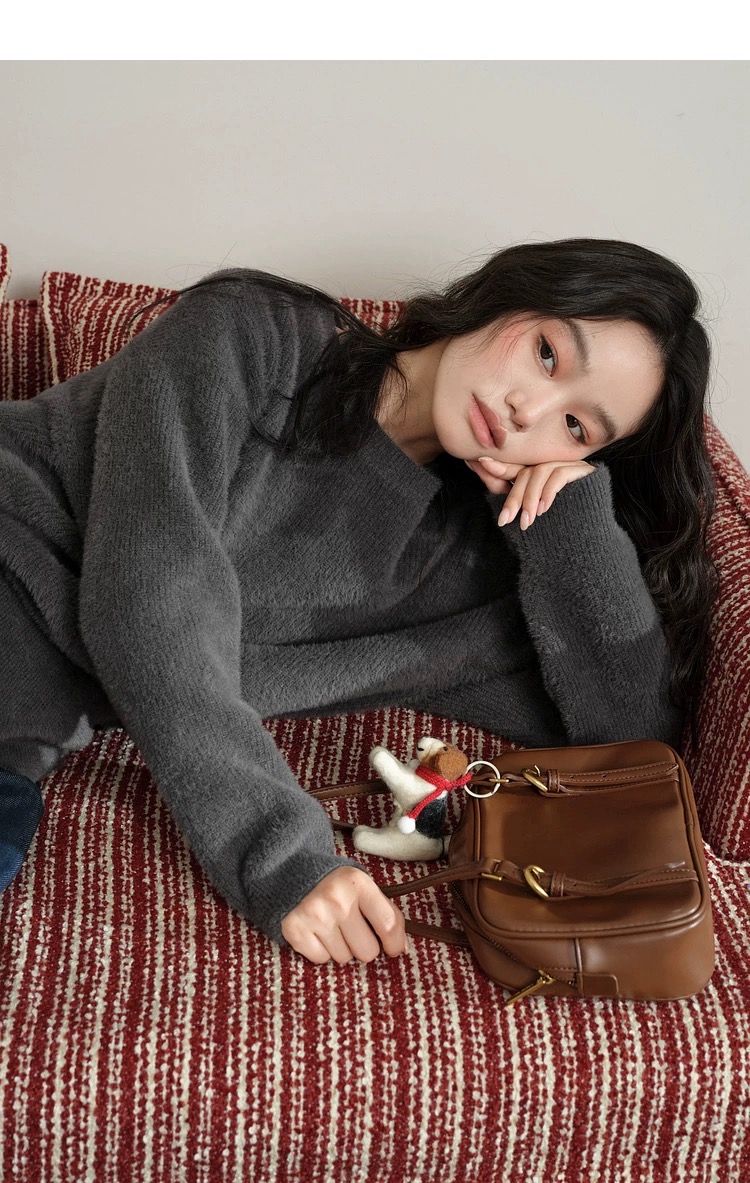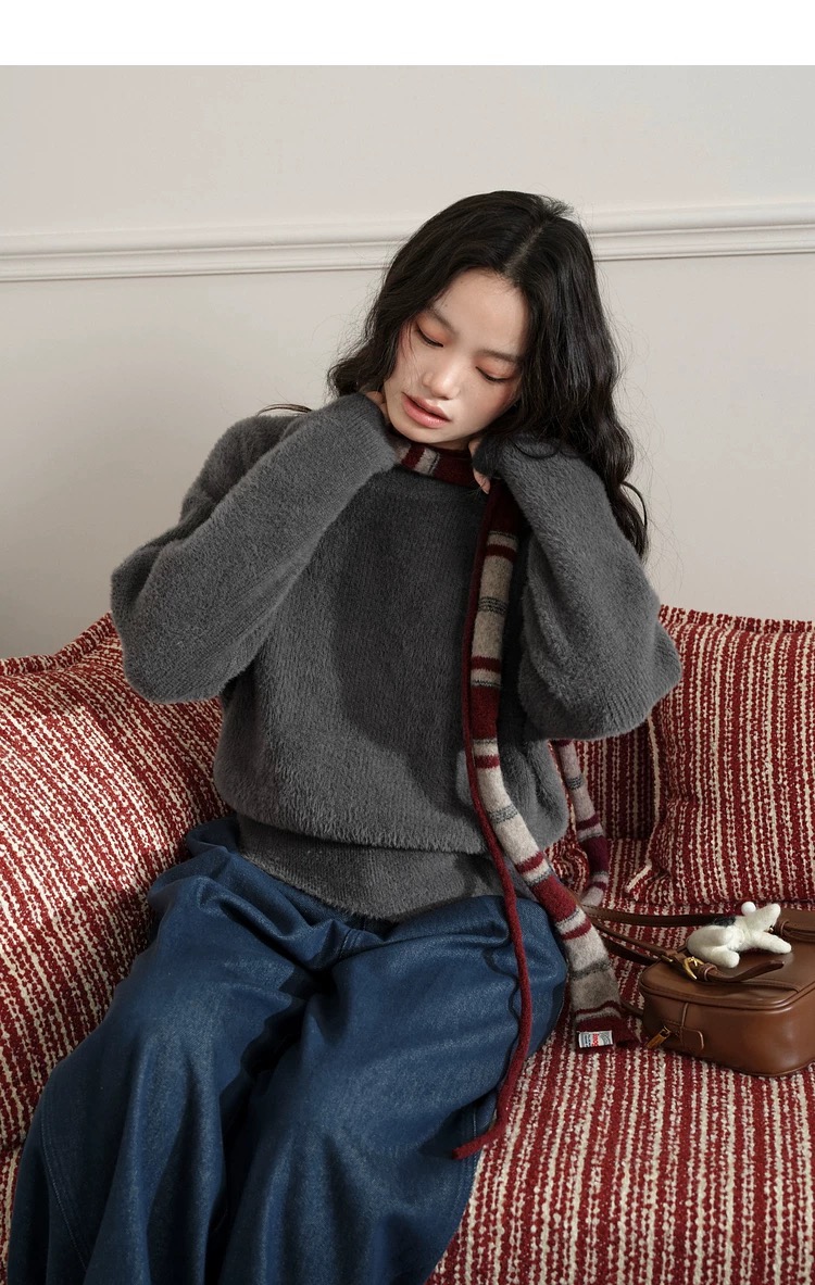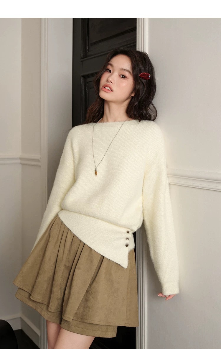 新款现杏色气质毛衣收腰长袖针织衫25秋冬季新款女装大衣内搭打底衫