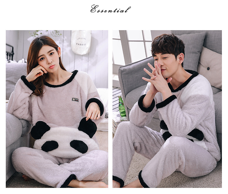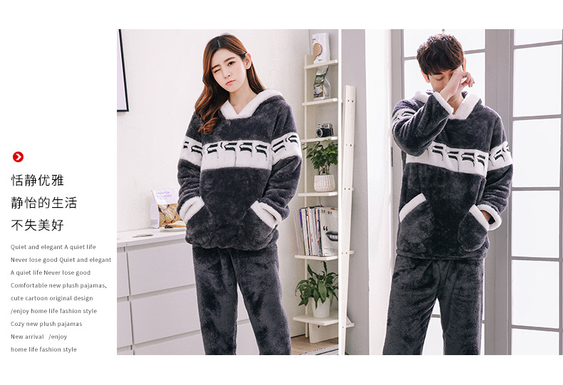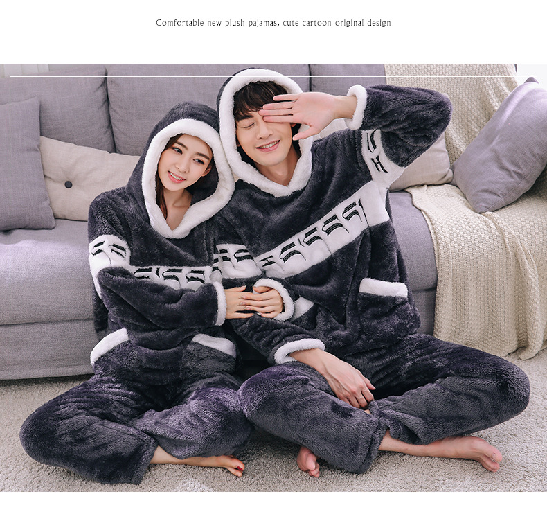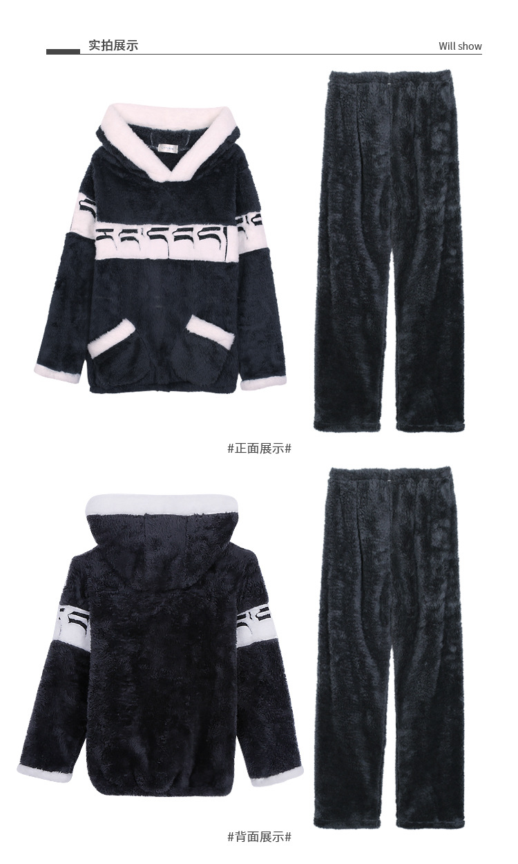 【睡衣女】情侣睡衣秋冬新款珊瑚绒加厚保暖睡 男女士舒适法兰绒套装可外穿