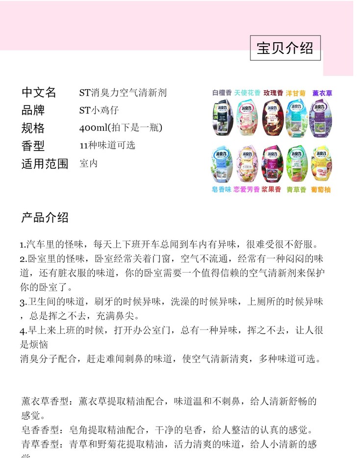 日本 ST小鸡 室内消臭力 除臭芳香剂 400ml