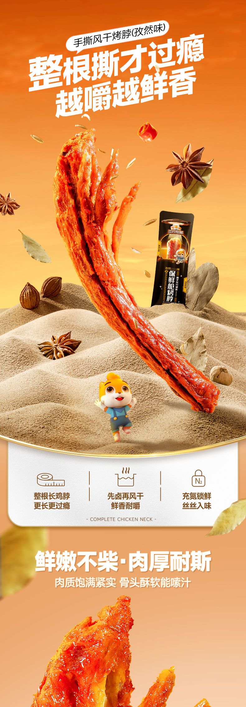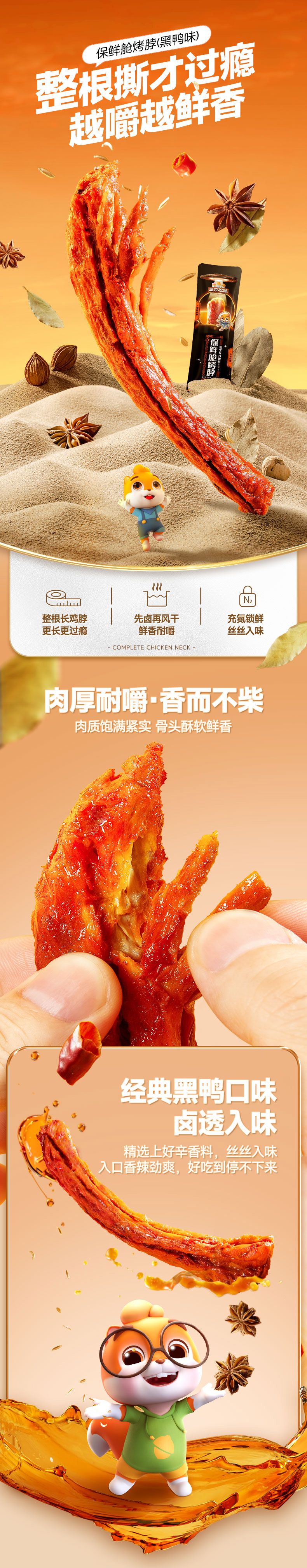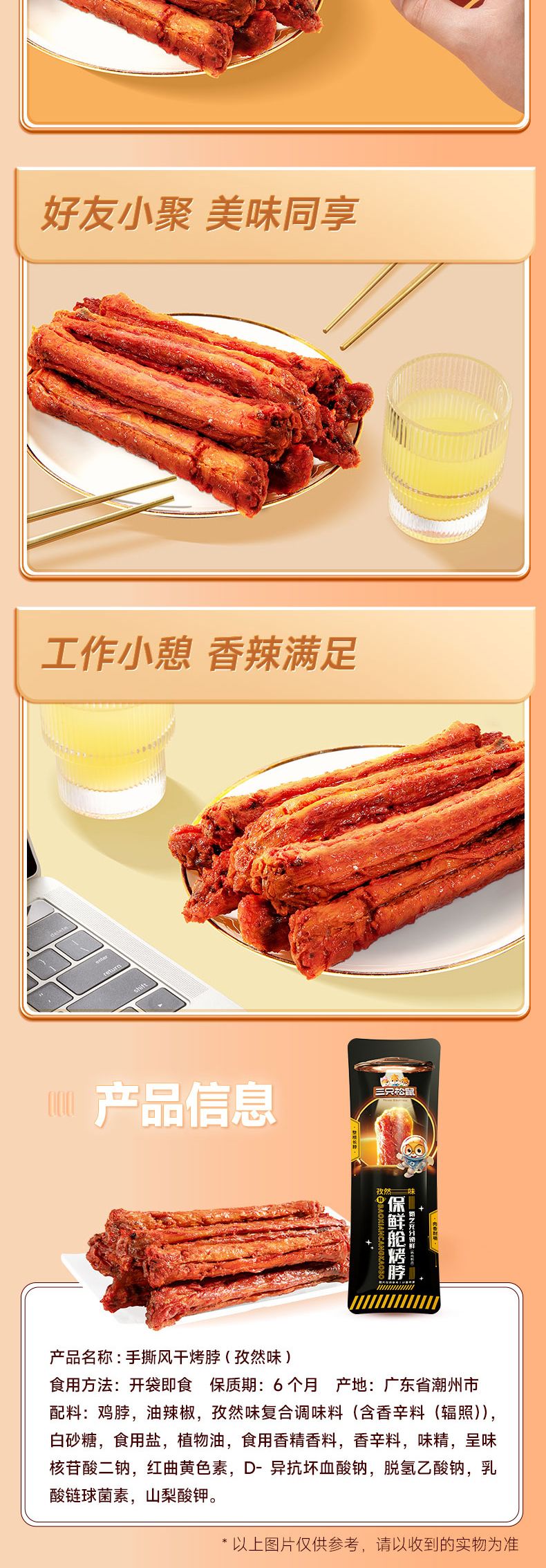 【爆款直降】【三只松鼠】手撕风干烤脖/孜然味/黑鸭味/约30g*12袋-fx
