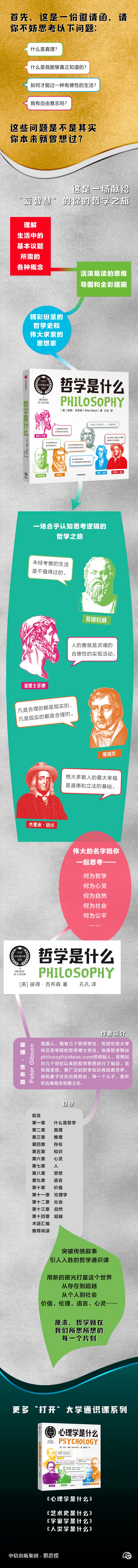 这是一本图文并茂的哲学科普读物。本书包括哲学的核心概念、核心议题、主要哲学家流派及其思想,还有非常多的精美图片,包括但不限于哲学家人物照片、重要的哲学手稿以及有助于读者理解的流程图和扩展阅读。