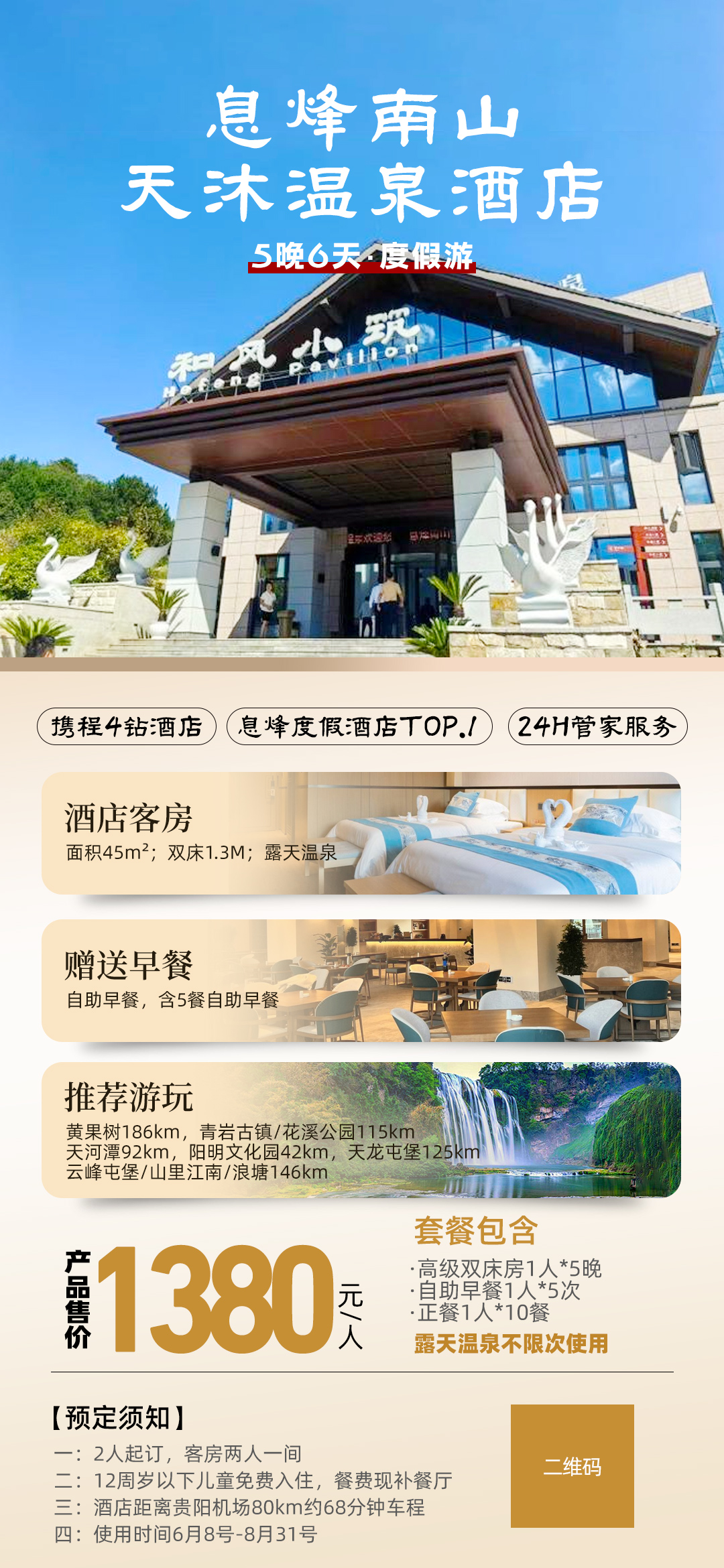 旅居贵州·贵阳息烽南山天沐温泉酒店 6天5晚 单人含餐
