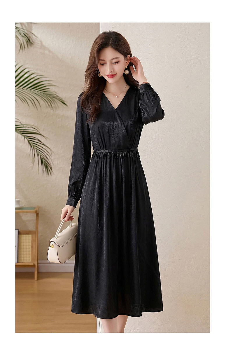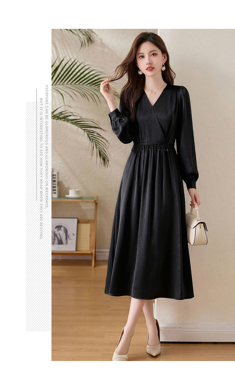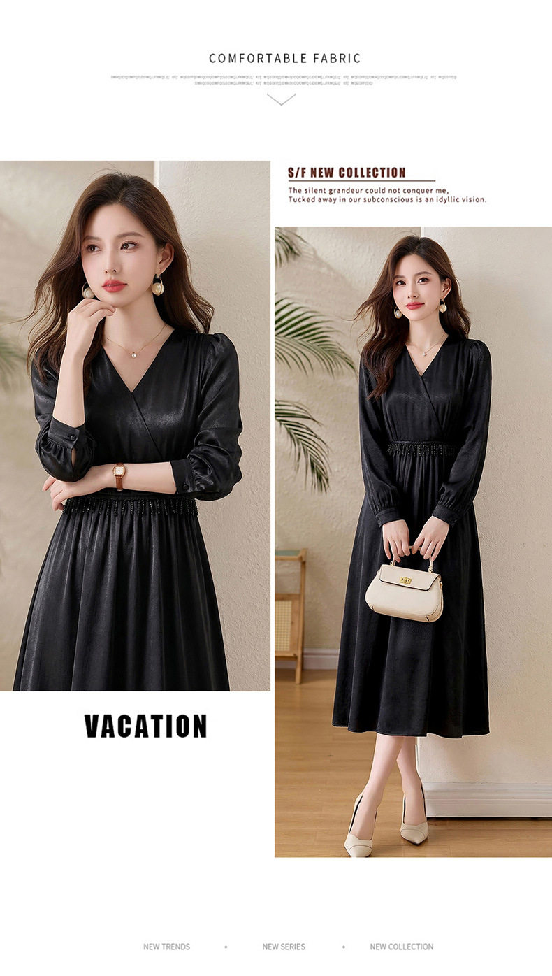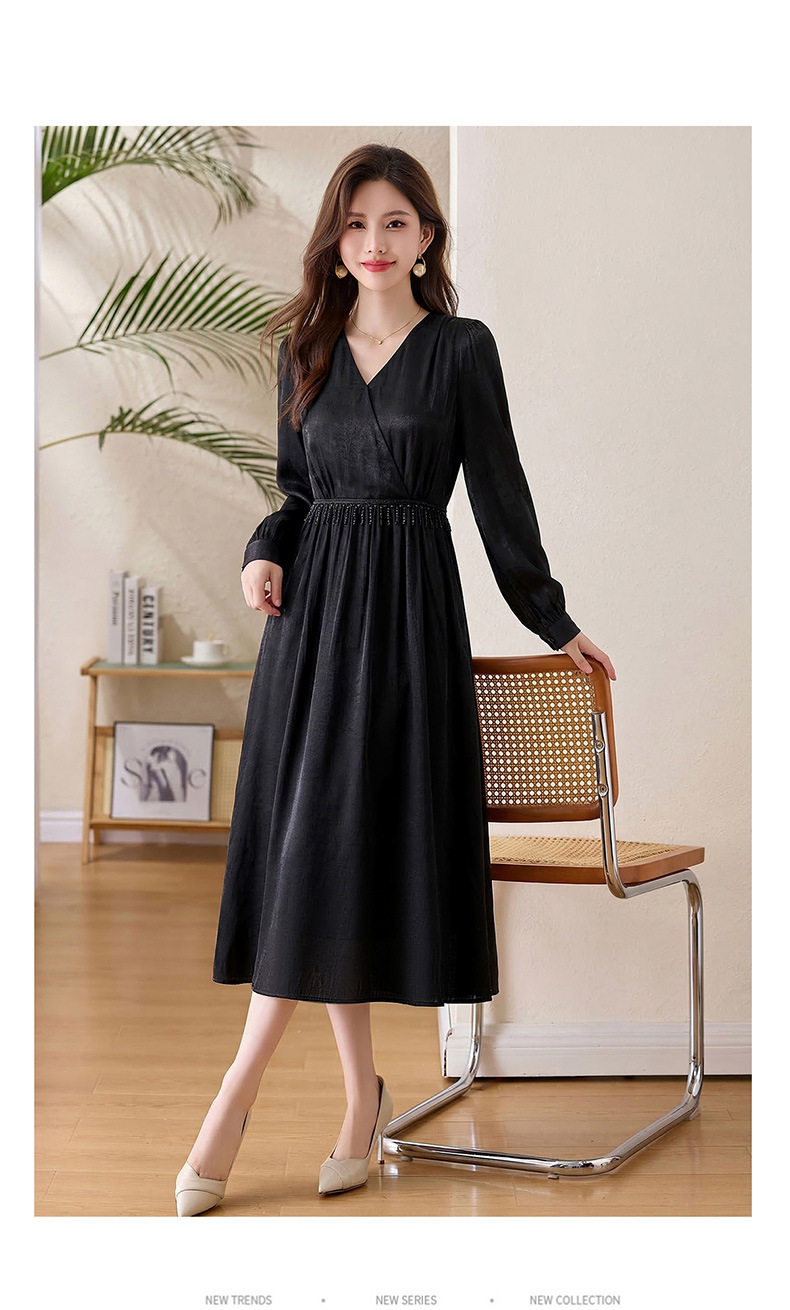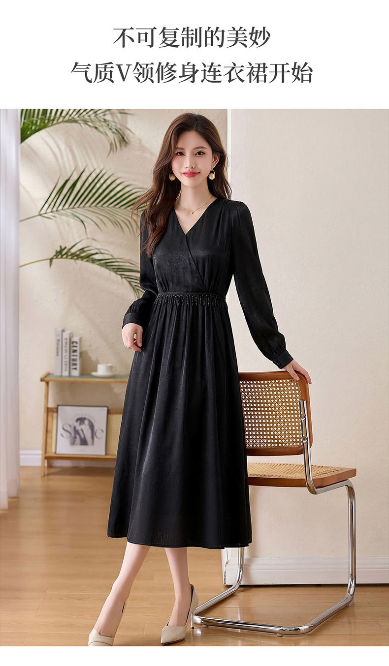 「自」全新升级【铂金会员330/天猫439/差价109】(01540)洛诗琳气质V领钉珠连衣裙女2026新款高级感温柔风收腰长裙