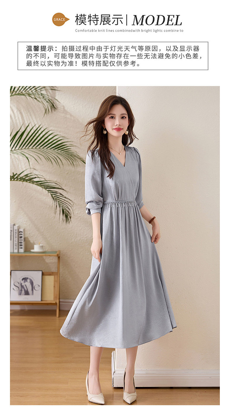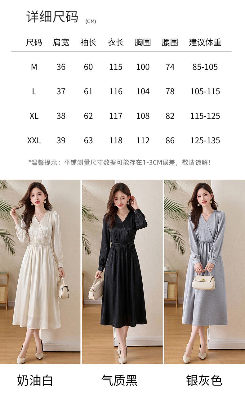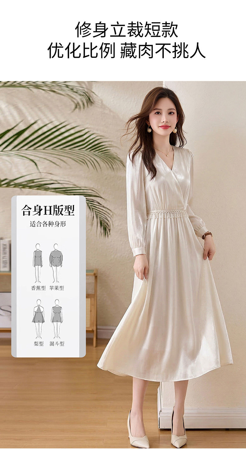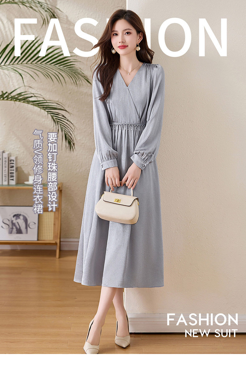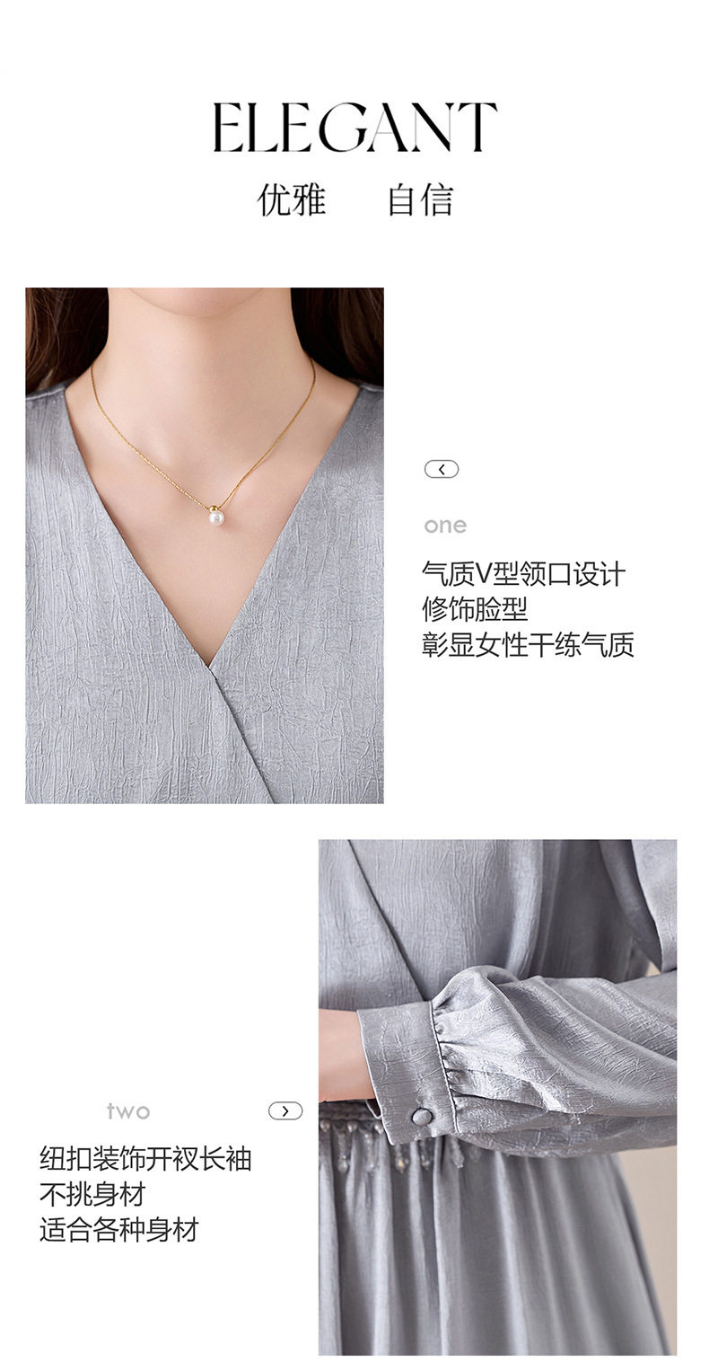 「自」全新升级【铂金会员330/天猫439/差价109】(01540)洛诗琳气质V领钉珠连衣裙女2026新款高级感温柔风收腰长裙