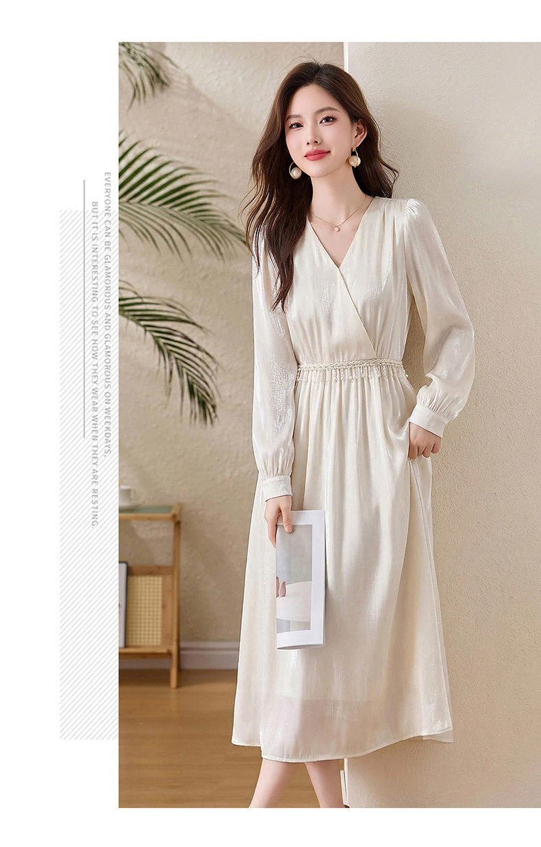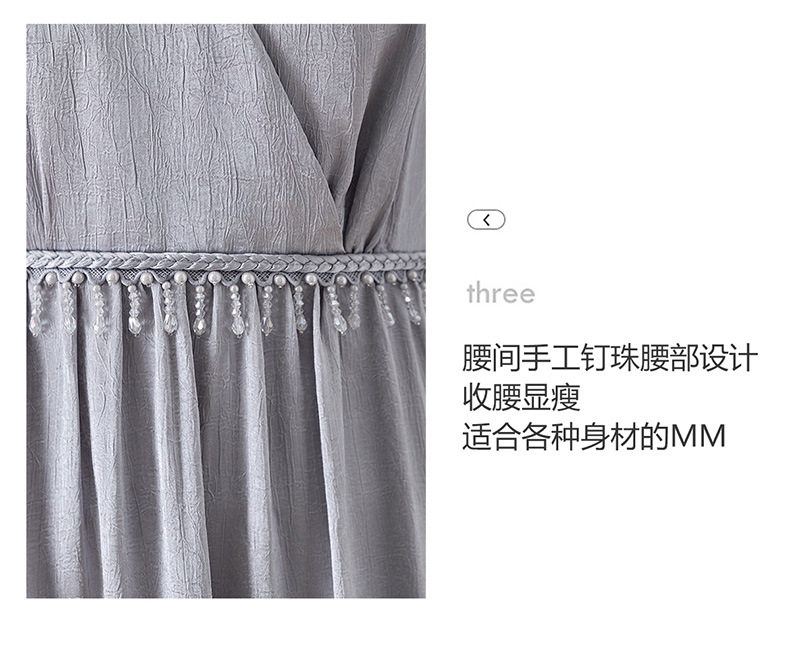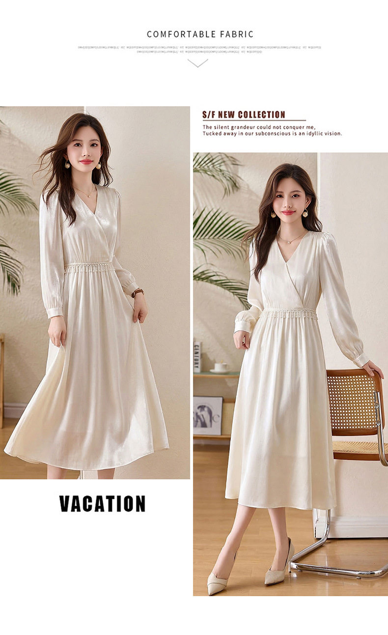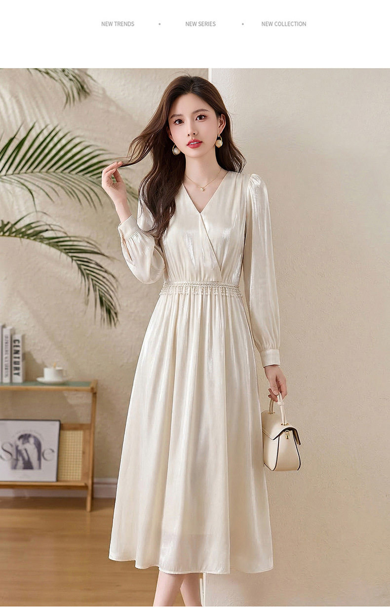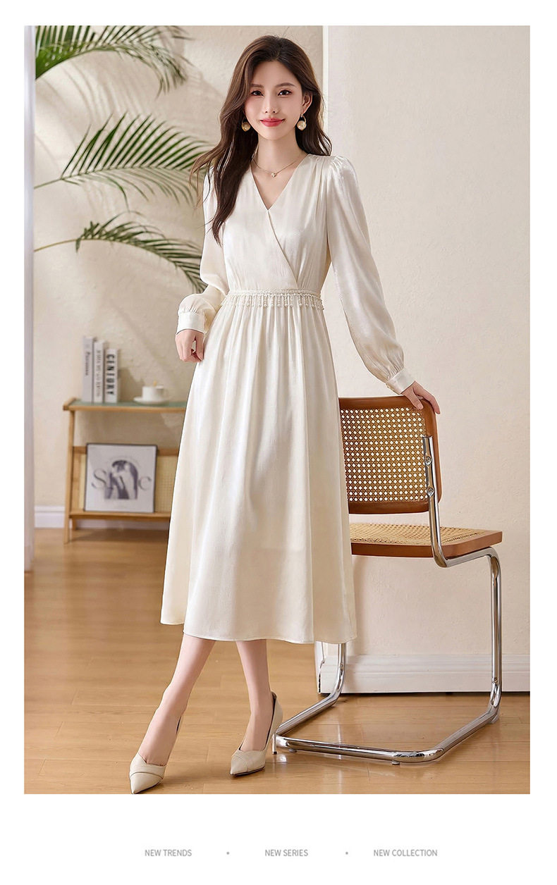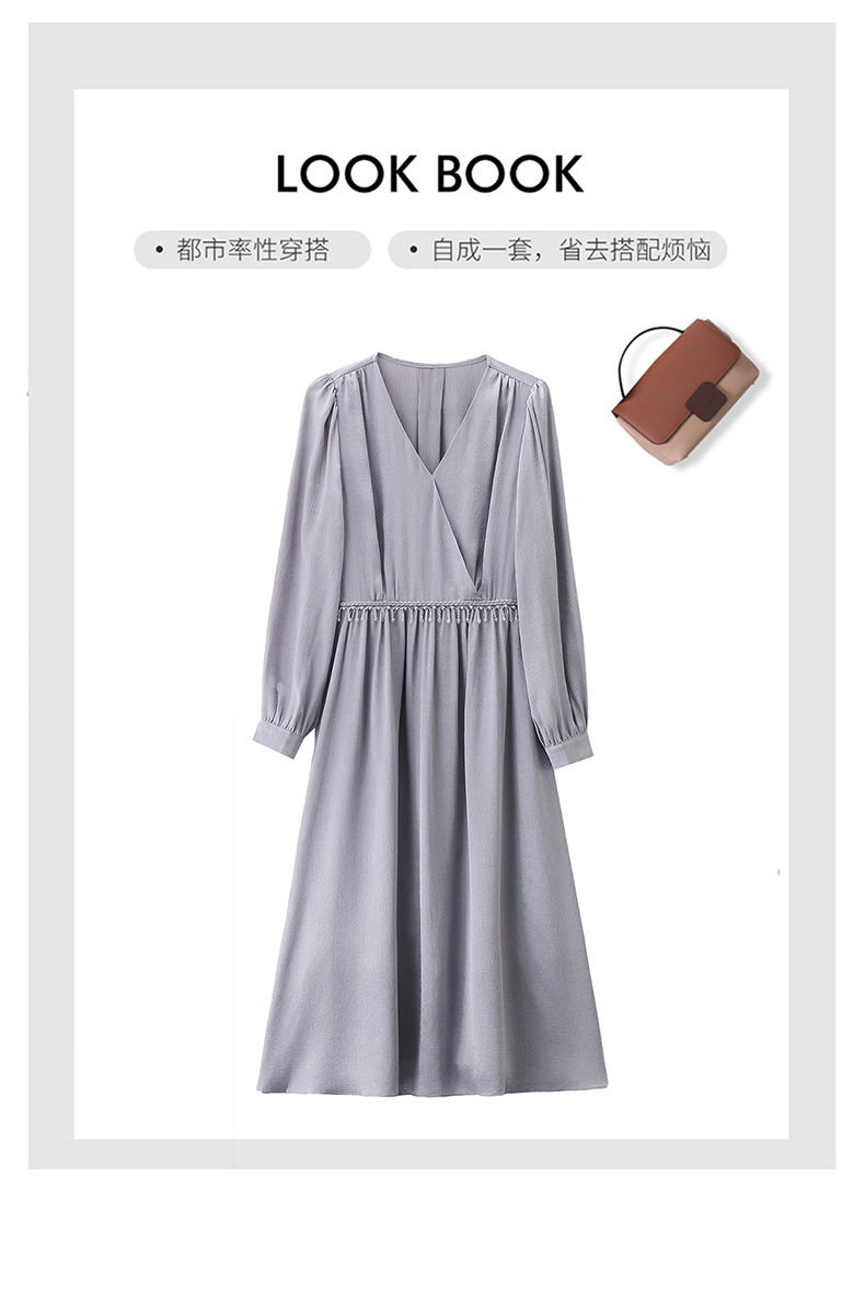 「自」全新升级【铂金会员330/天猫439/差价109】(01540)洛诗琳气质V领钉珠连衣裙女2026新款高级感温柔风收腰长裙