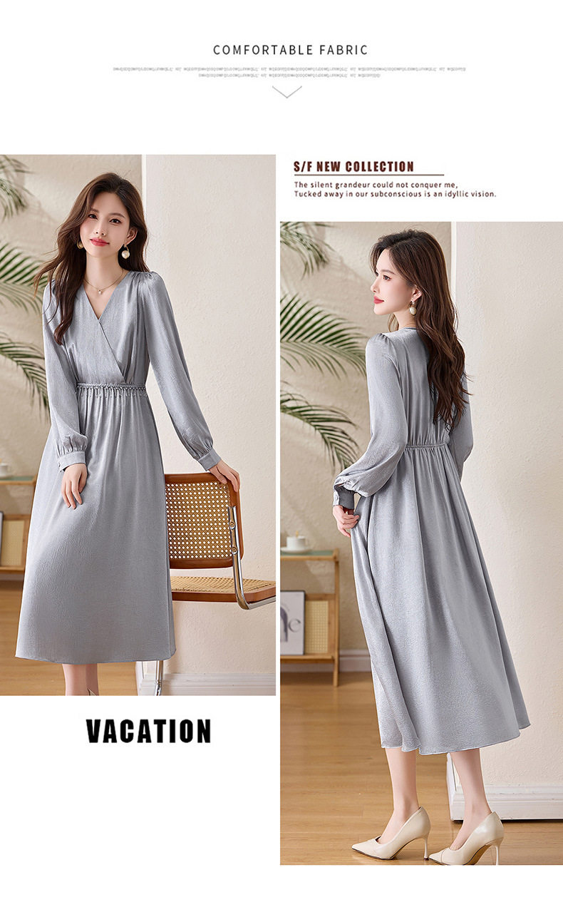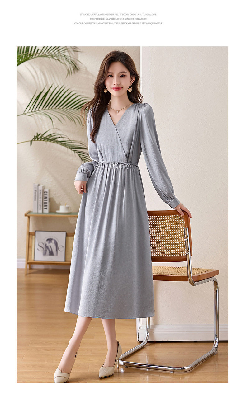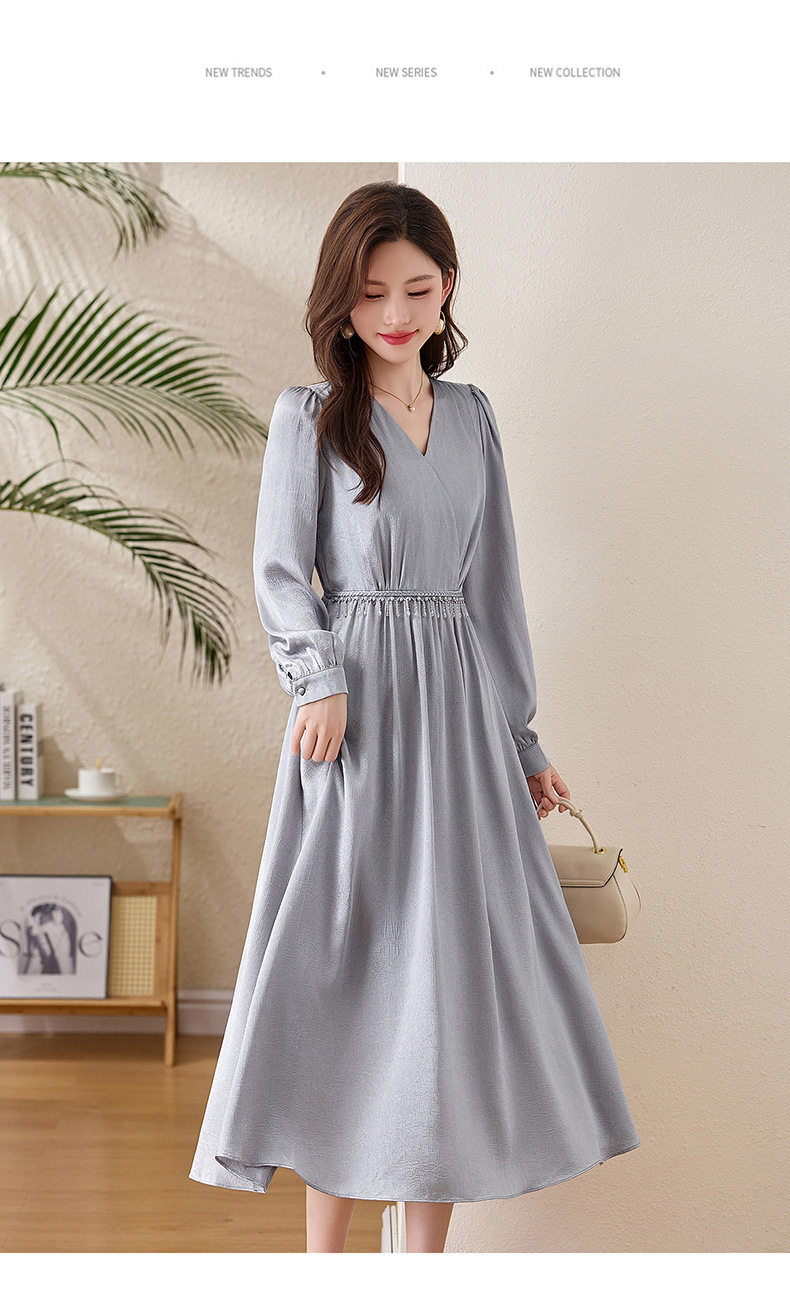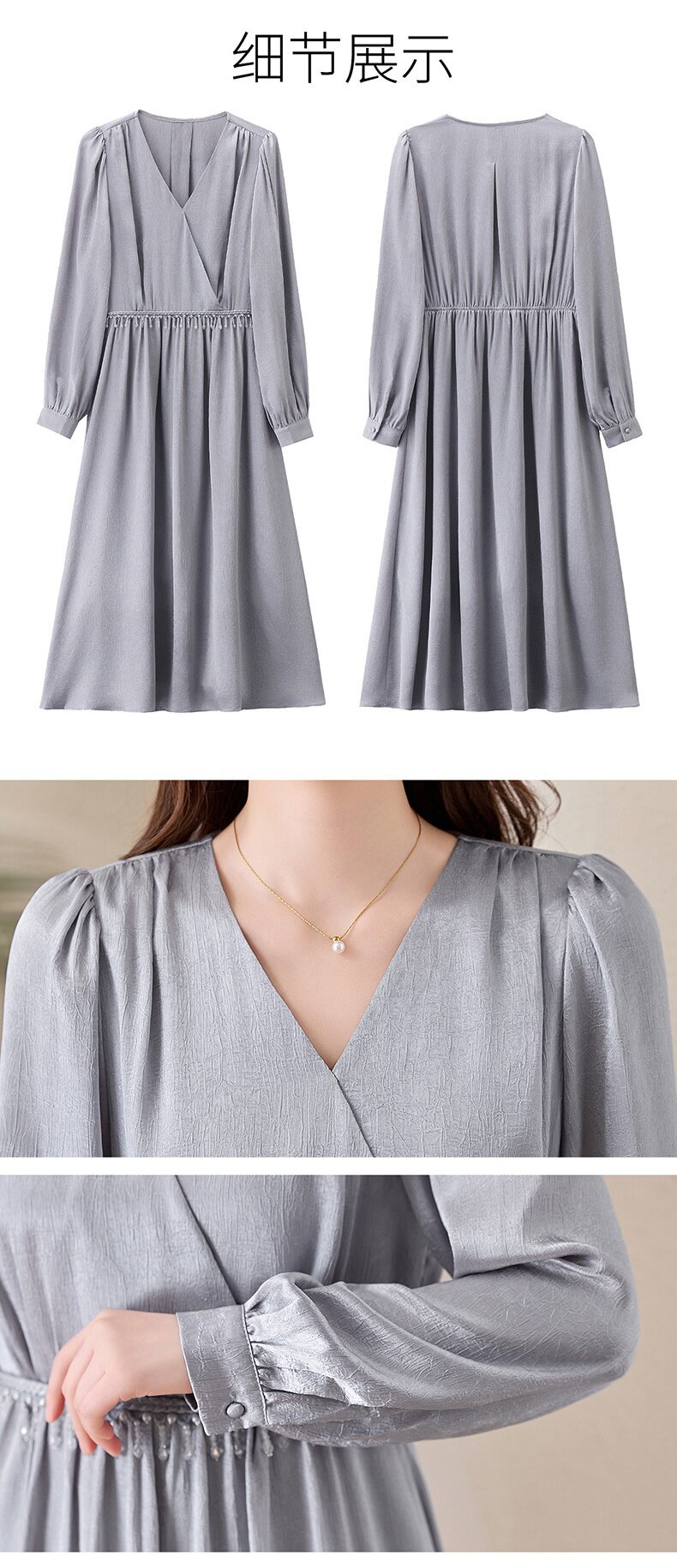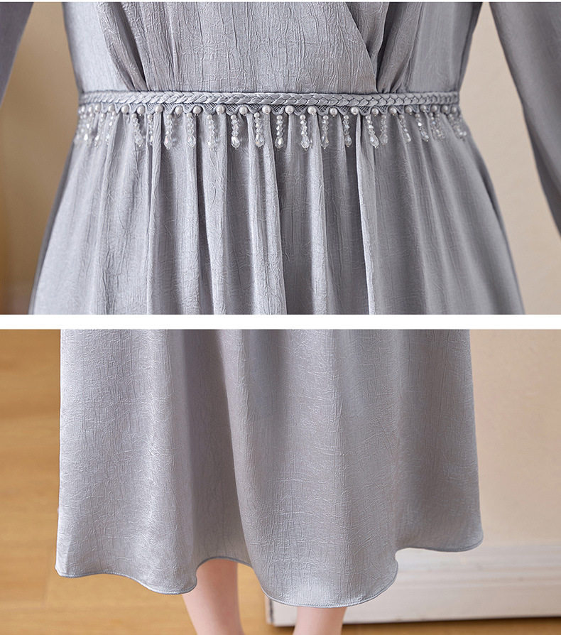 「自」全新升级【铂金会员330/天猫439/差价109】(01540)洛诗琳气质V领钉珠连衣裙女2026新款高级感温柔风收腰长裙