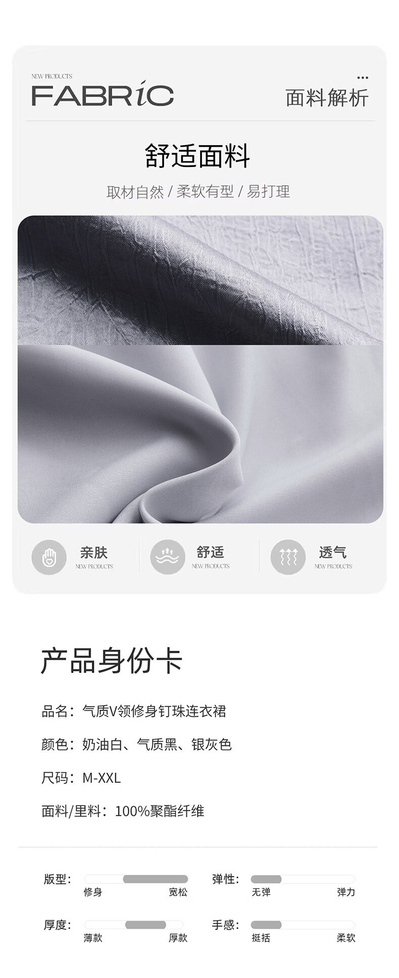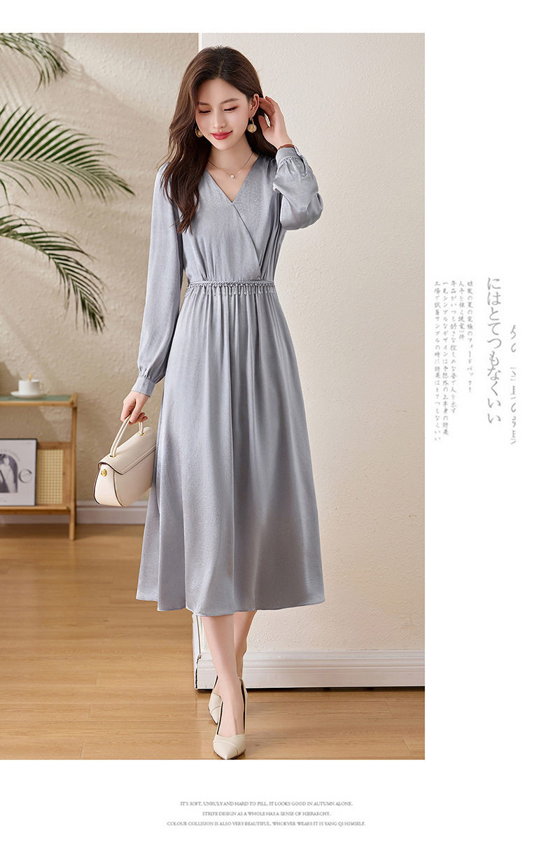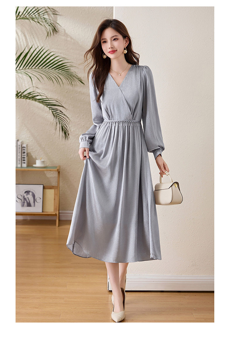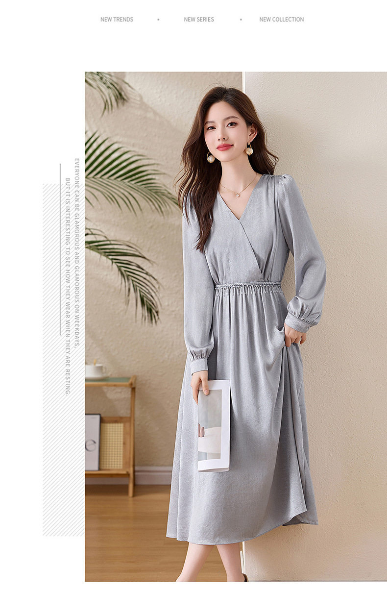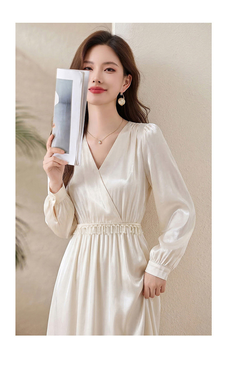 「自」全新升级【铂金会员330/天猫439/差价109】(01540)洛诗琳气质V领钉珠连衣裙女2026新款高级感温柔风收腰长裙