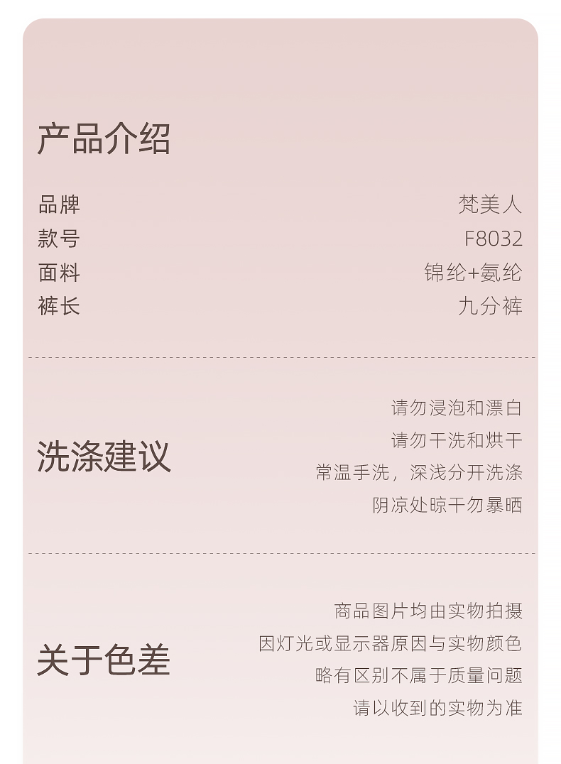 梵美人 F8053Q 瑜伽九分裤 莱卡轻氧