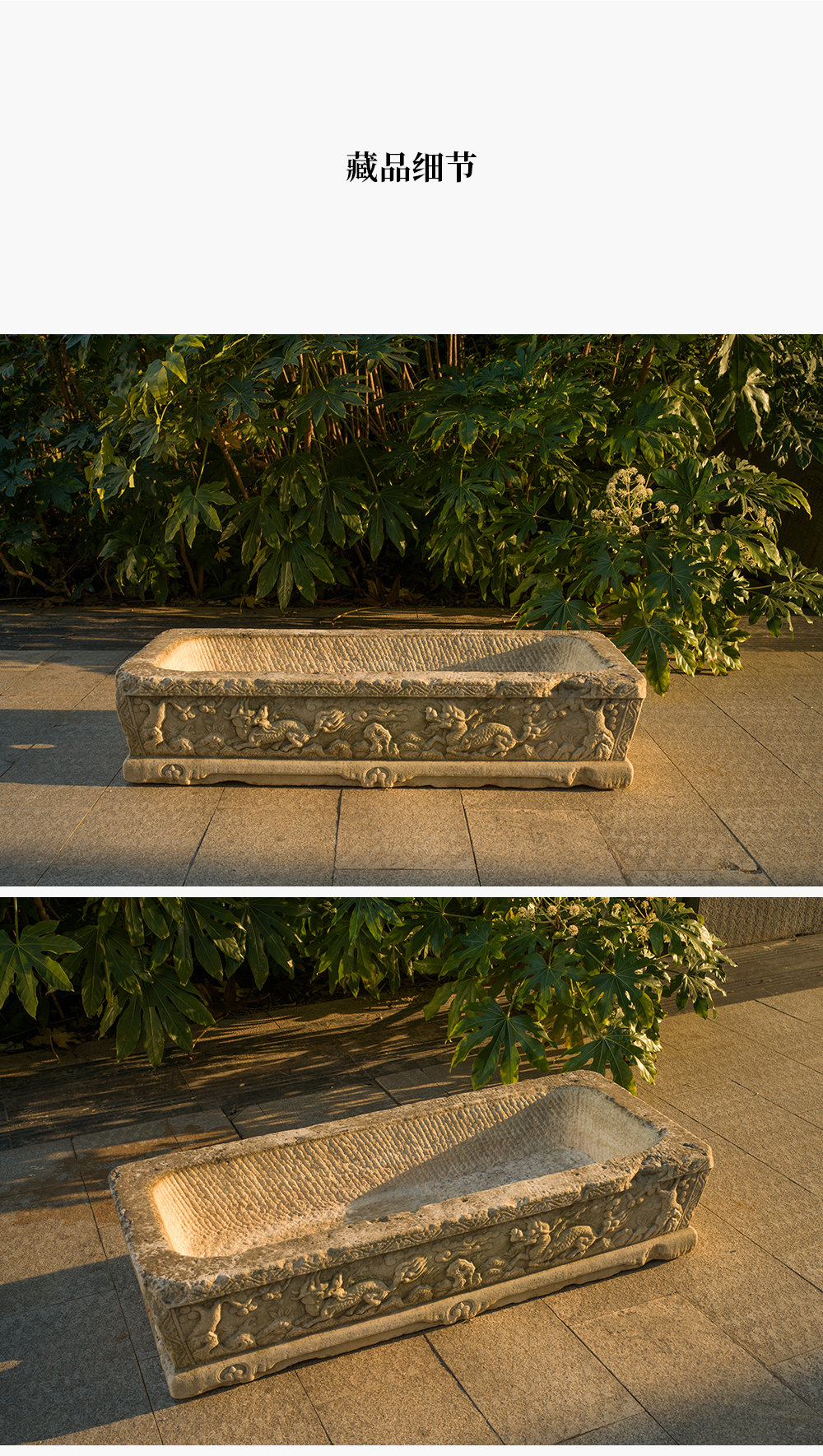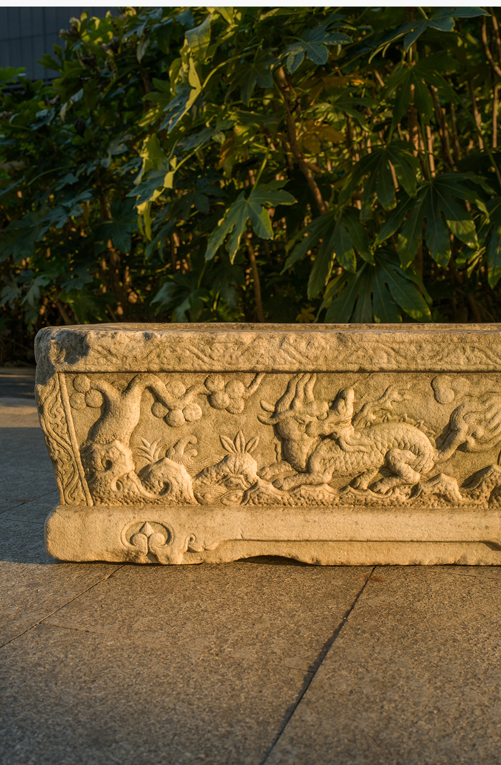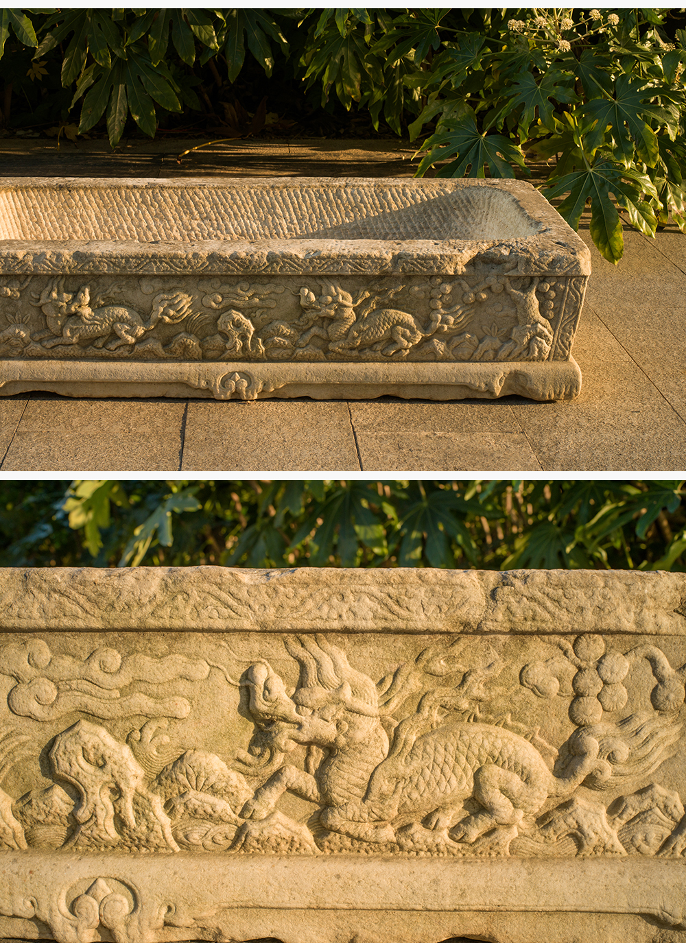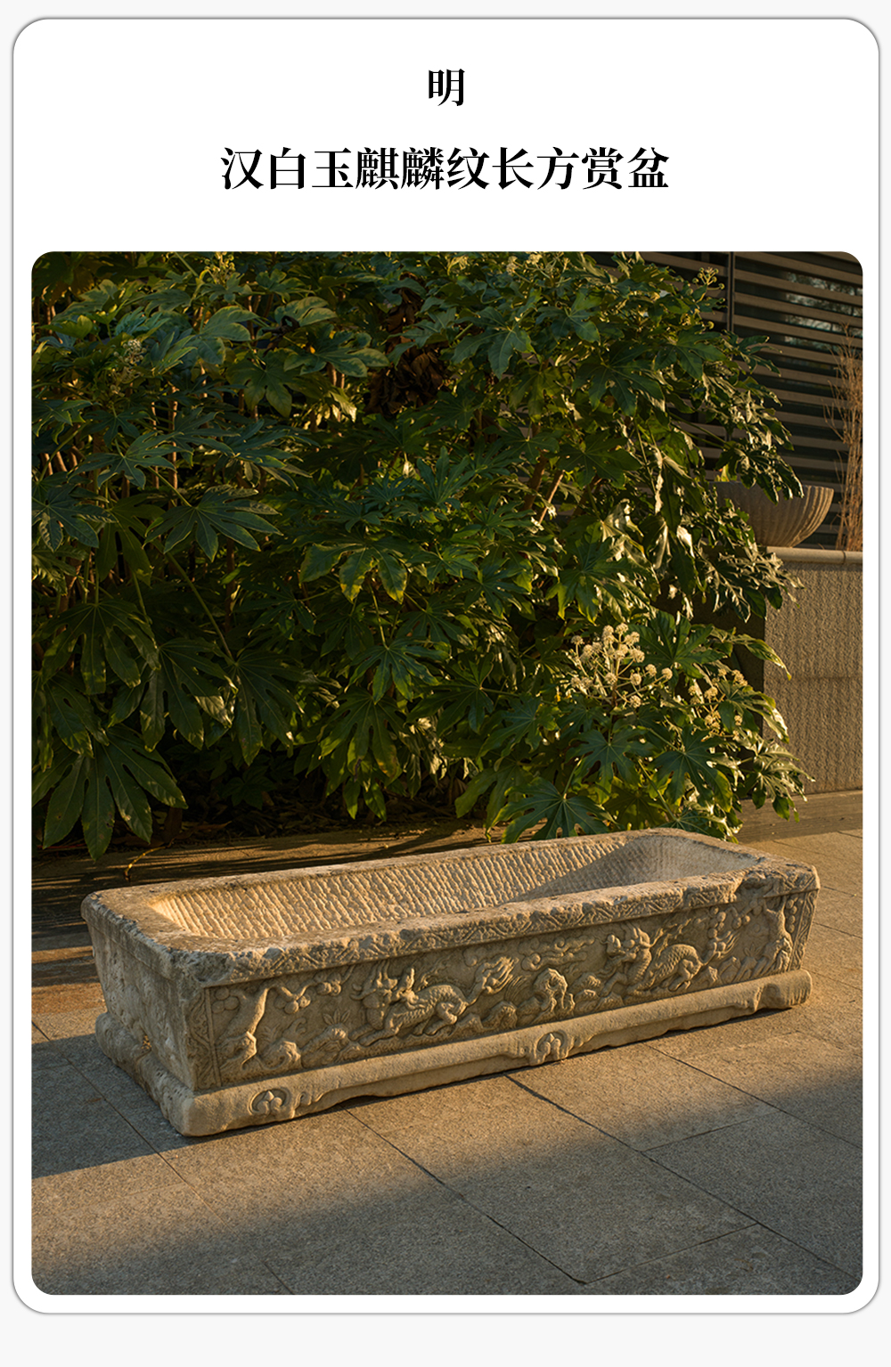 明 汉白玉麒麟纹长方赏盆