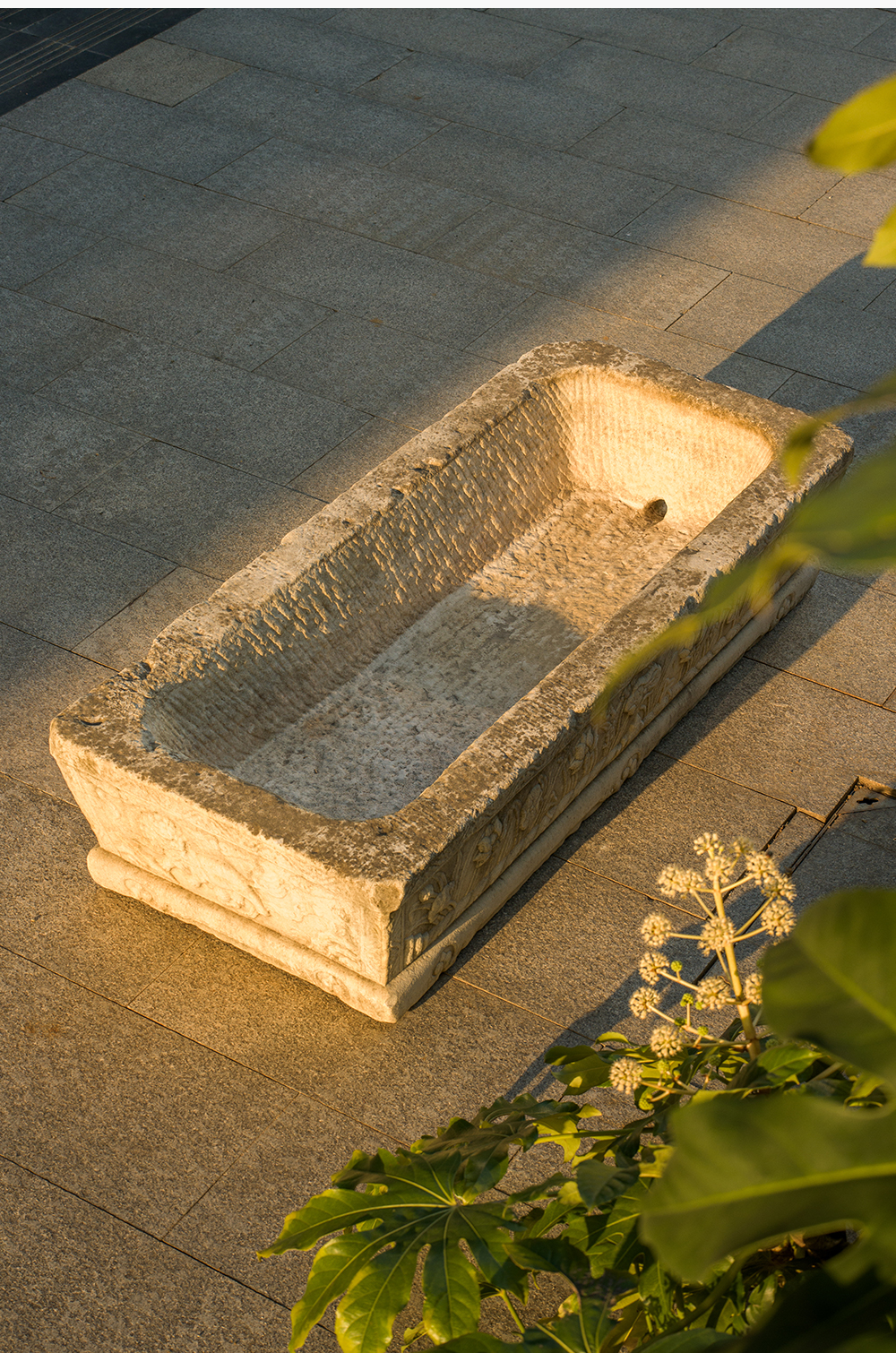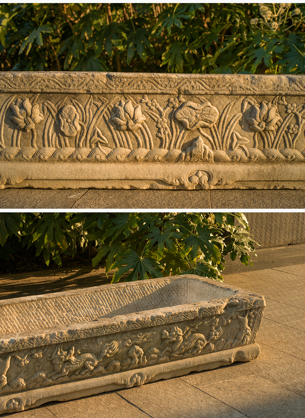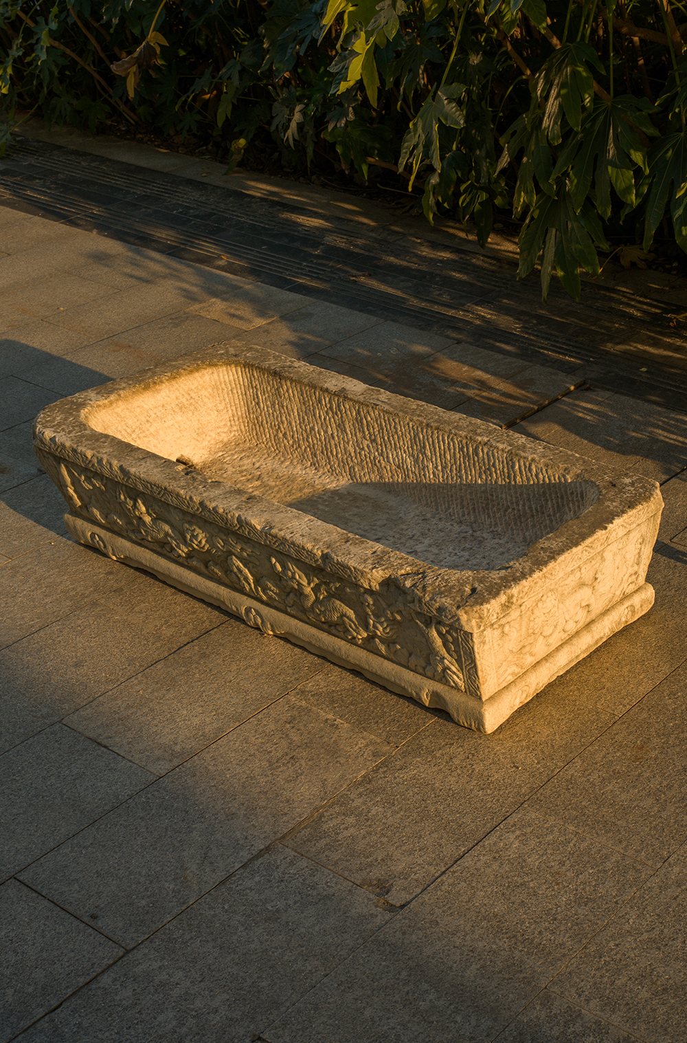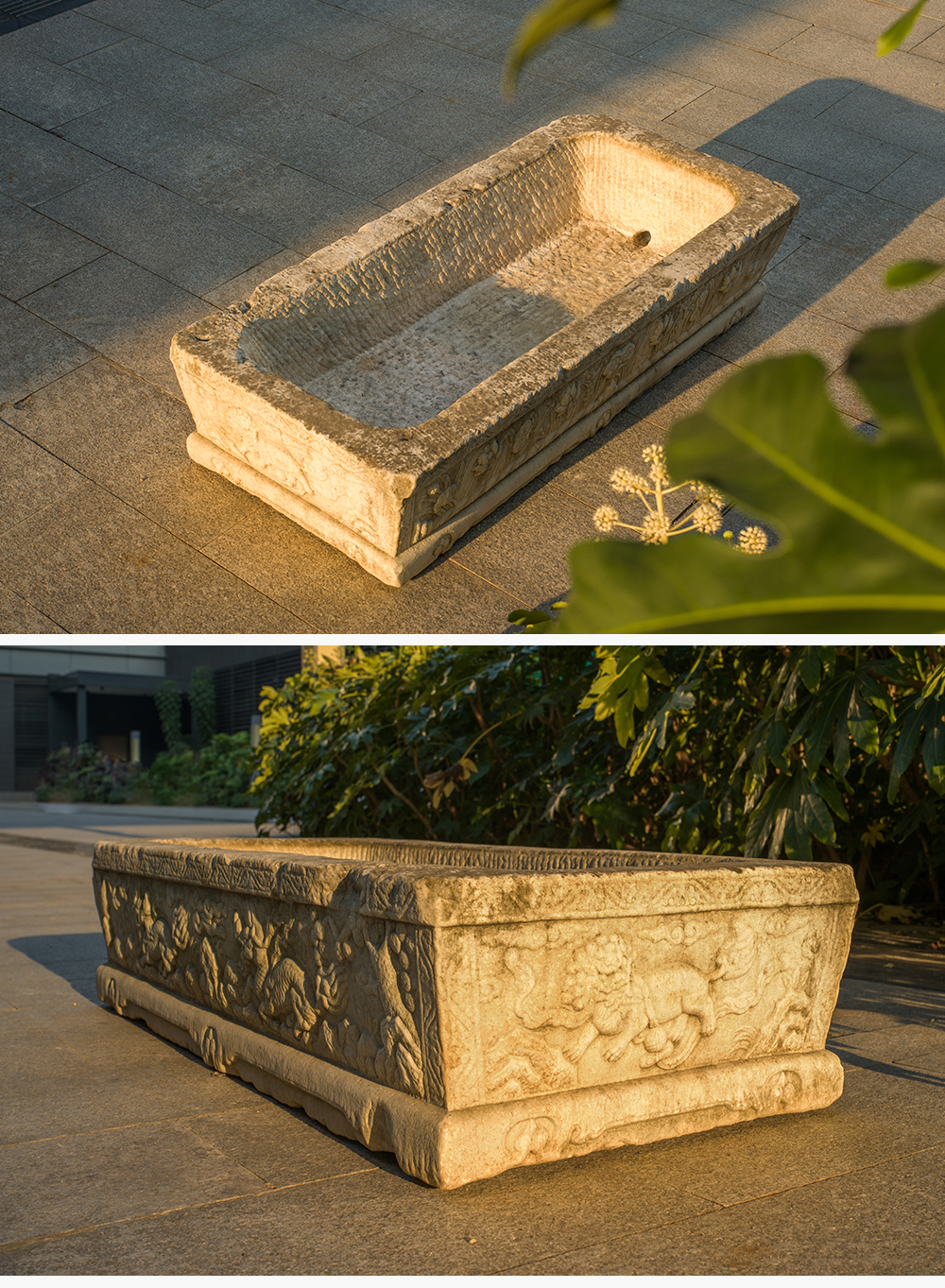 明 汉白玉麒麟纹长方赏盆