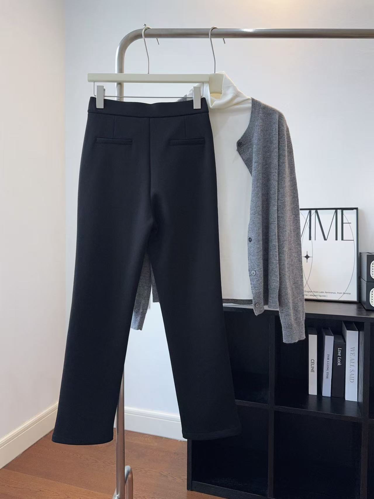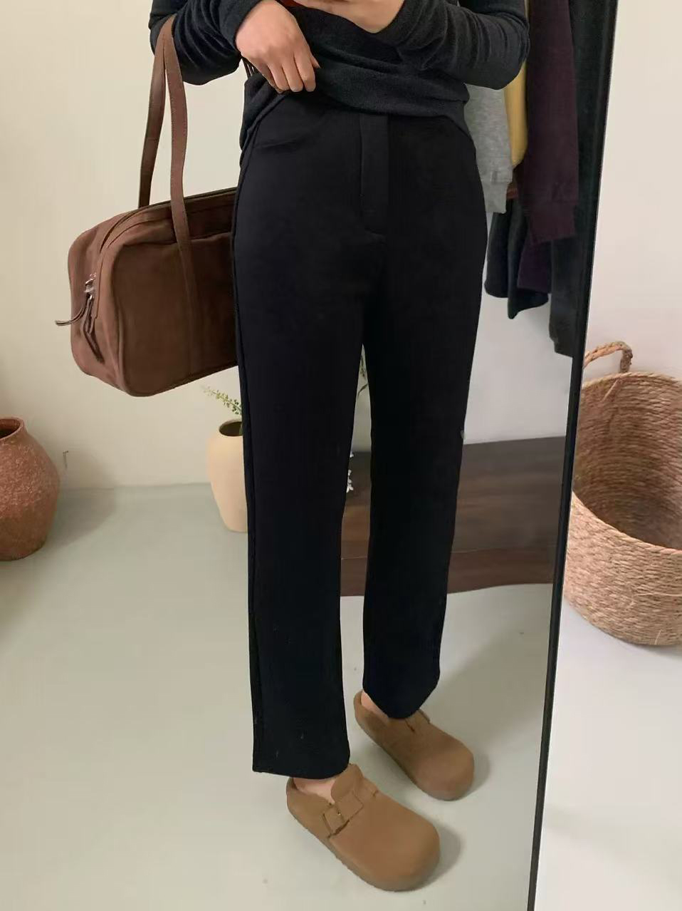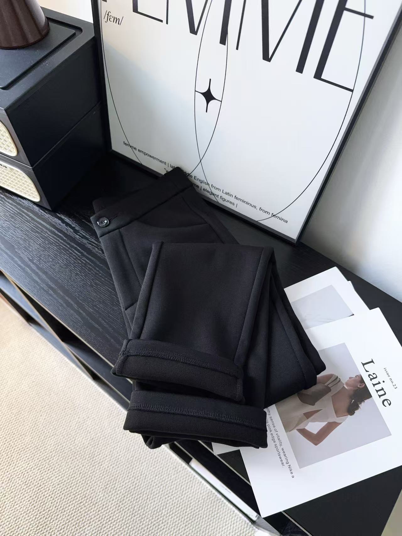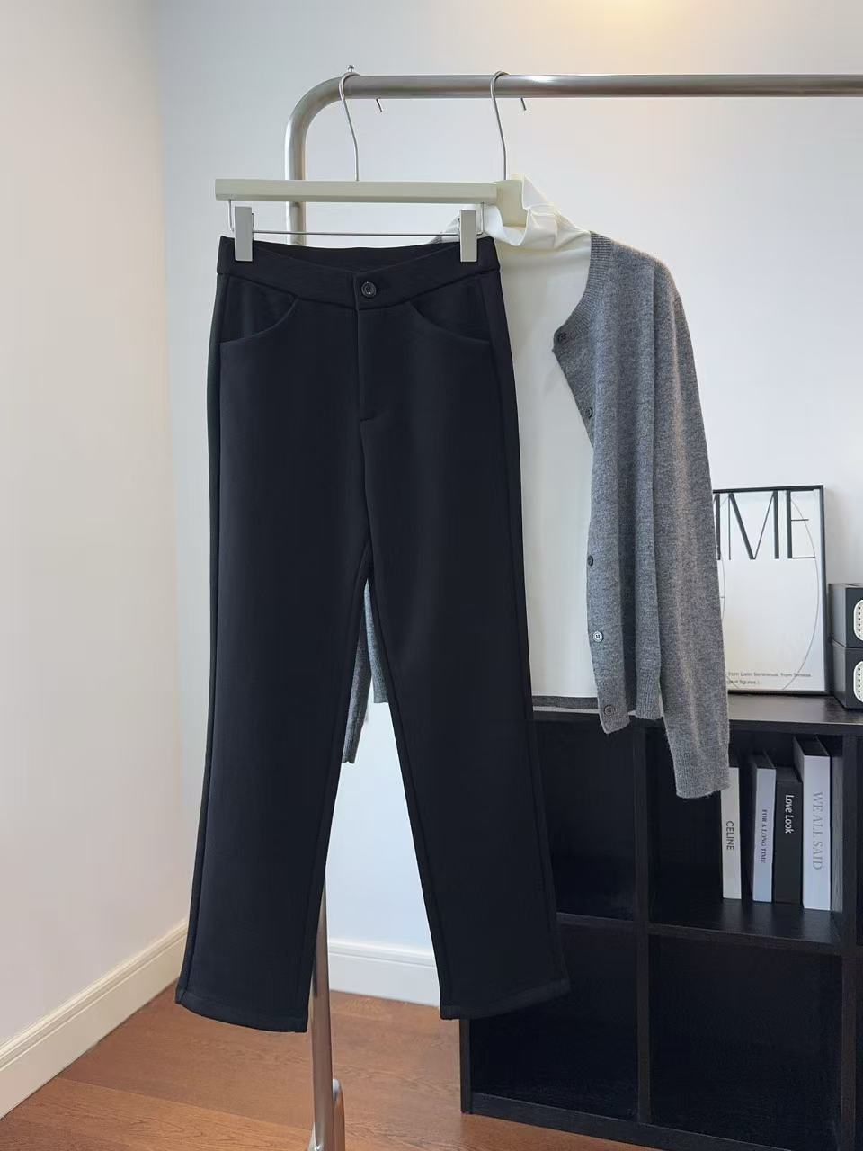 加绒修身显瘦弹力 小个子休闲直筒烟管裤 九分小黑裤