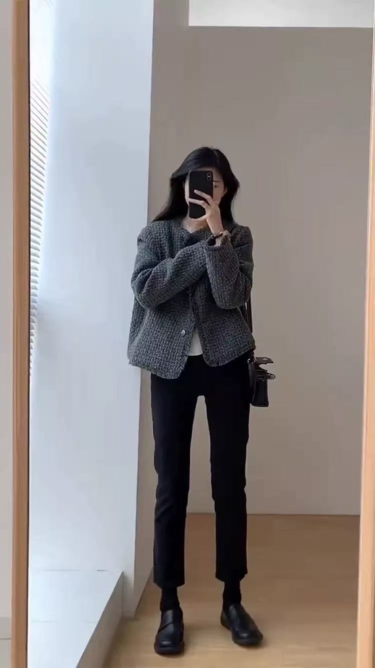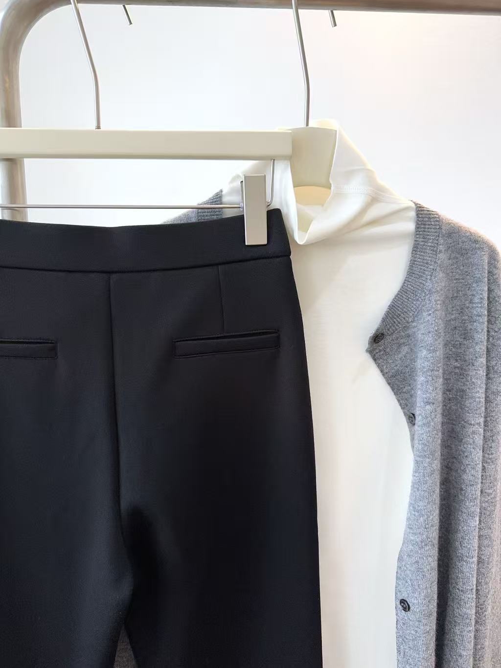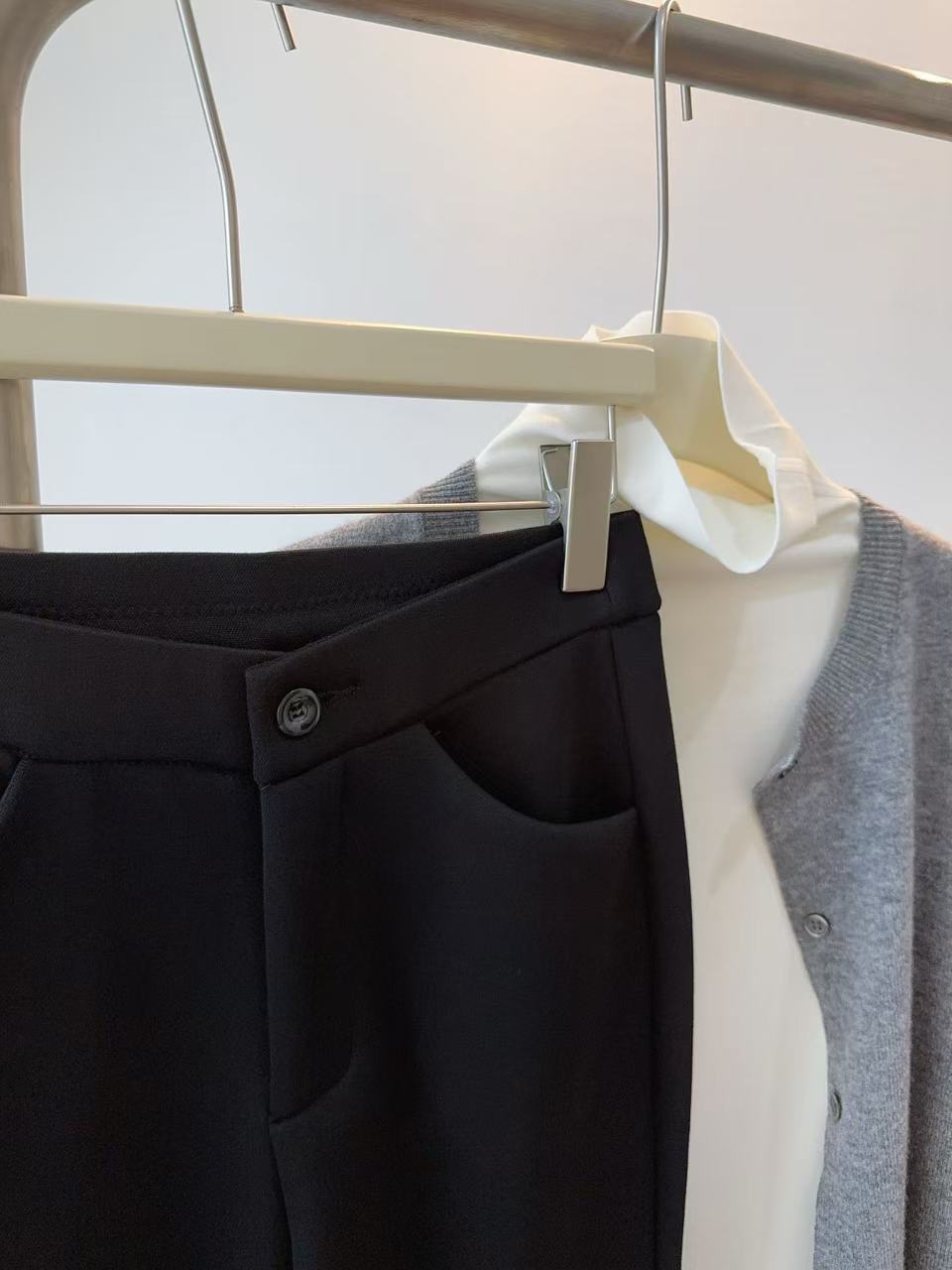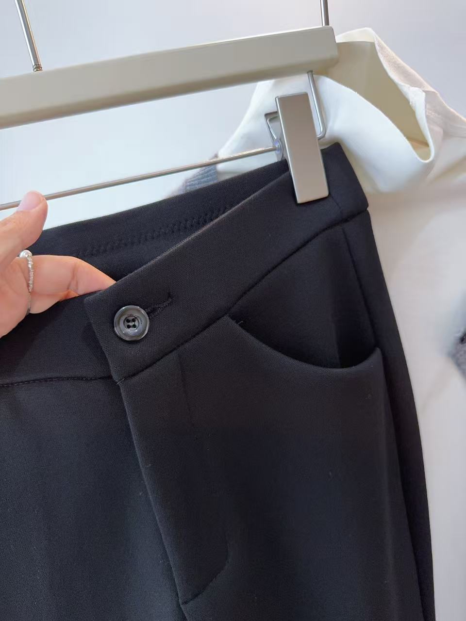 加绒修身显瘦弹力 小个子休闲直筒烟管裤 九分小黑裤