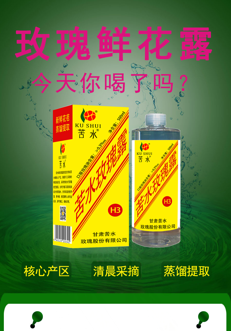 苦水牌鲜花露 500m【H3】甘肃油玫瑰核心产区清晨采摘鲜花苞蒸馏提取