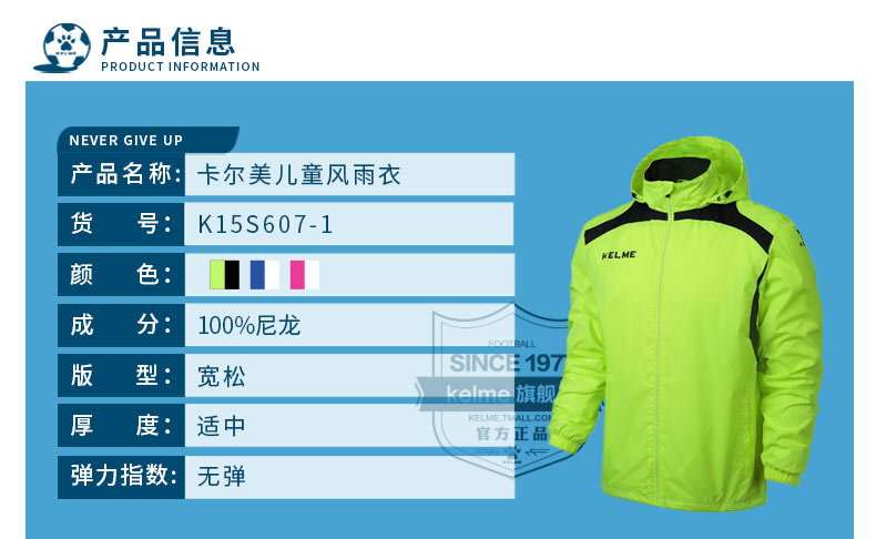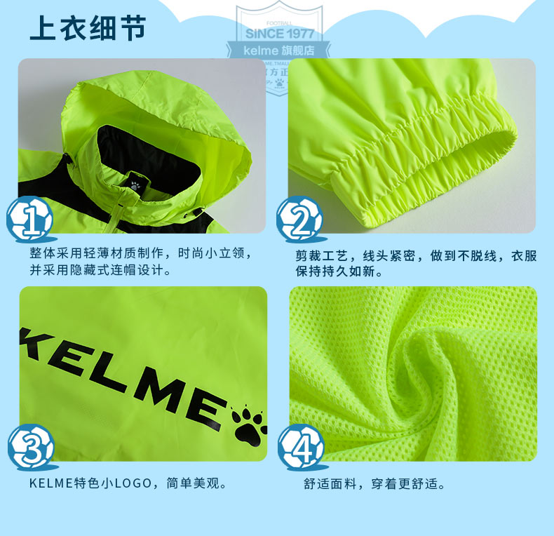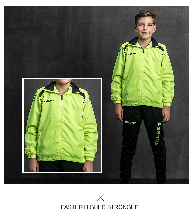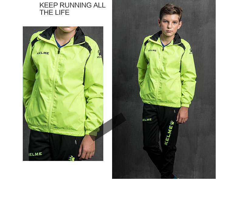 kelme卡尔美 男童女童风雨衣中大童足球训练外套防风运动风衣