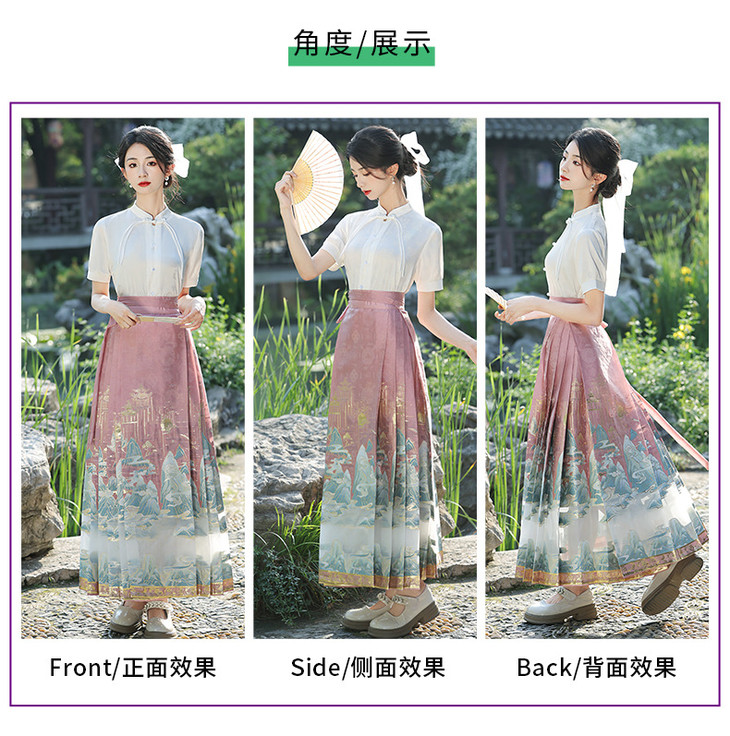 高端汉服明制马面裙,织金妆花拼接网纱MLS168
