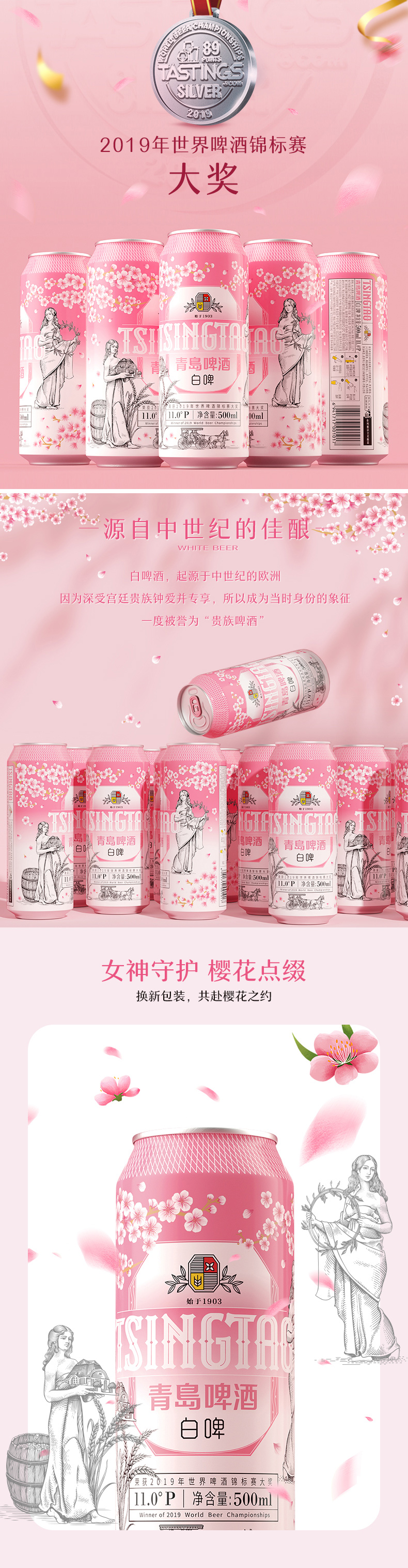 【囤货】青岛啤酒樱花限定款白啤 500ml*12听*2箱+足球罐500ml*12听*2箱 商品图0