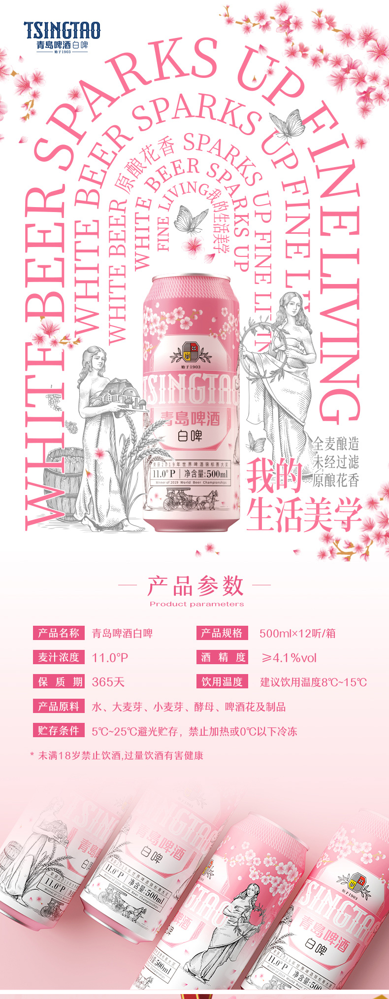 【囤货】青岛啤酒樱花限定款白啤 500ml*12听*2箱+足球罐500ml*12听*2箱 商品缩略图0