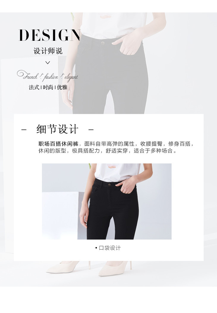 EITIE爱特爱女装夏款时尚通勤百搭纯色修身显瘦铅笔裤长裤女6105817