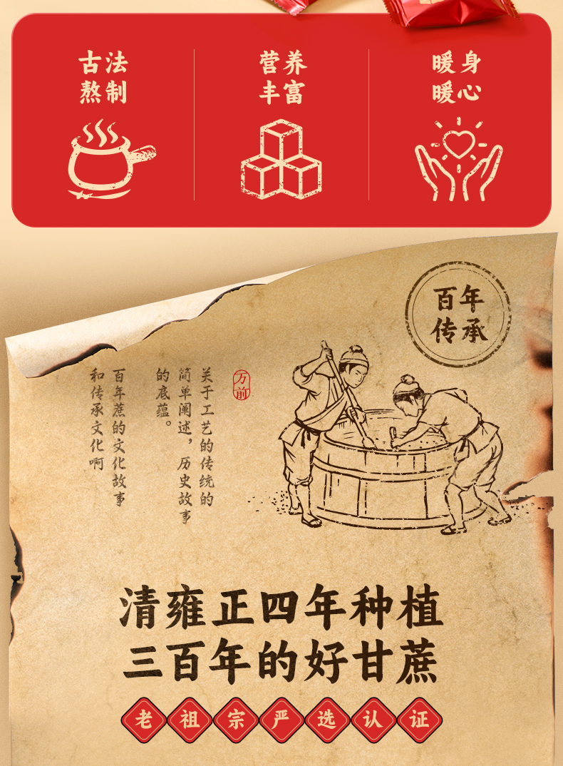 古法制作!姚淑先【百年蔗红糖】自然之馈,滋养之选,古法工艺制作,真红糖,只有甘蔗,0添加