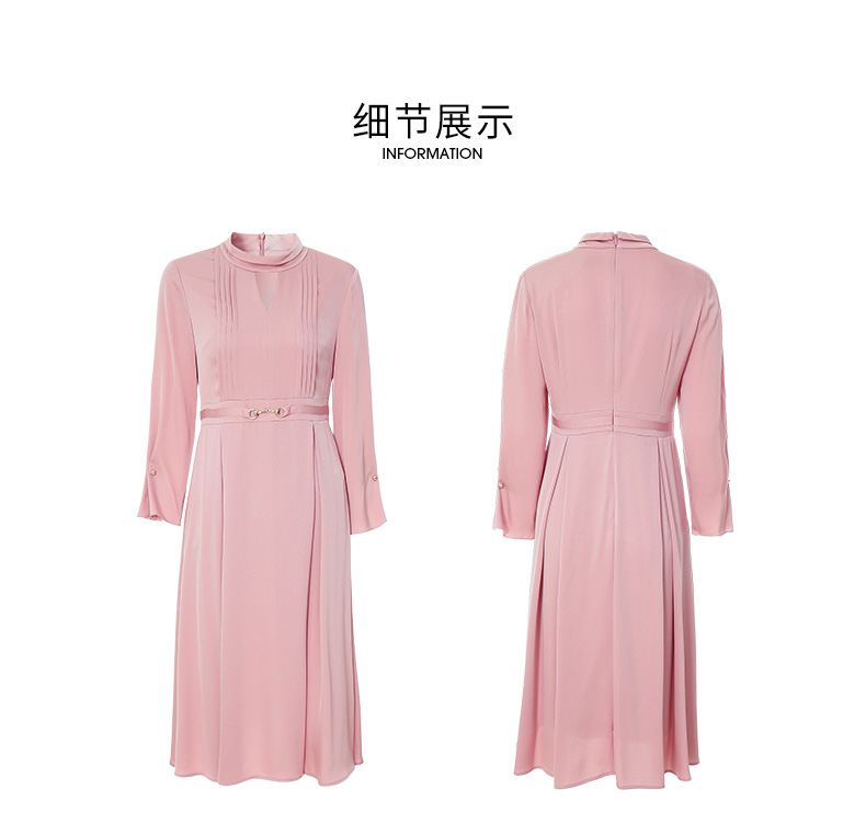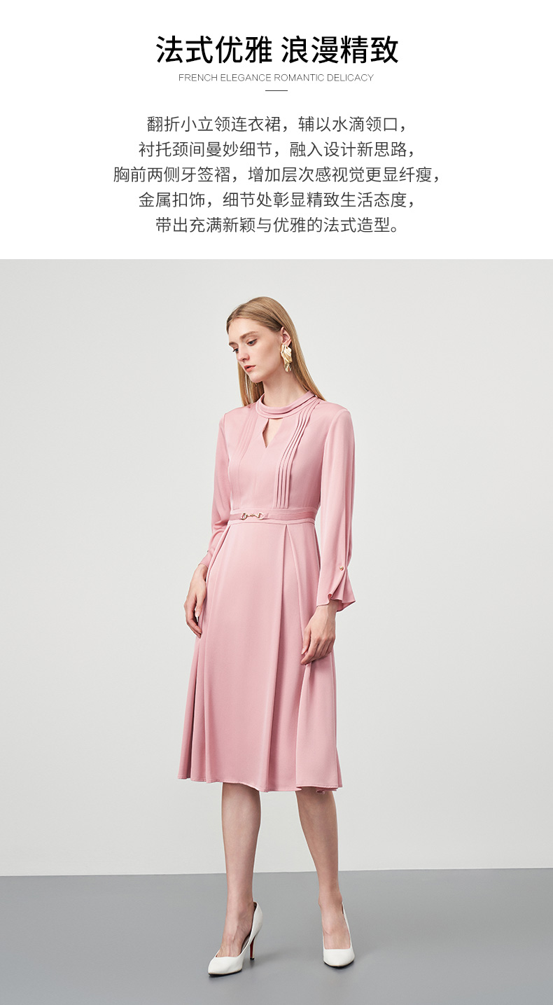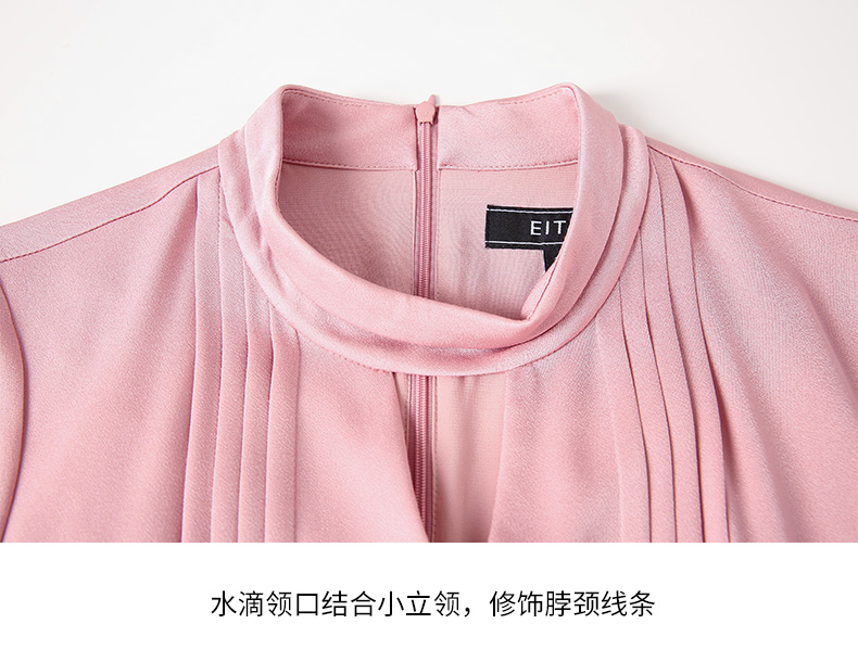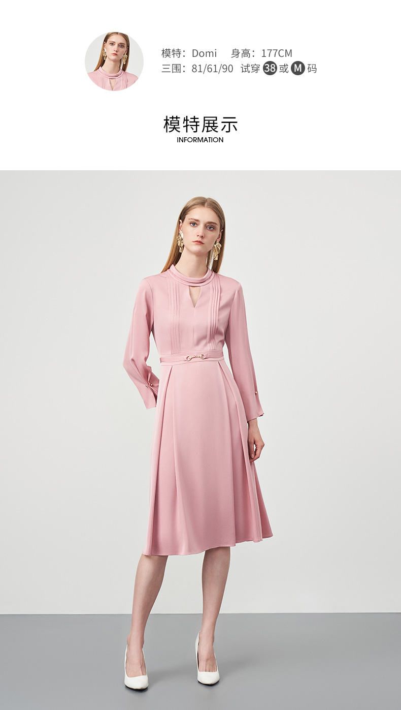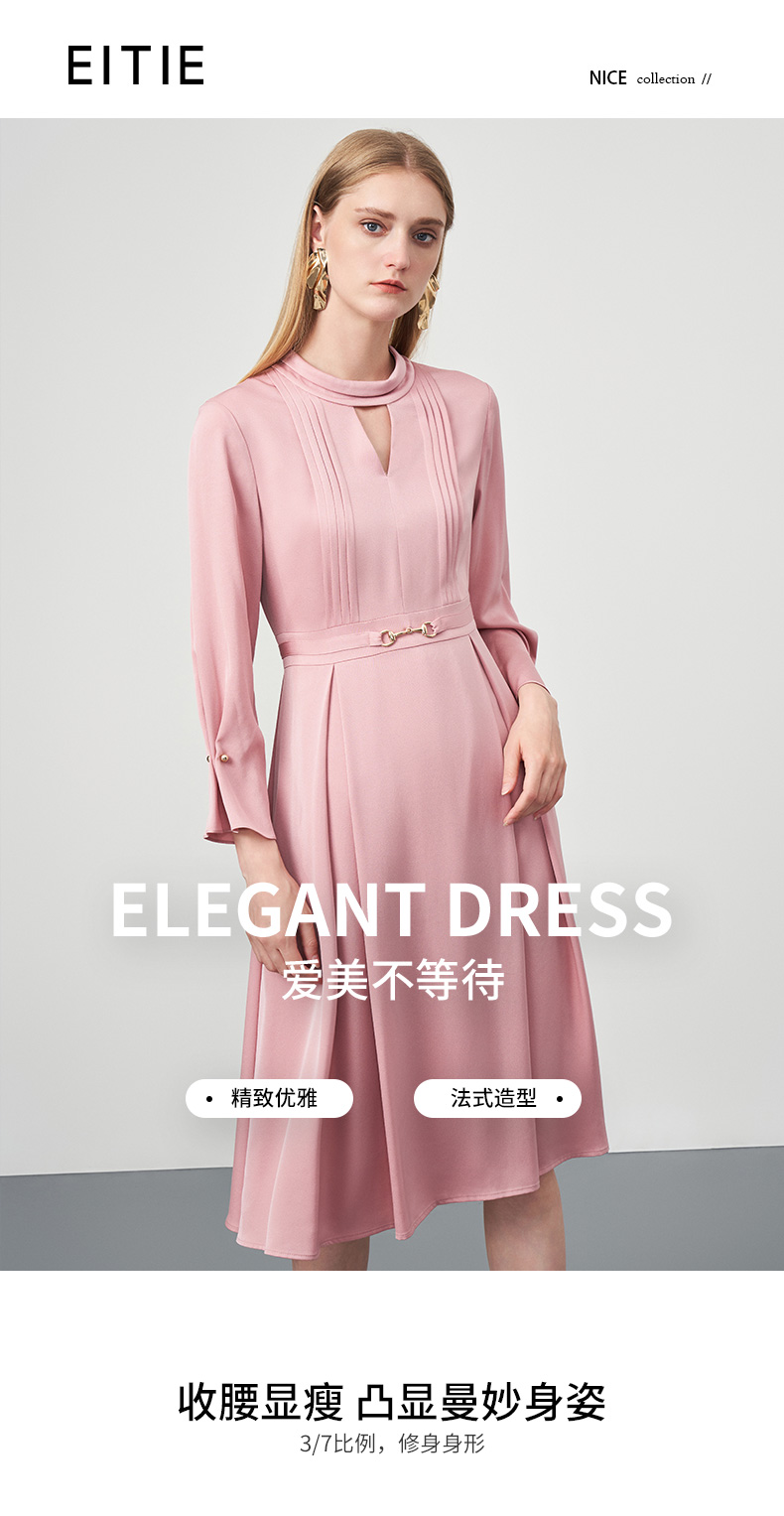 EITIE爱特爱秋季新款时尚修身百褶裙摆连衣裙立领A字裙连衣裙6707418