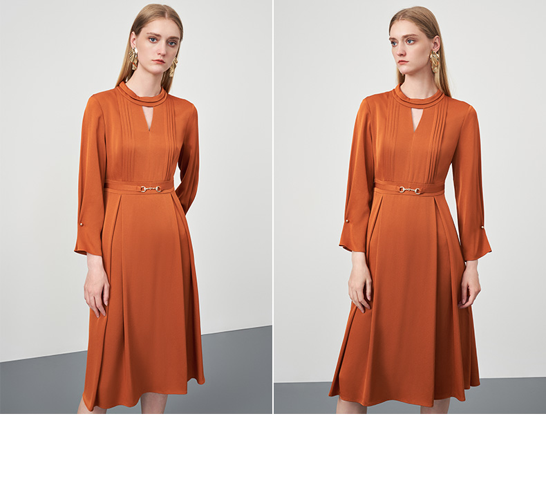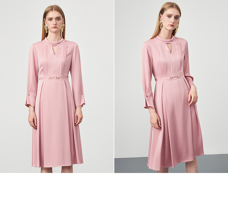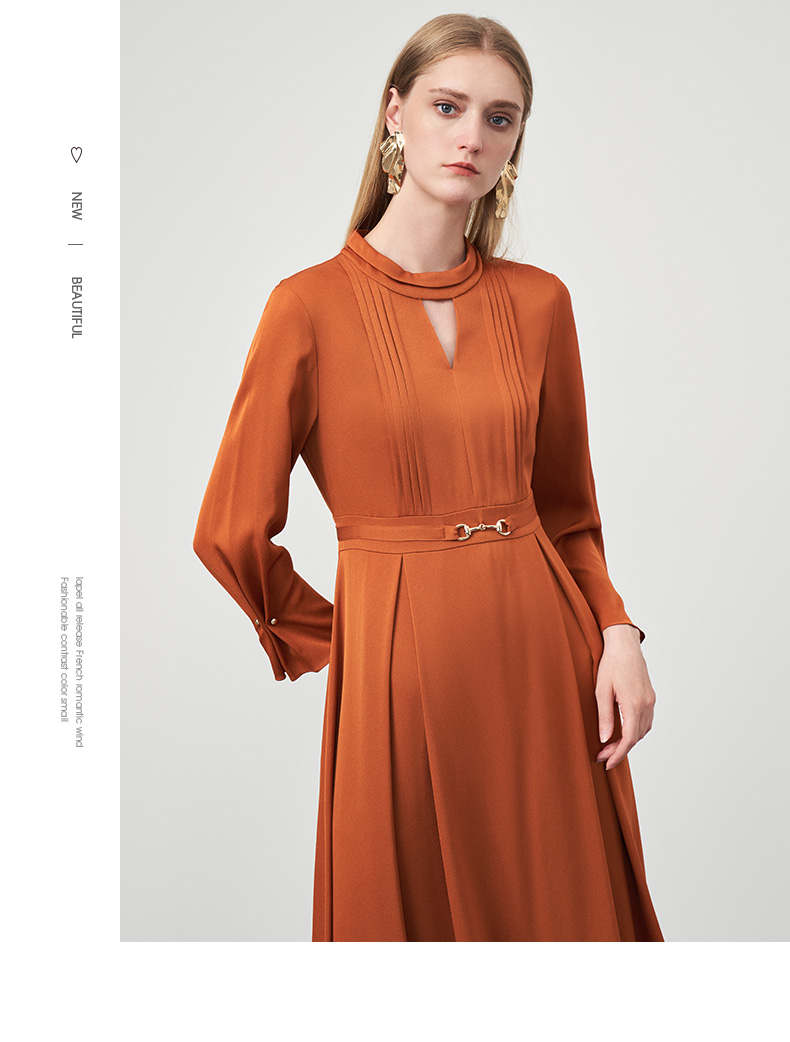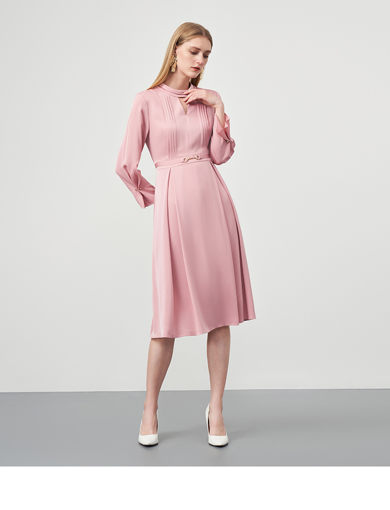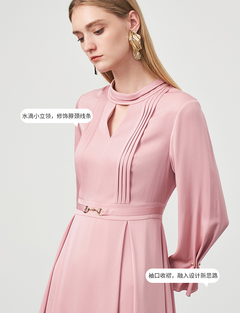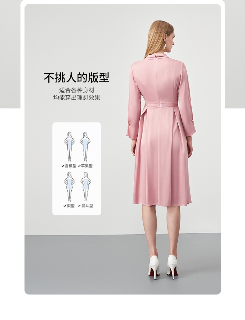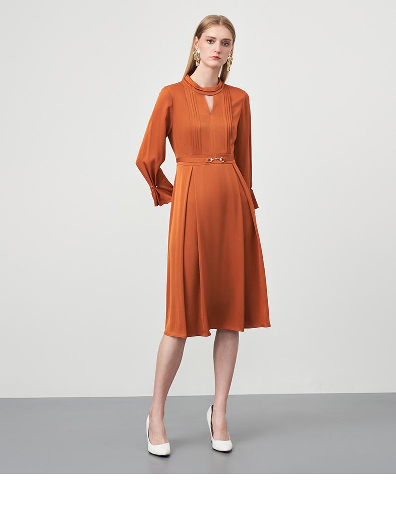 EITIE爱特爱秋季新款时尚修身百褶裙摆连衣裙立领A字裙连衣裙6707418