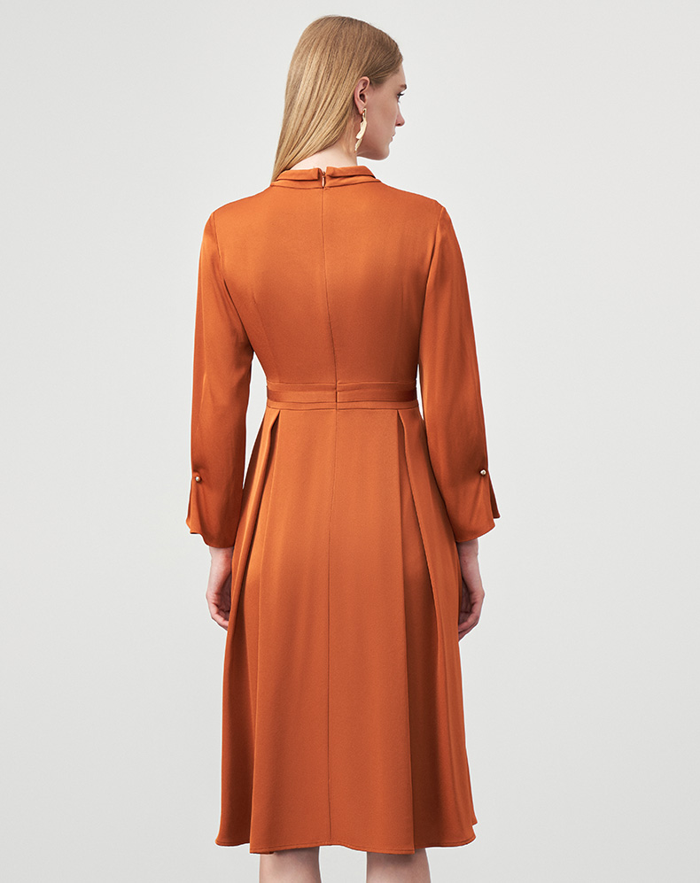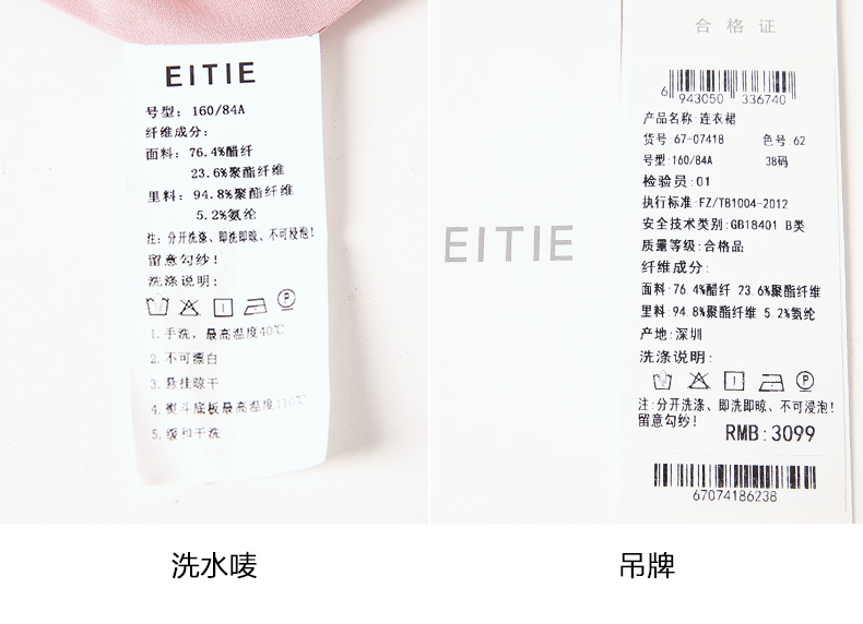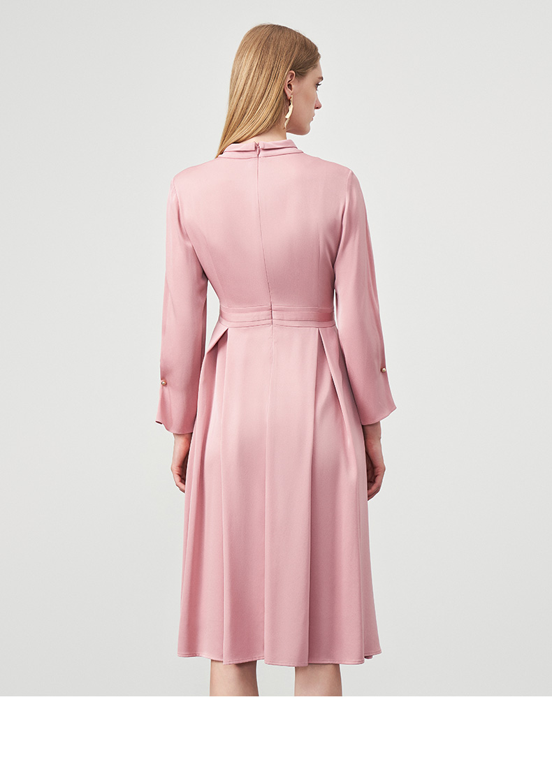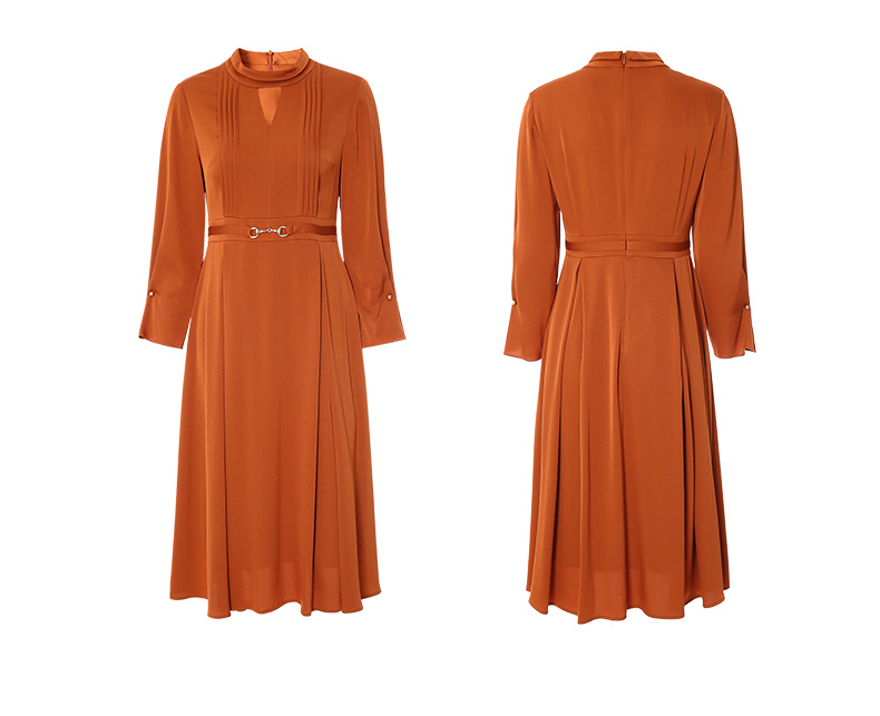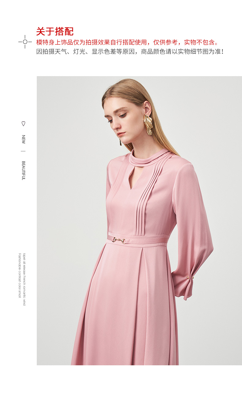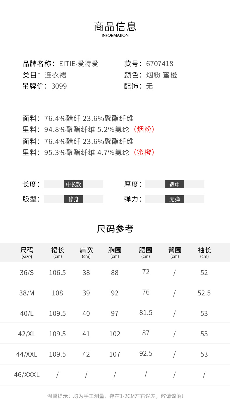 EITIE爱特爱秋季新款时尚修身百褶裙摆连衣裙立领A字裙连衣裙6707418