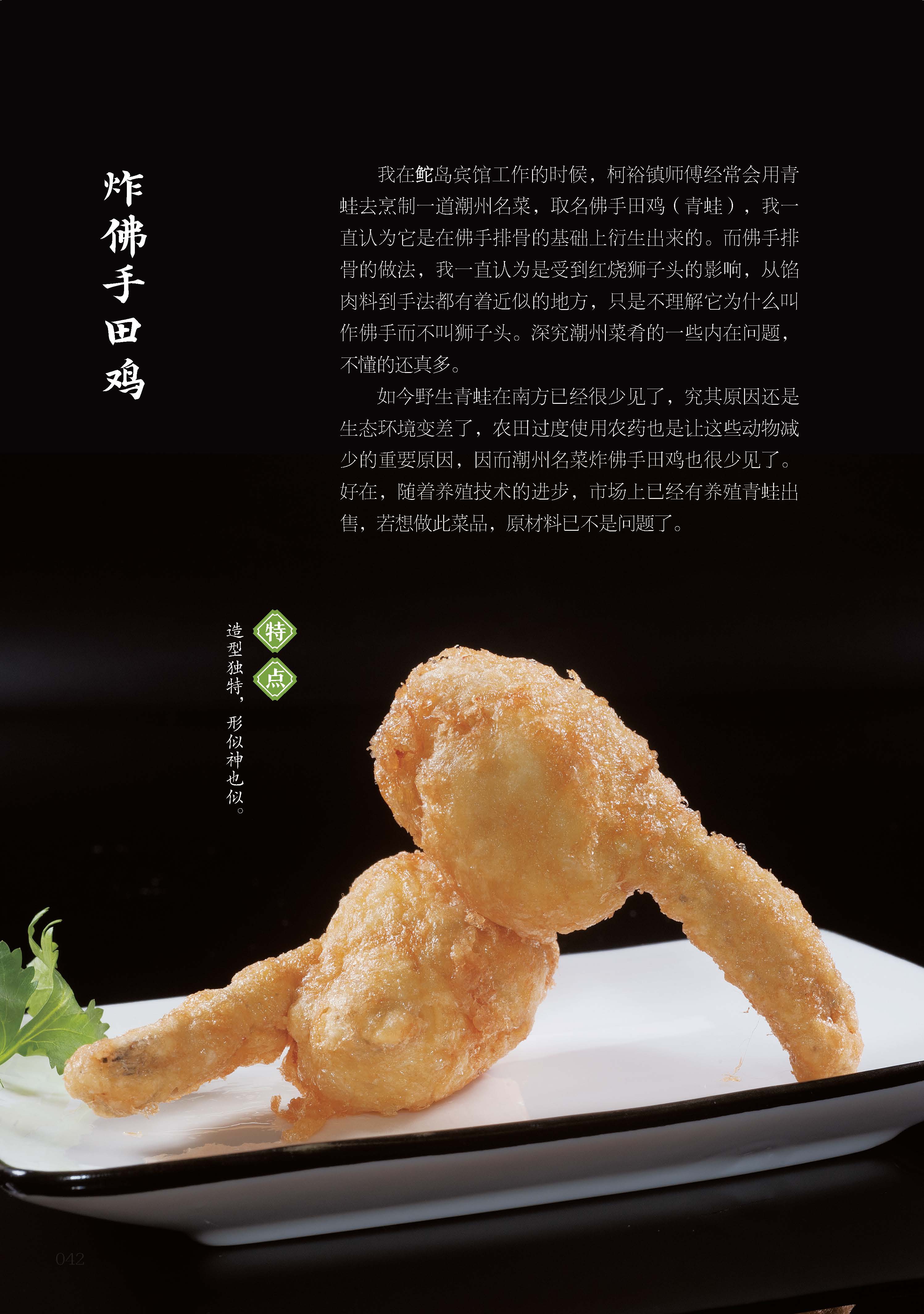 《钟成泉经典潮菜技法》是“粤菜大师技法丛书”的第5本,分为上、下两篇。其中,上篇——功夫理解,介绍了烹饪过程、菜肴挂浆、勾芡、干货涨发、刀法、酱油卤水配方、上汤熬炖、蘸碟、笋花雕刻、主要烹调法等;下篇——烹调技法,介绍了烧、炸、炊(蒸)、焖、炖、煀、焗、炒、煎、煮、熬、酿、羹、扣、卤、醉、含、熘、冻、炣等20种潮菜烹调技法,并以此为线索,分门别类地介绍了88道经典潮菜——既有知名的传统菜肴,如油泡麦穗花鱿等,又有不为外人道的古早味,如炊草菇鸡球等;既有讲究的精致菜肴,如鸡蓉焖海参等,又有朴素的家庭菜肴,如家庭式煎菜脯蛋等,还有中西融合的炖牛奶鸡球等……在菜肴介绍方面,每道菜配以精美的图片,以作者钟成泉大师亲见亲闻及亲身实践的小故事开篇,而后依次详细介绍了菜肴的选材用料、制作方法,以及烹饪的关键技术。钟大师将五十多年从厨经验毫无保留地分享出来,无论是潮菜从业者,还是潮菜爱好者,总能找到一道适合自己的经典潮菜来实践,体验潮菜之美。本书既是潮菜爱好者、从业者学习、传承经典潮菜的宝贵资料,也是潮菜传承和潮汕文化研究的重要文献,具有传世价值。