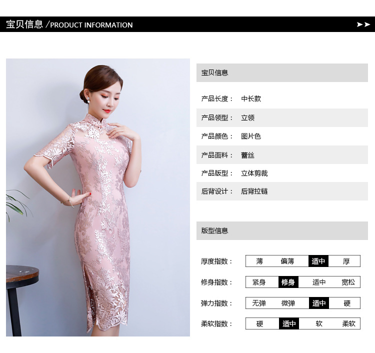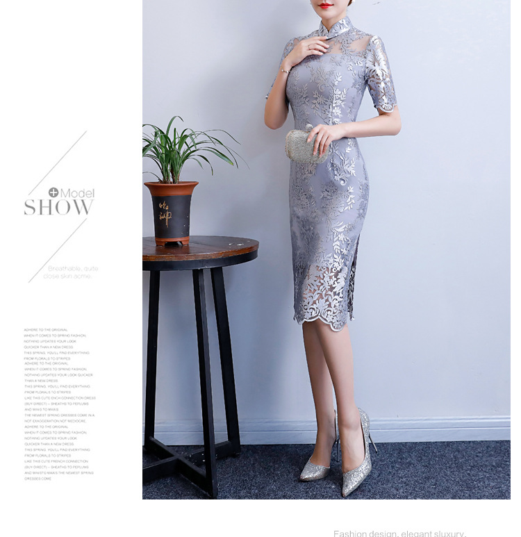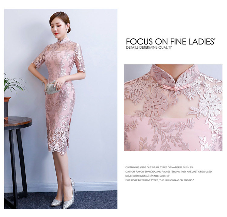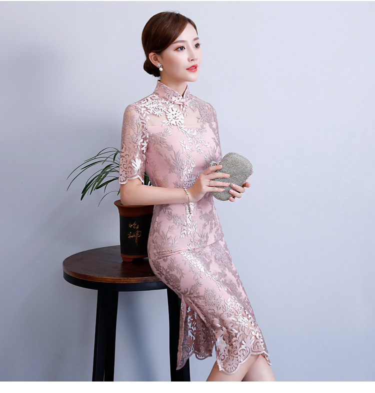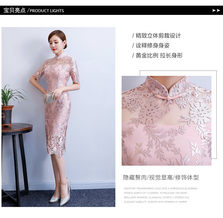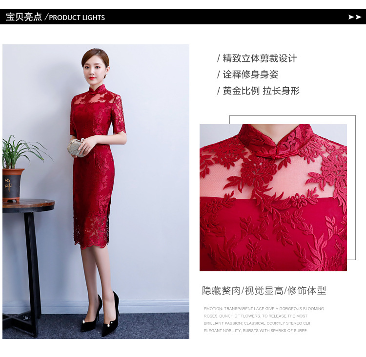 改良气质名媛风蕾丝中长款旗袍连衣裙CX-18108