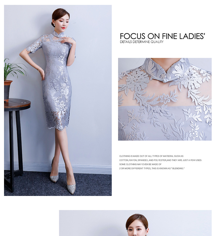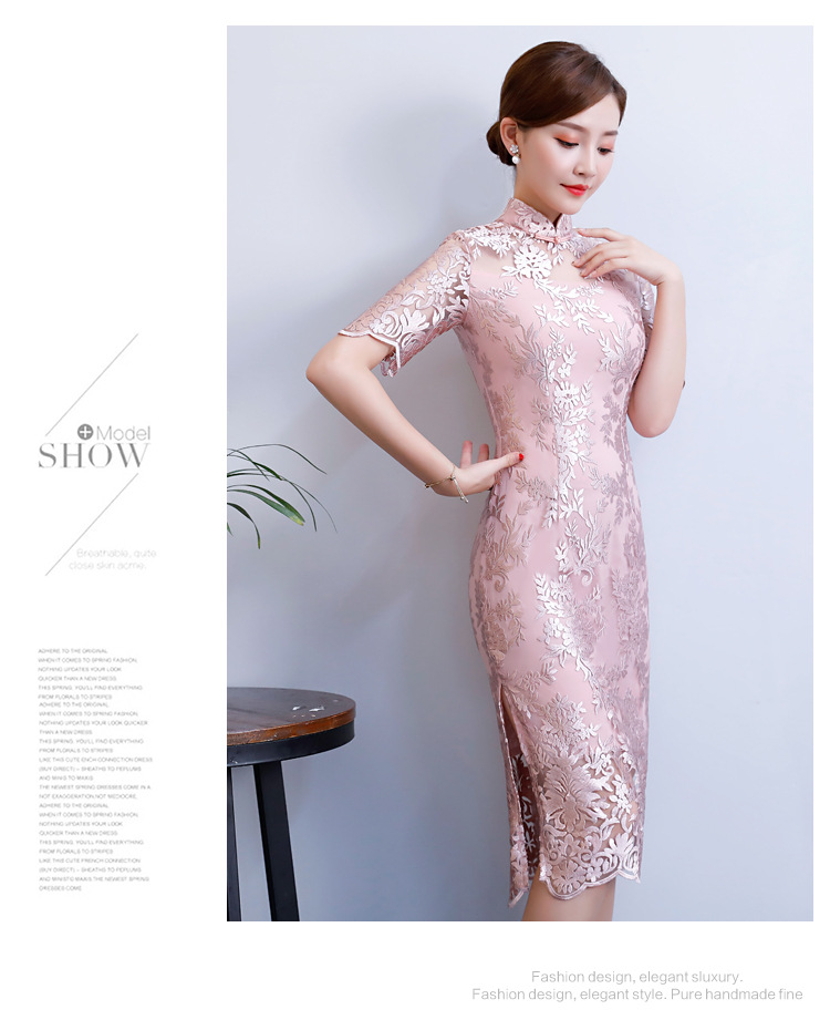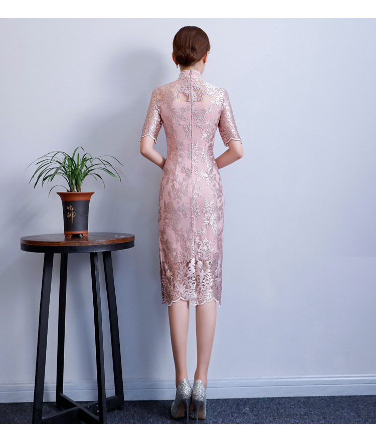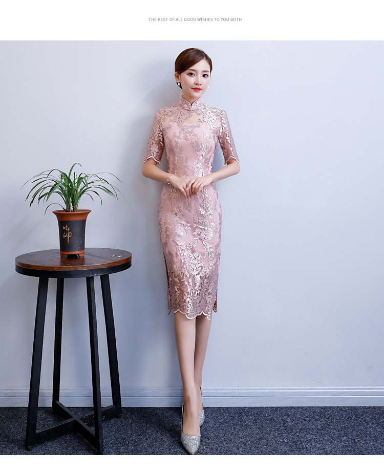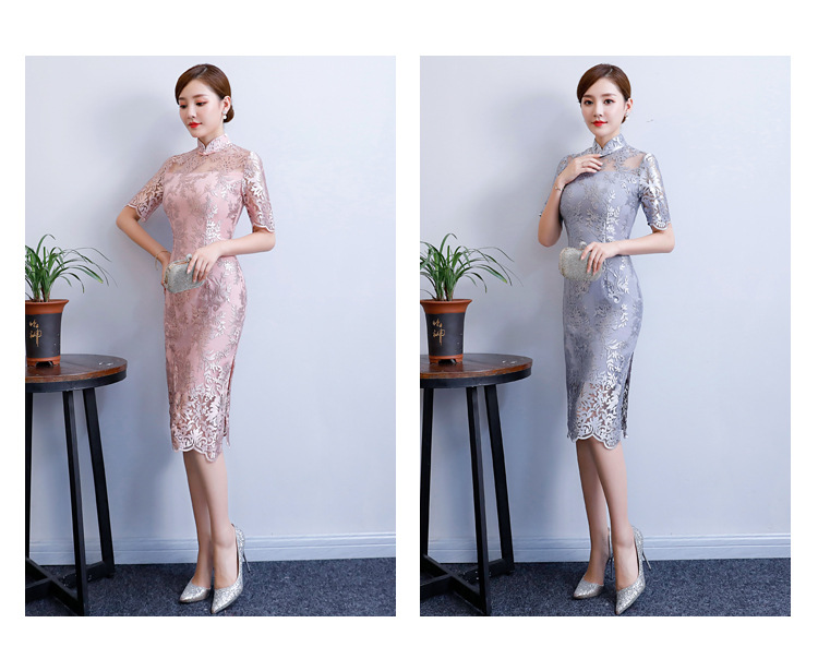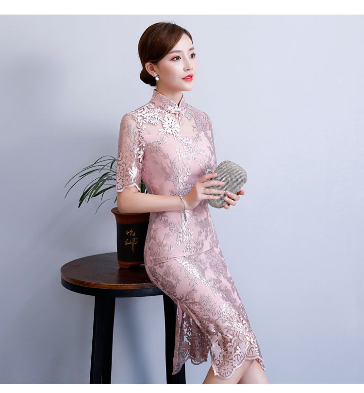 改良气质名媛风蕾丝中长款旗袍连衣裙CX-18108