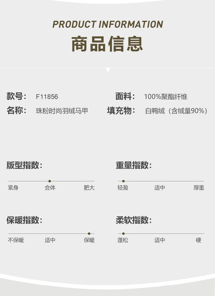凡圣瑜伽珠粉时尚羽绒马甲F11856(无胸垫)