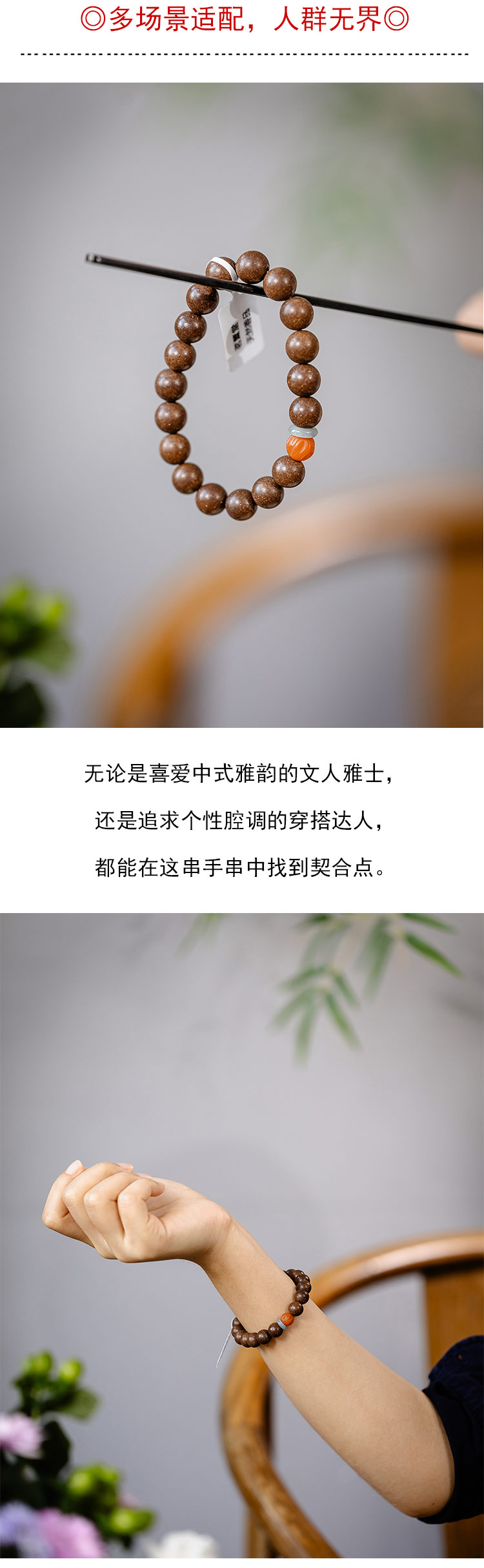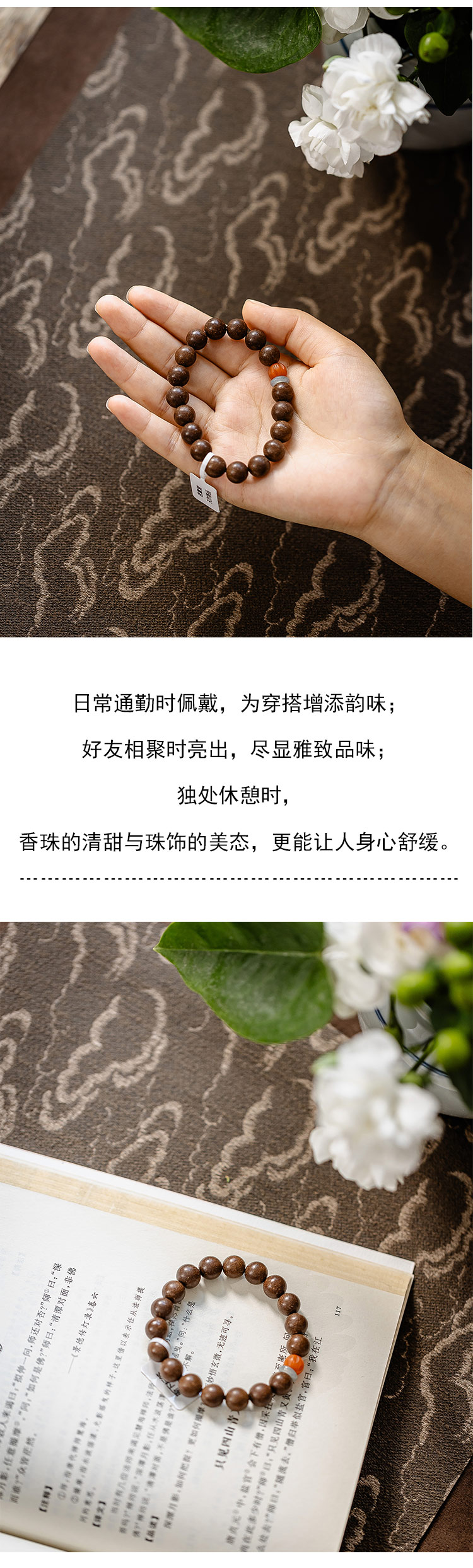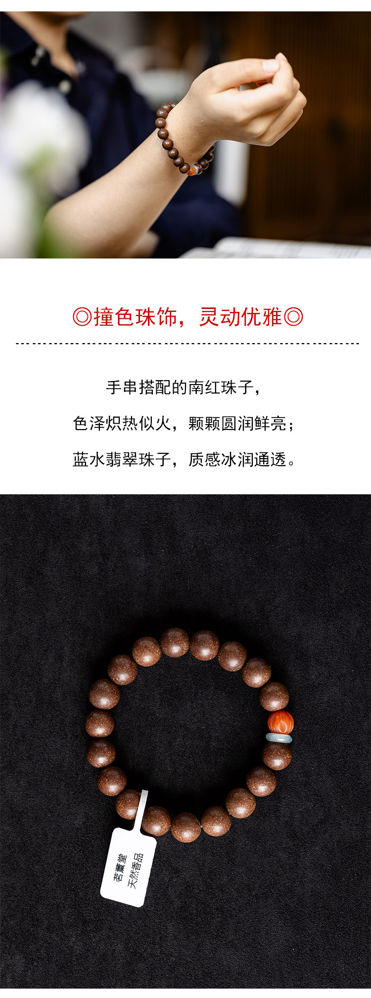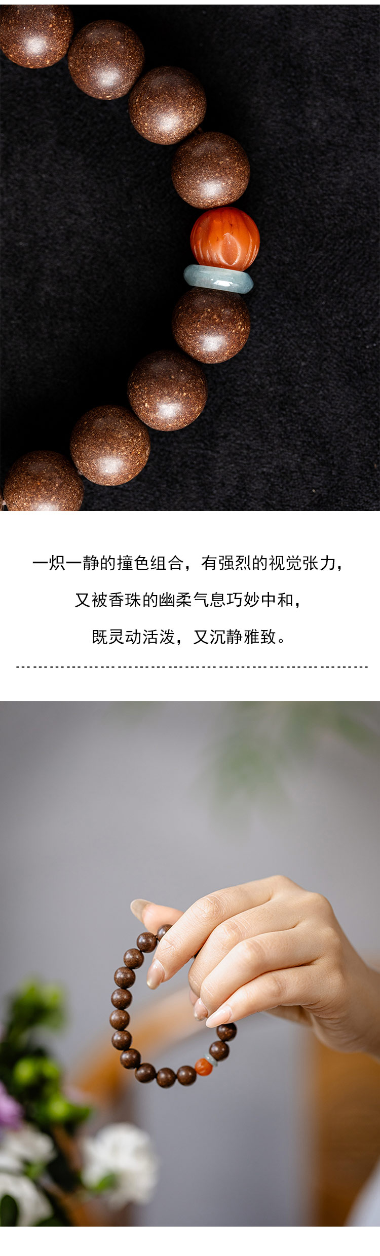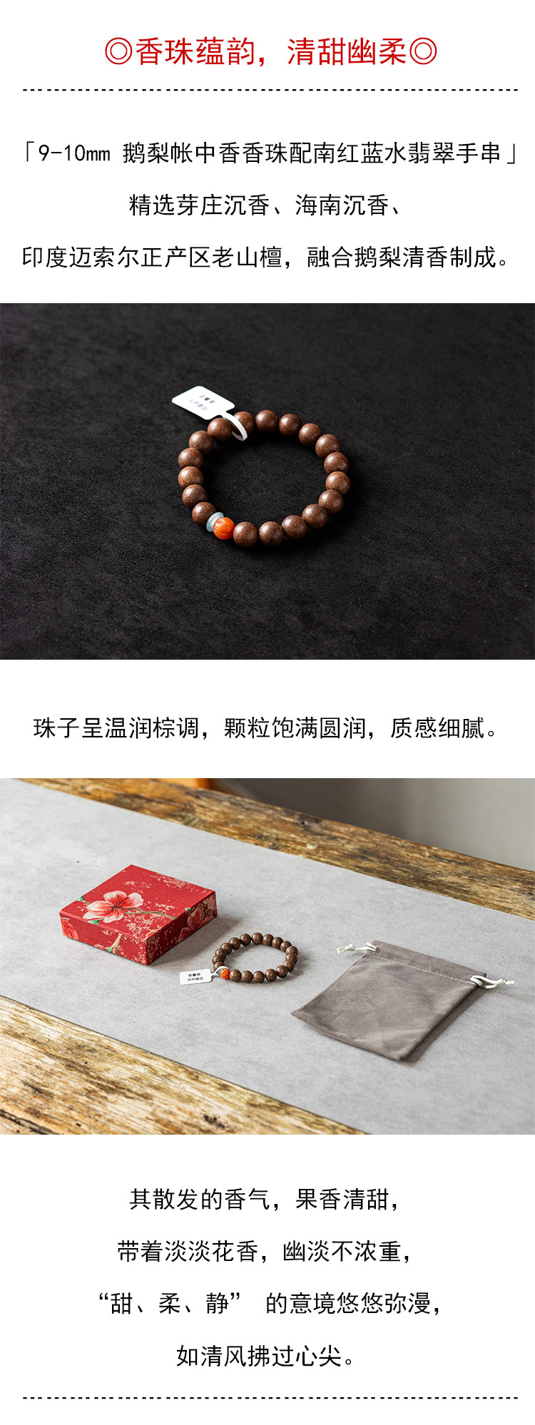 茶香记9-10mm鹅梨帐中香香珠配南红蓝水翡翠手串饰品木质女士手链