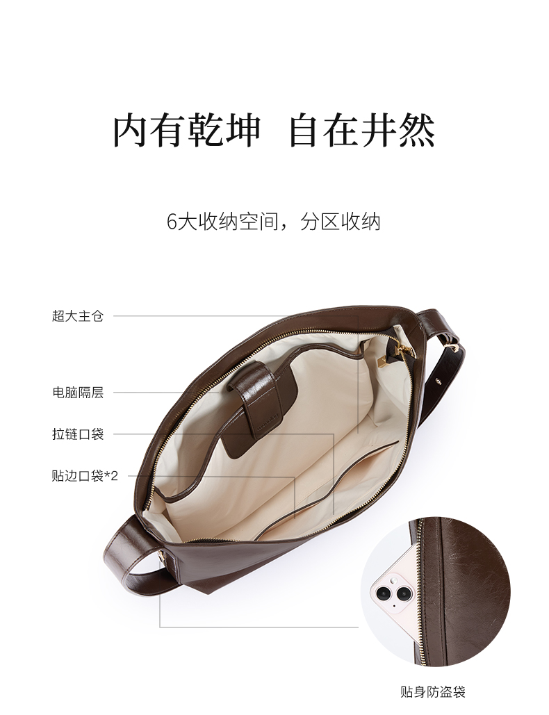 【秋冬新品】独白X卡拉羊云游系列托特包油蜡皮单肩通勤女包D4515