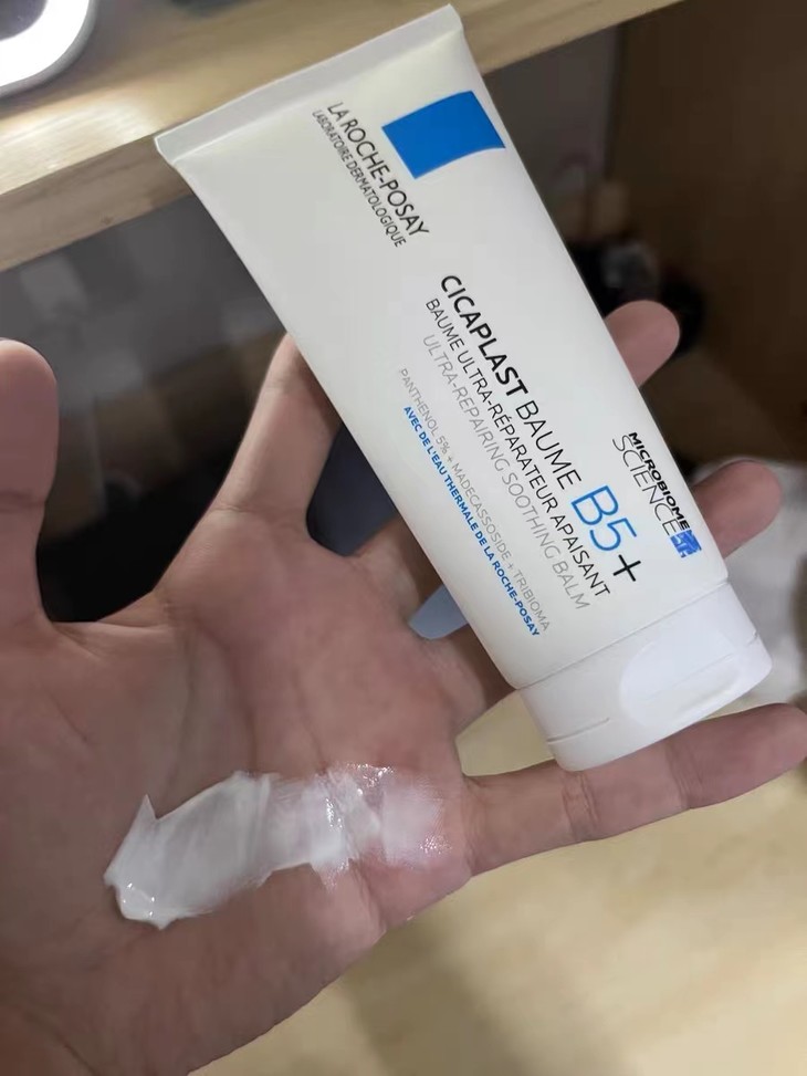 理肤泉B5+舒缓修复霜 👍主打:滋润保湿、舒缓肌肤、改善干燥 💢成分依旧稳扎稳打,无任何添加、无任何味道 ✅新版B5+是免洗配方,涂了不用洗,但是上脸比较油腻腻 ✅适合:肌肤轻微损伤情况、舒缓干痒、干敏、脱皮、爆皮干燥 📣注意:不适合每天当面霜涂抹!不要厚敷 📣因为不添加防腐剂,会“质地不稳定”,以及因为温度差异,也容易导致“喷水”