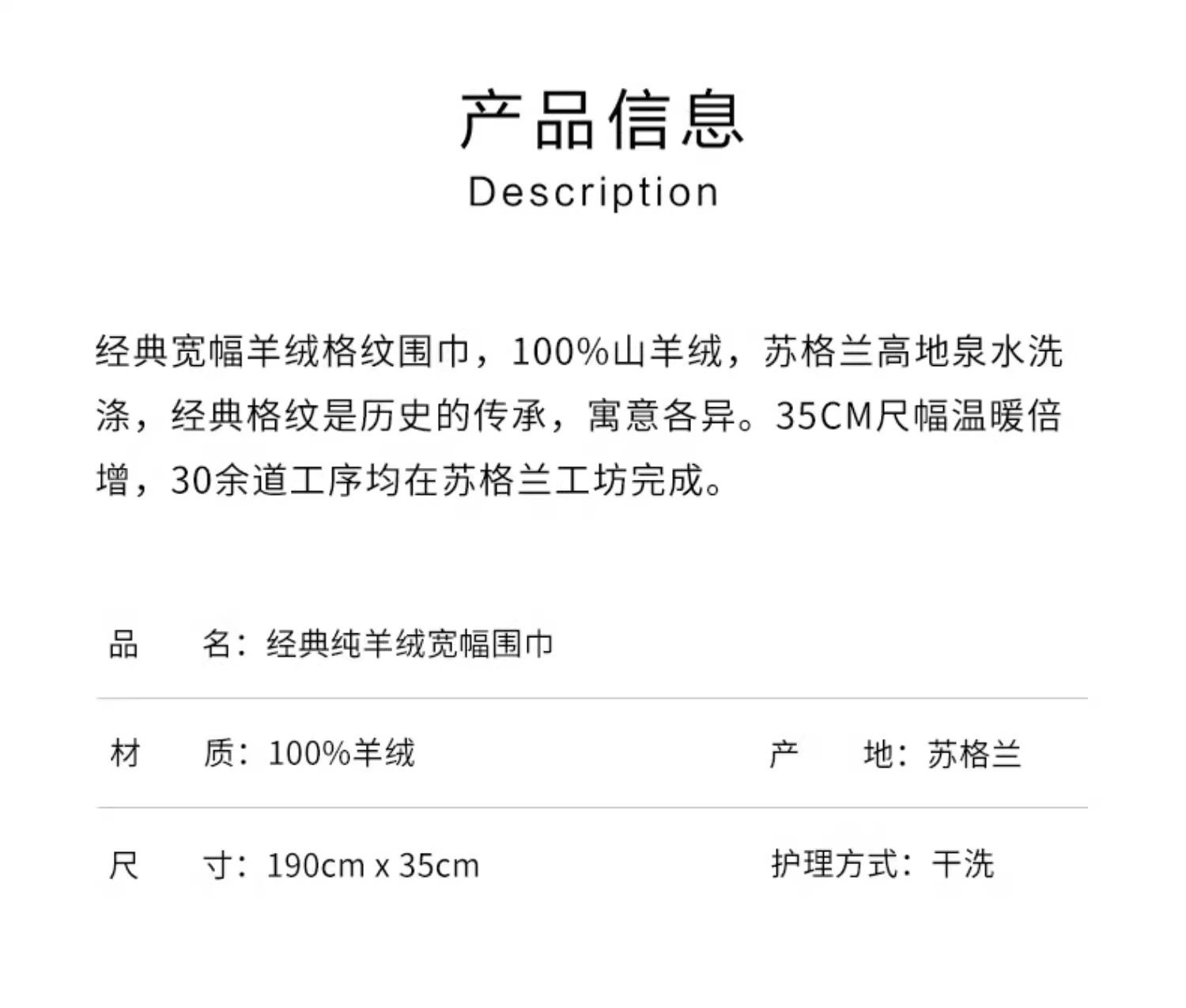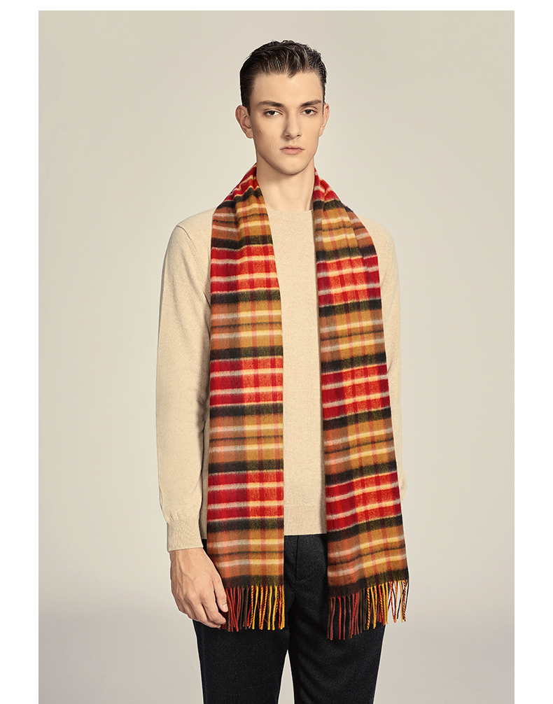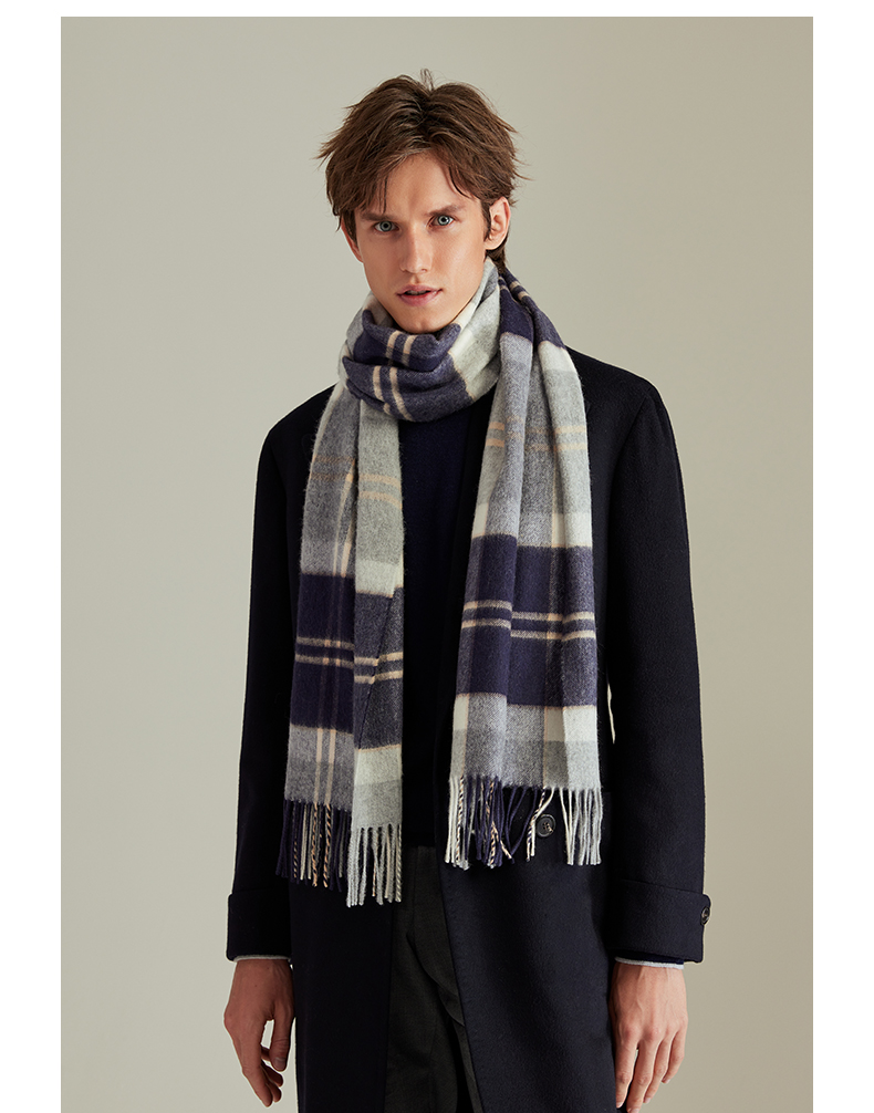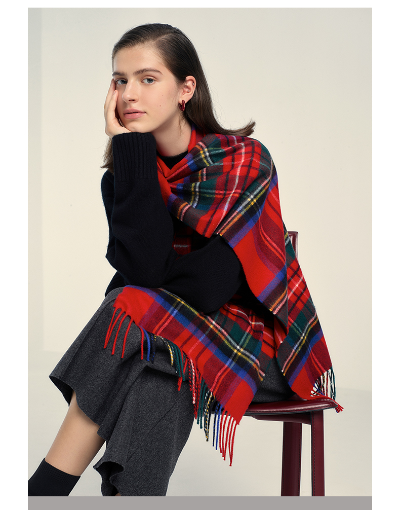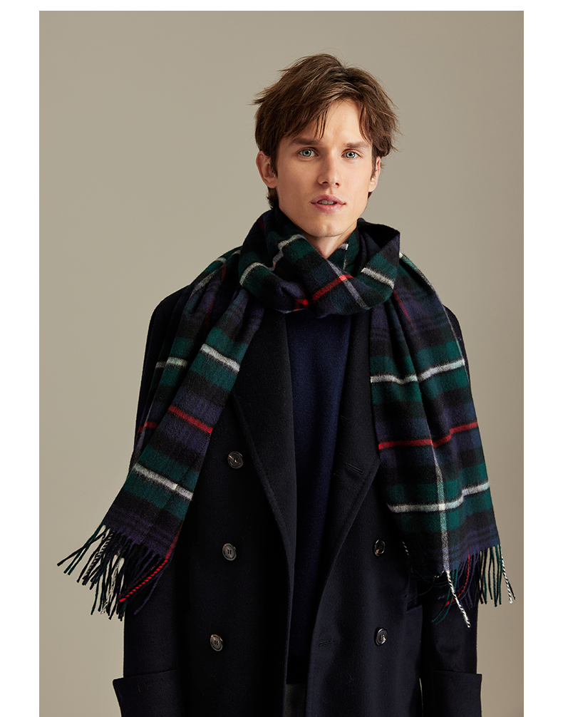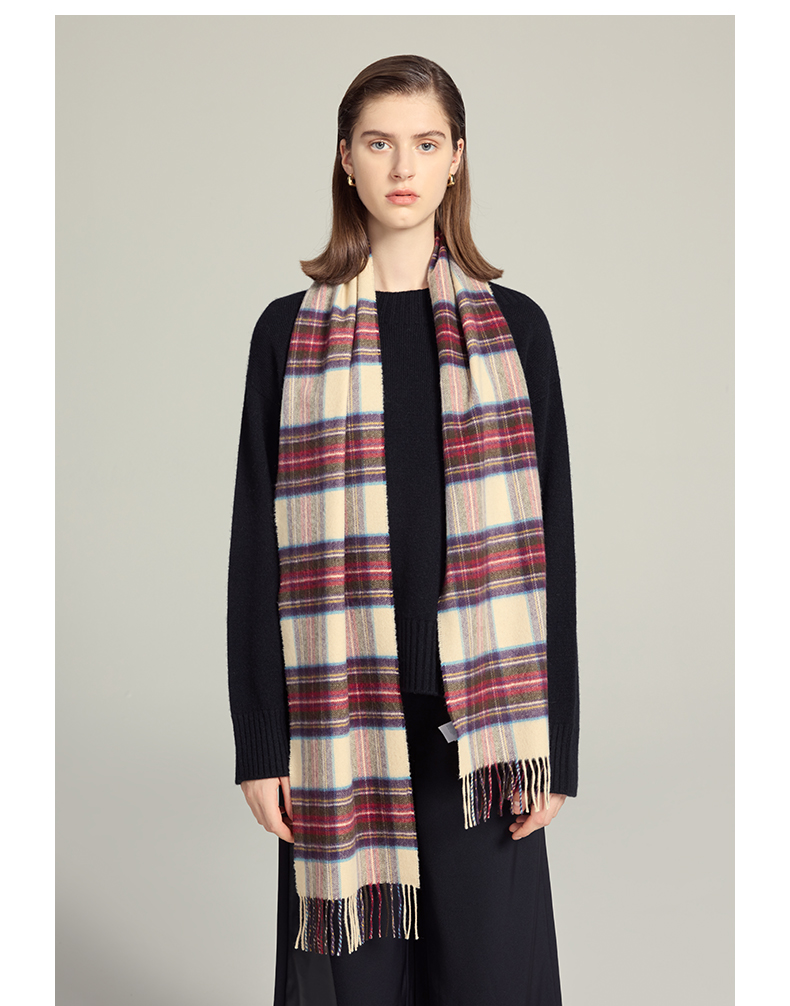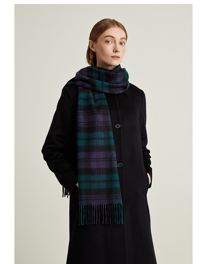 Johnstons of Elgin经典纯羊绒宽幅围巾 格纹