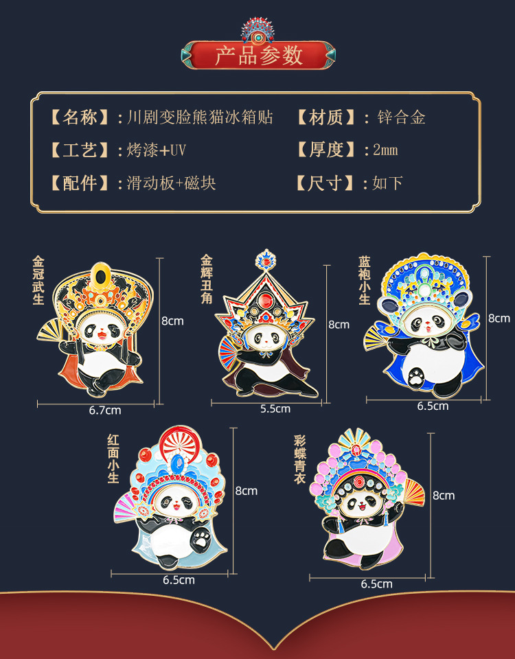 【熊猫变脸可动金属冰箱贴】川渝川剧可滑动变脸四川成都特色重庆纪念品伴手礼物国潮