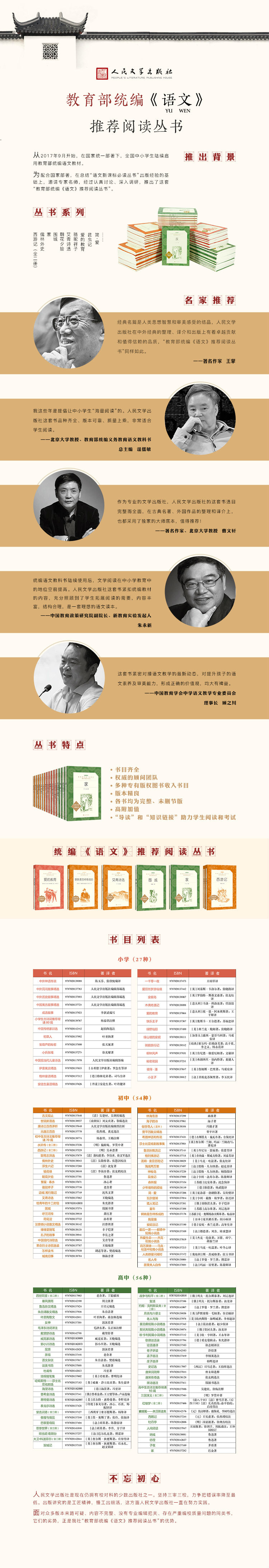 经典名篇是人类思想智慧和审美感受的结晶,人民文学出版社在中外经典的整理、译介和出版上有着卓越贡献和值得信赖的品质,“教育部统编《语文》推荐阅读丛书”同样如此。