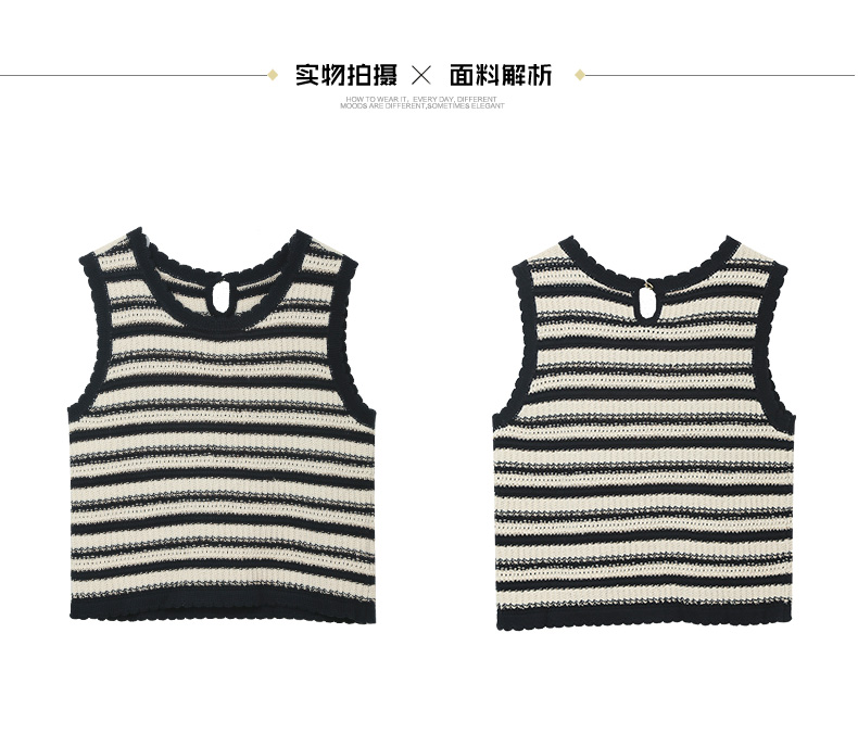 透气肌理感针织背心 春季藏青白条纹百搭外穿内搭无袖上衣