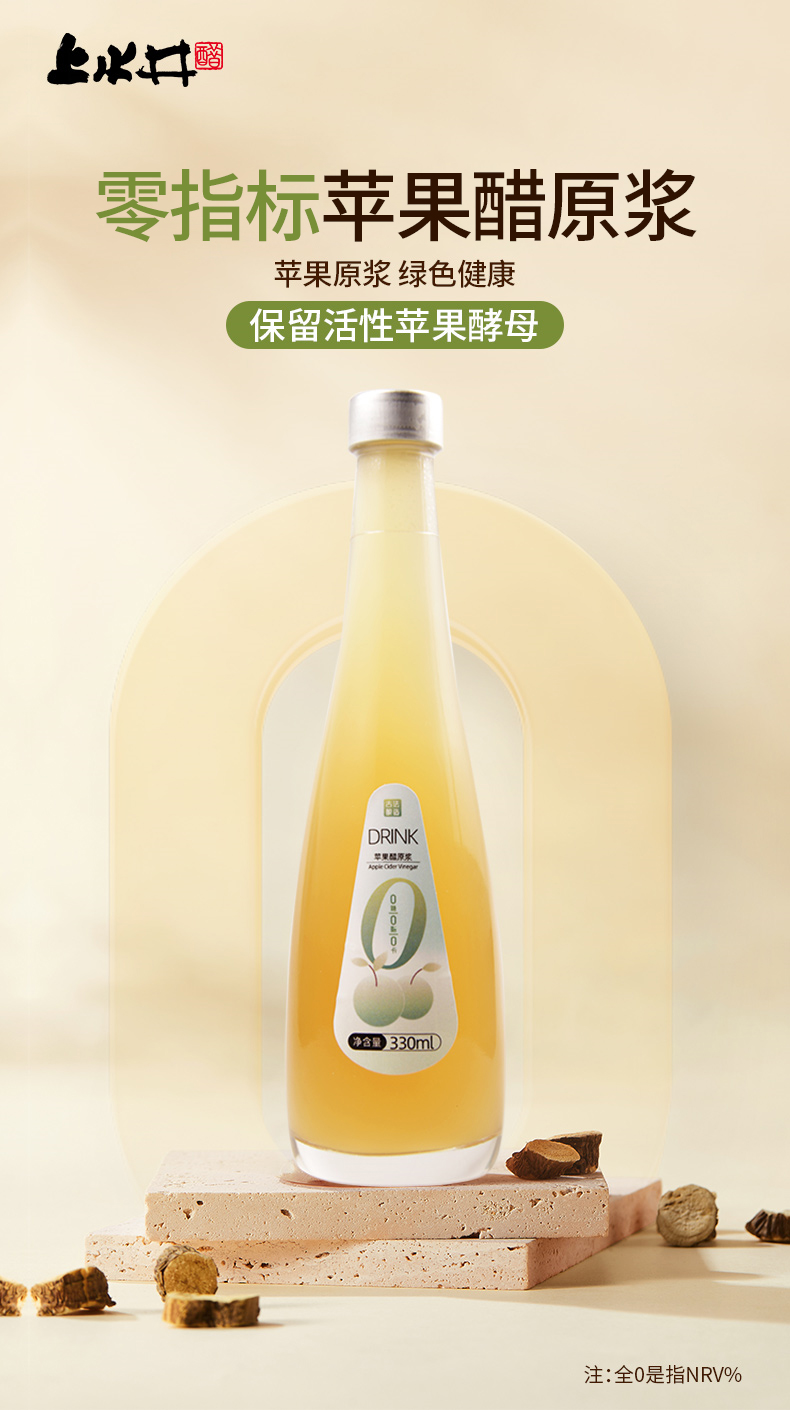 【全0原浆苹果醋】上水井原浆苹果醋330ml起配料干净多规格