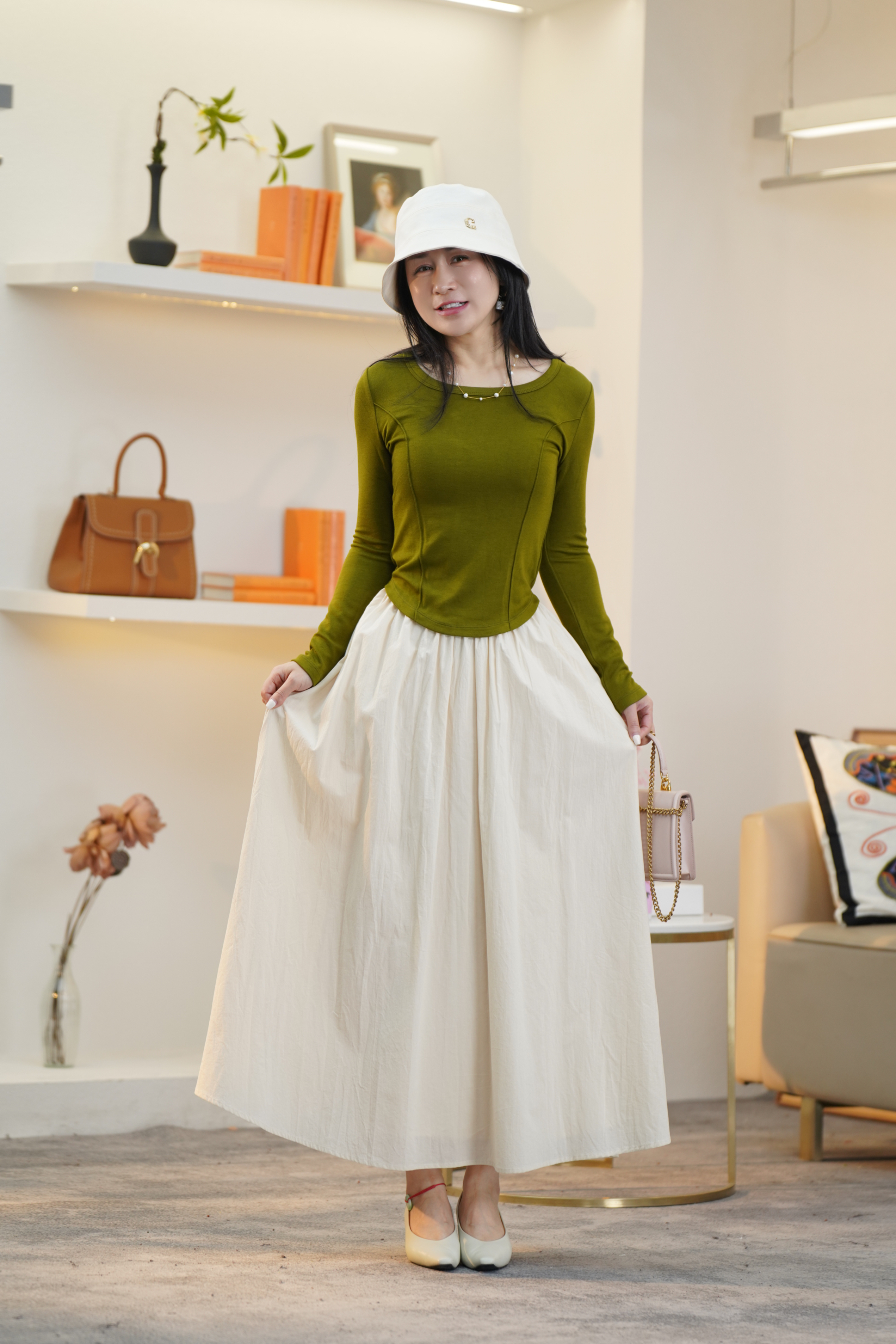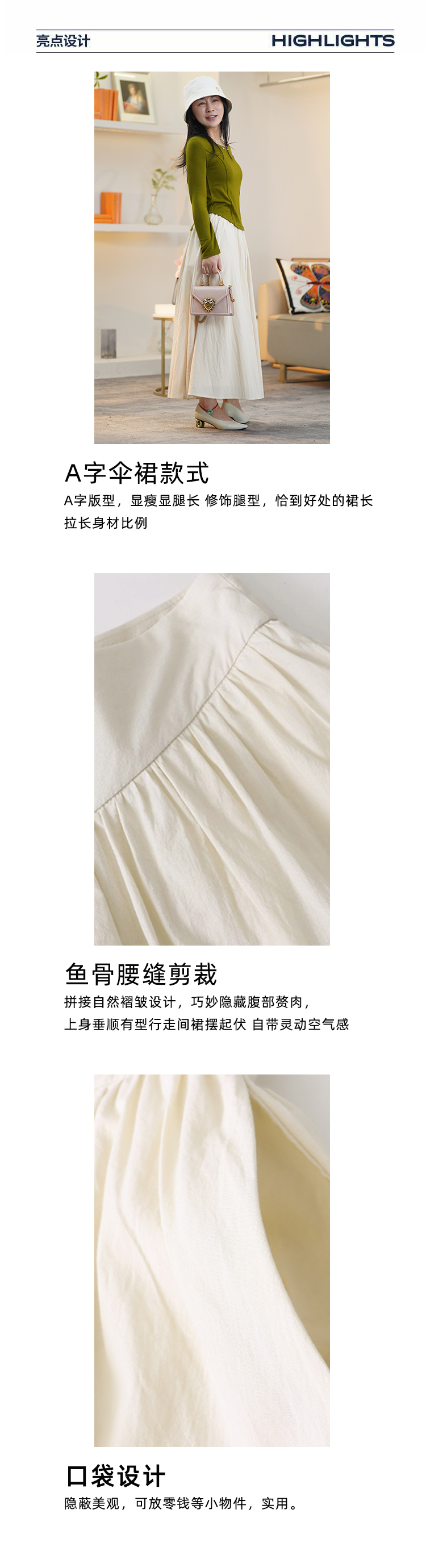 【赫本伞裙】臣禾 鱼骨腰缝剪裁半身裙9241030101【金猪甄选】