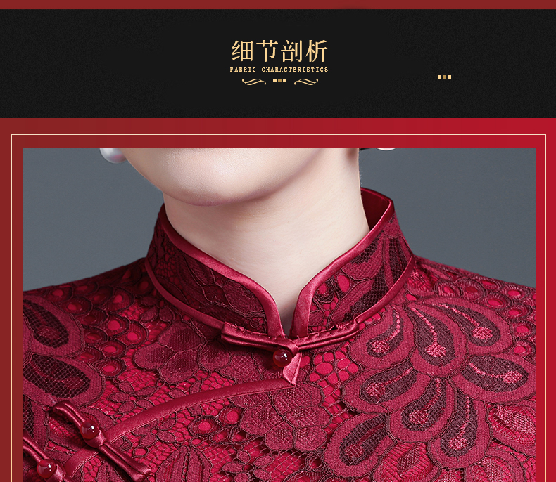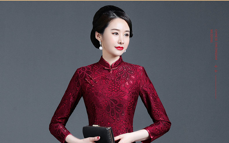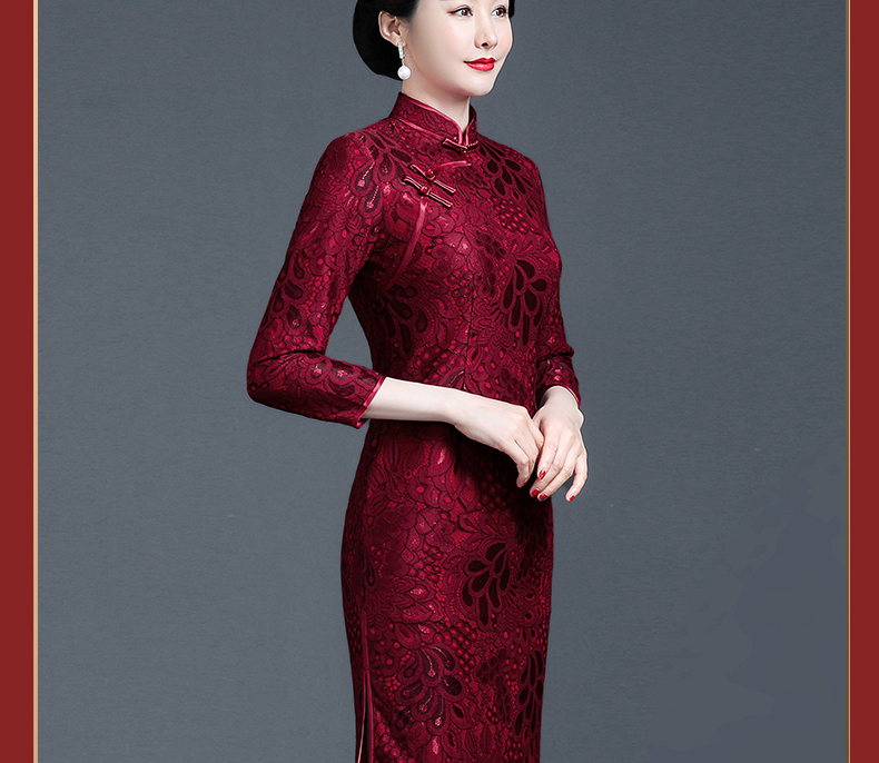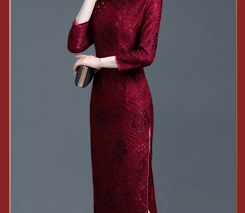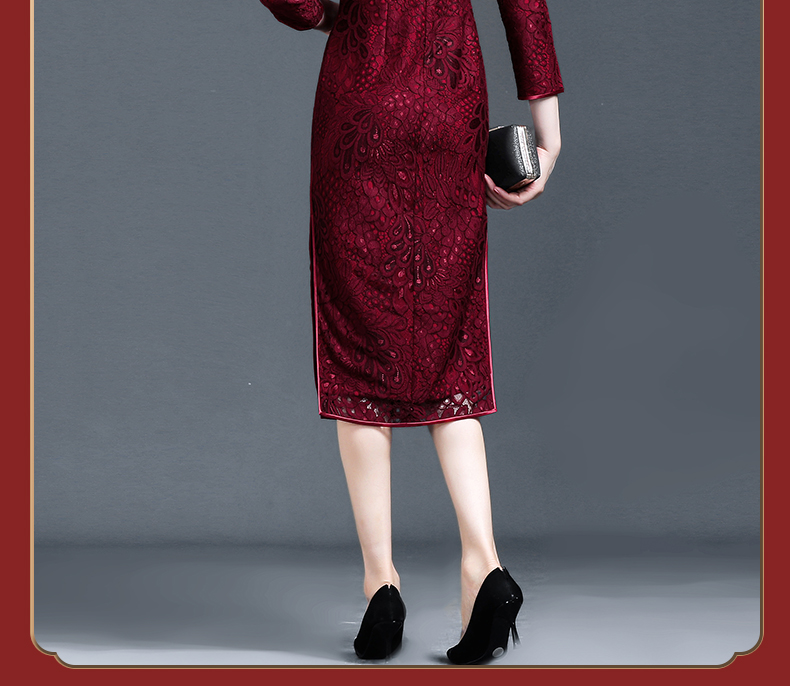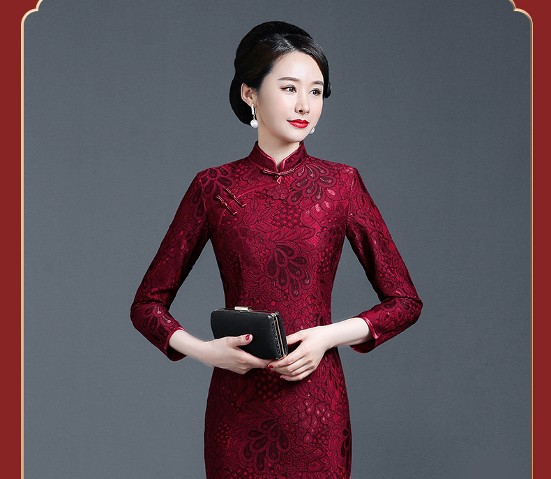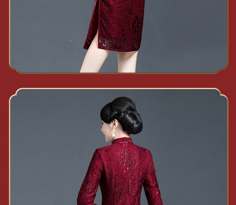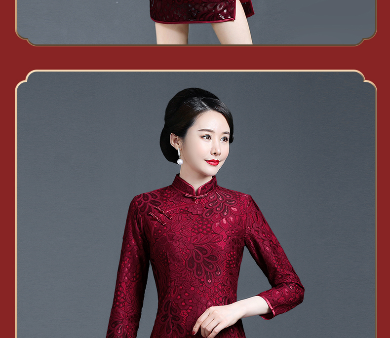 上海旗袍厂NBL-NZ242 枣红 秋冬季喜婆婆婚宴装蕾丝秋装加厚旗袍年轻款气质婚礼服
